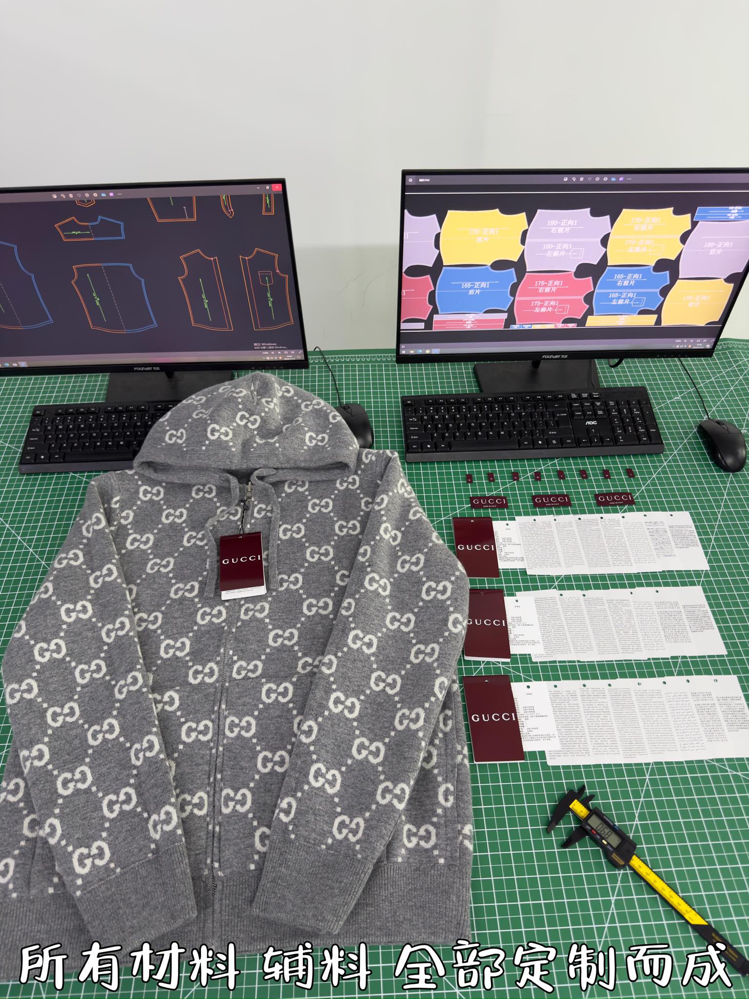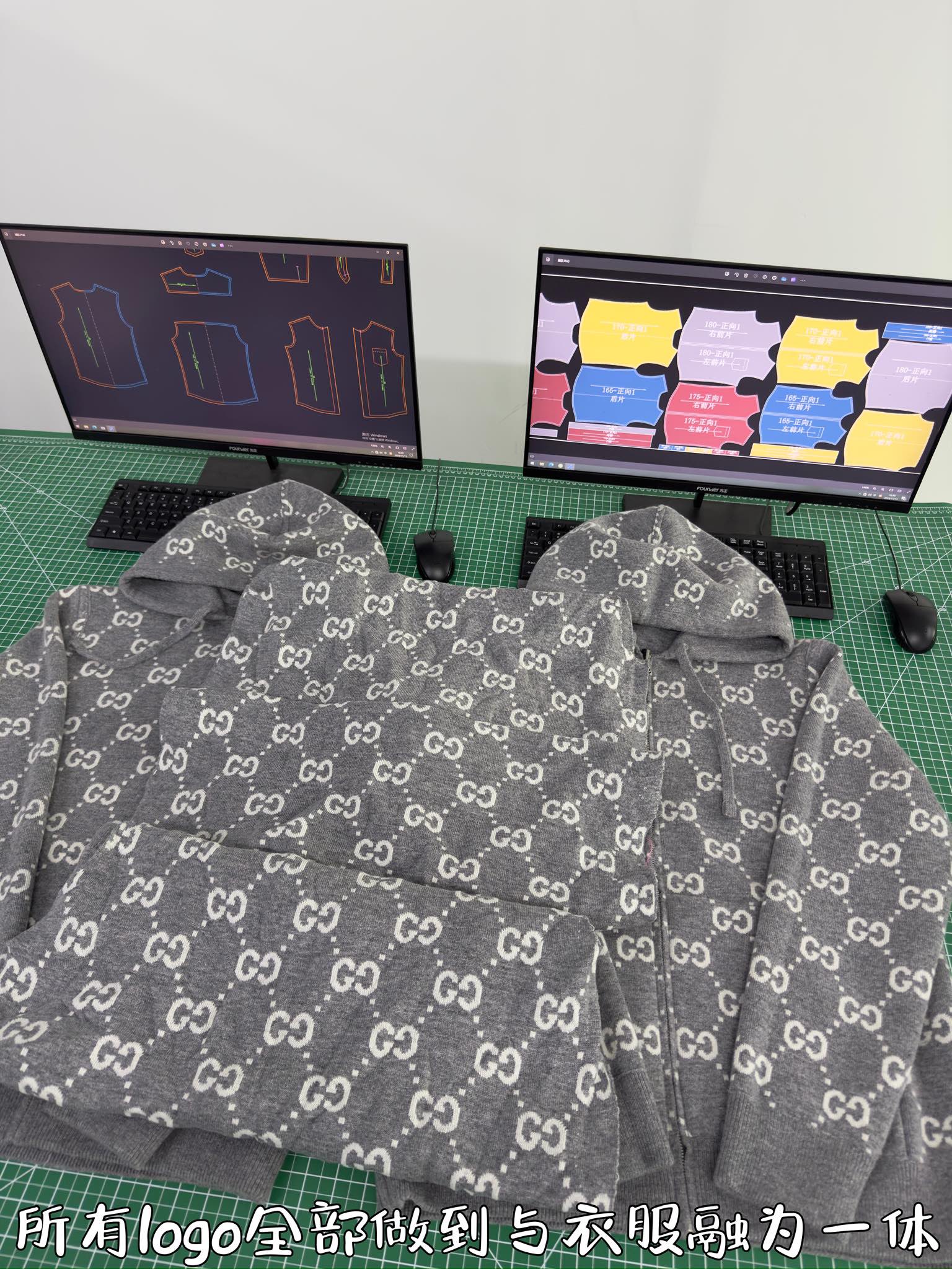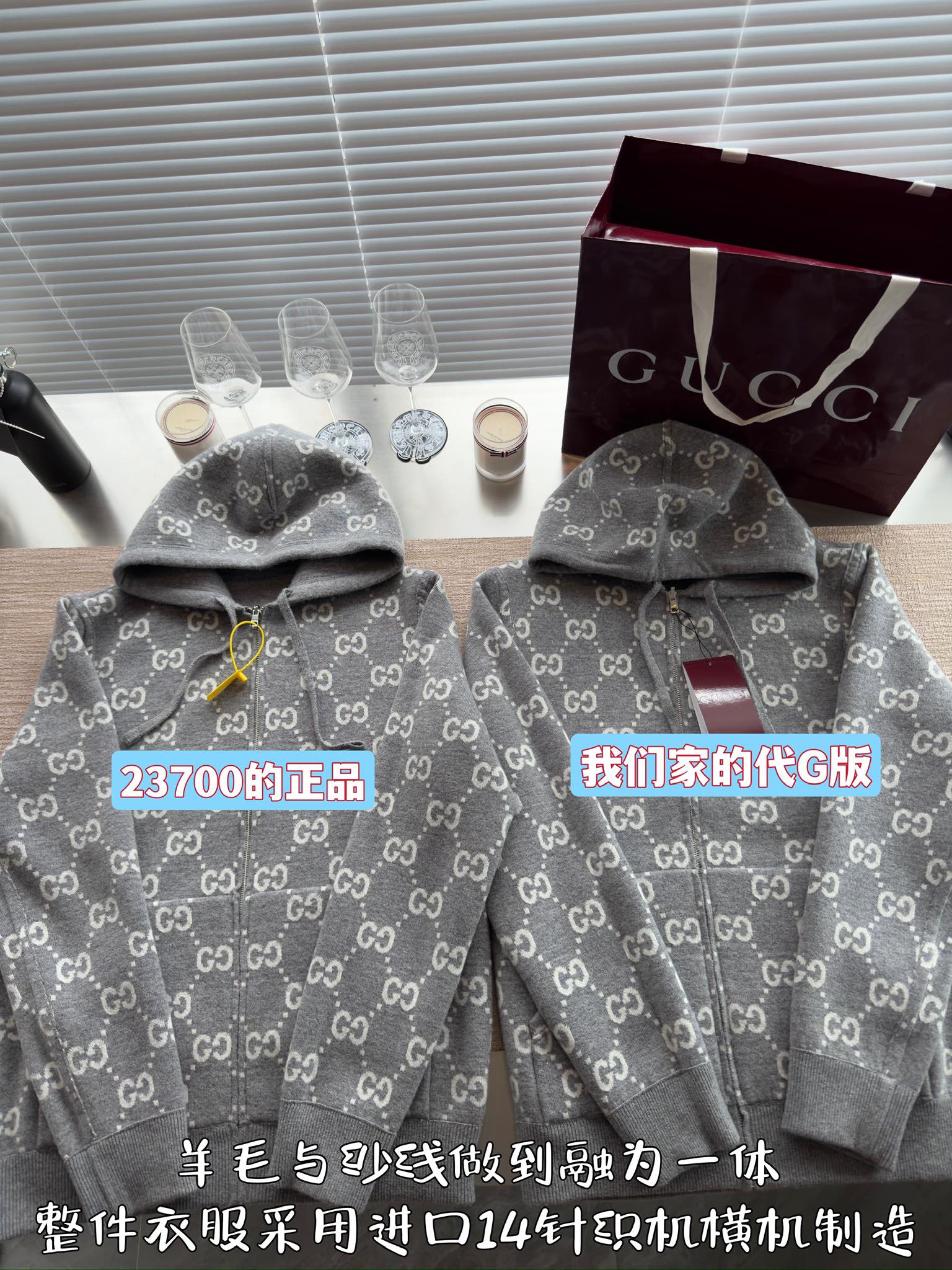 整件衣服23700购买Zp拆解打造,定织美利奴羊毛纱线100%含毛量,全幅GG满绣花LOGO挂毛工艺跟灰色纱线融合在一起 不存在起纱凹凸不平,定制奶奶灰纱线
