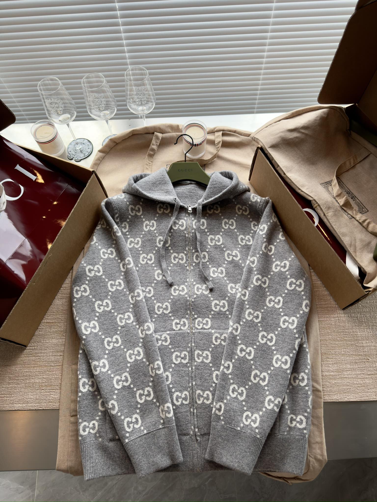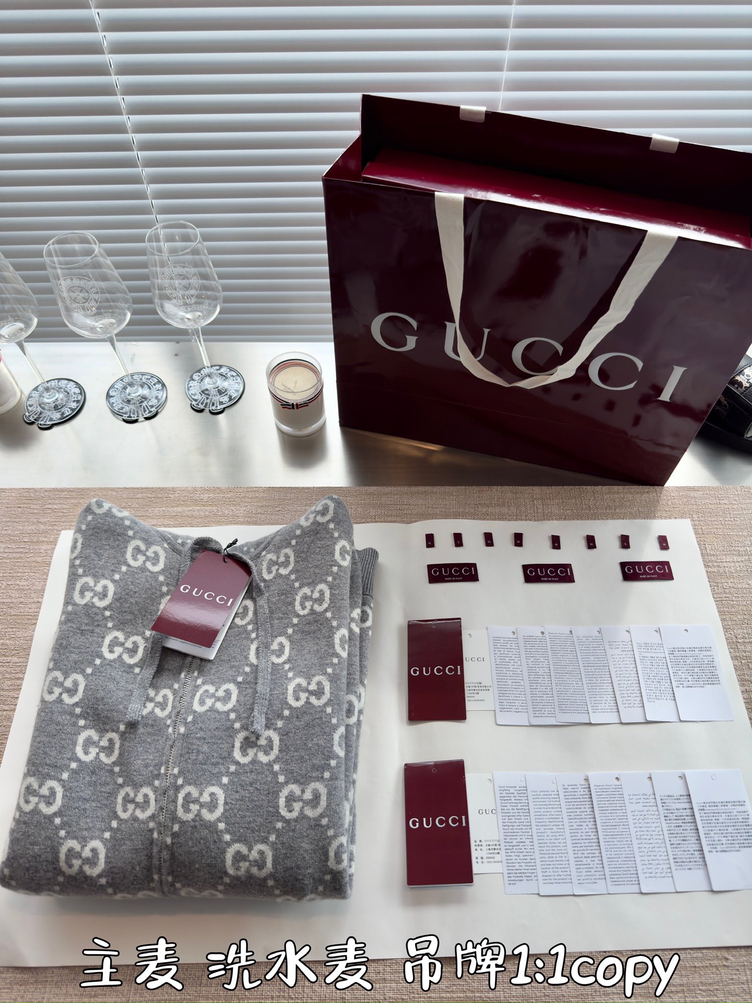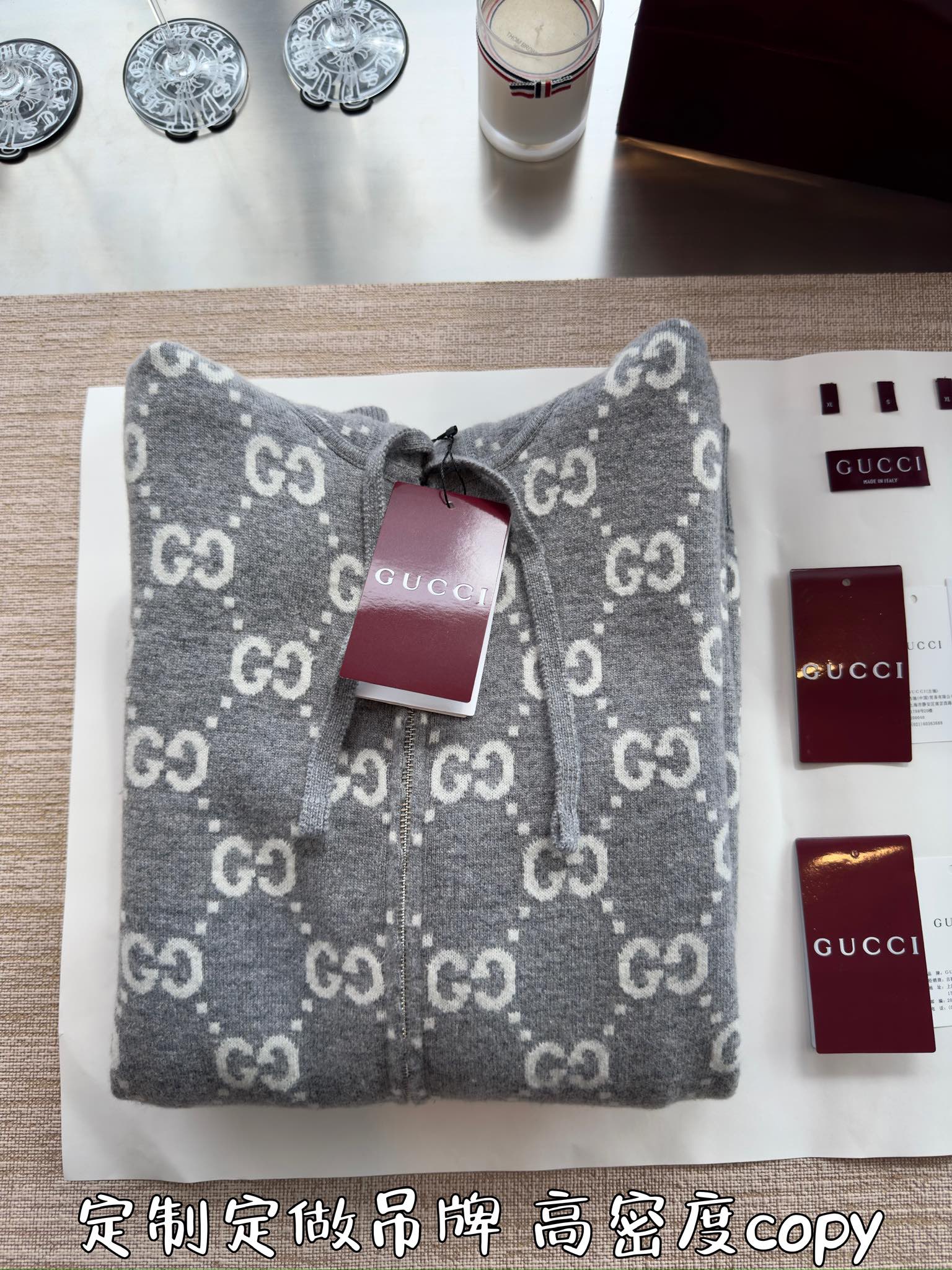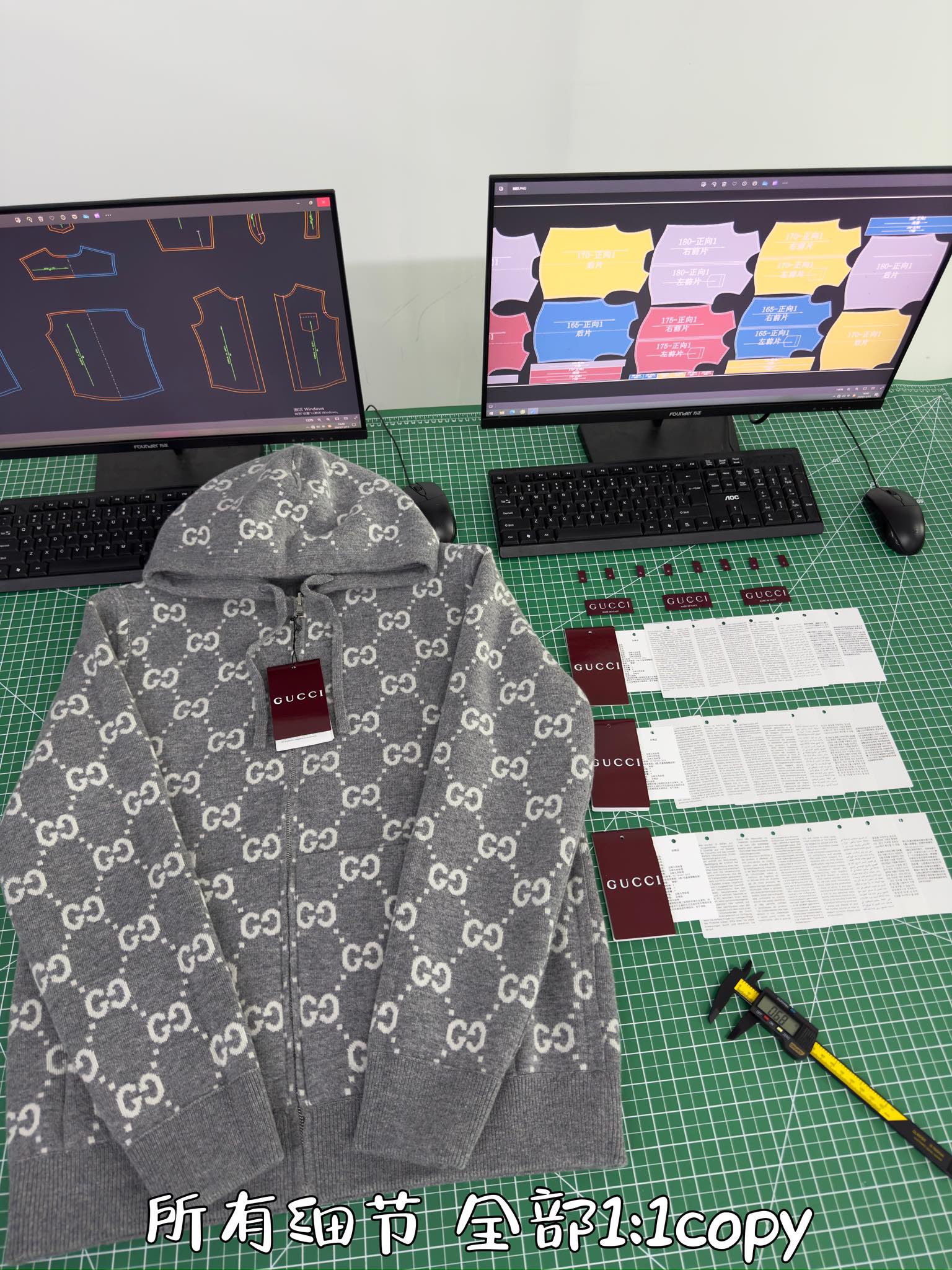 整件衣服23700购买Zp拆解打造,定织美利奴羊毛纱线100%含毛量,全幅GG满绣花LOGO挂毛工艺跟灰色纱线融合在一起 不存在起纱凹凸不平,定制奶奶灰纱线