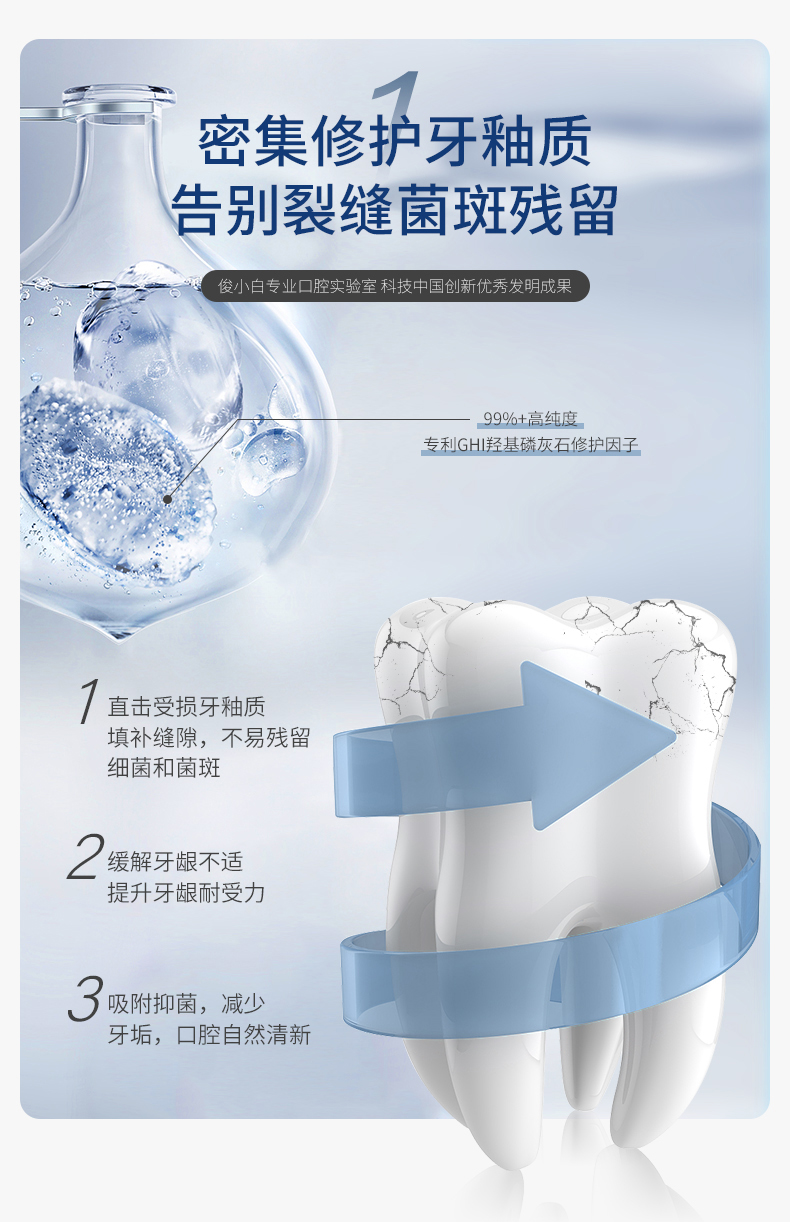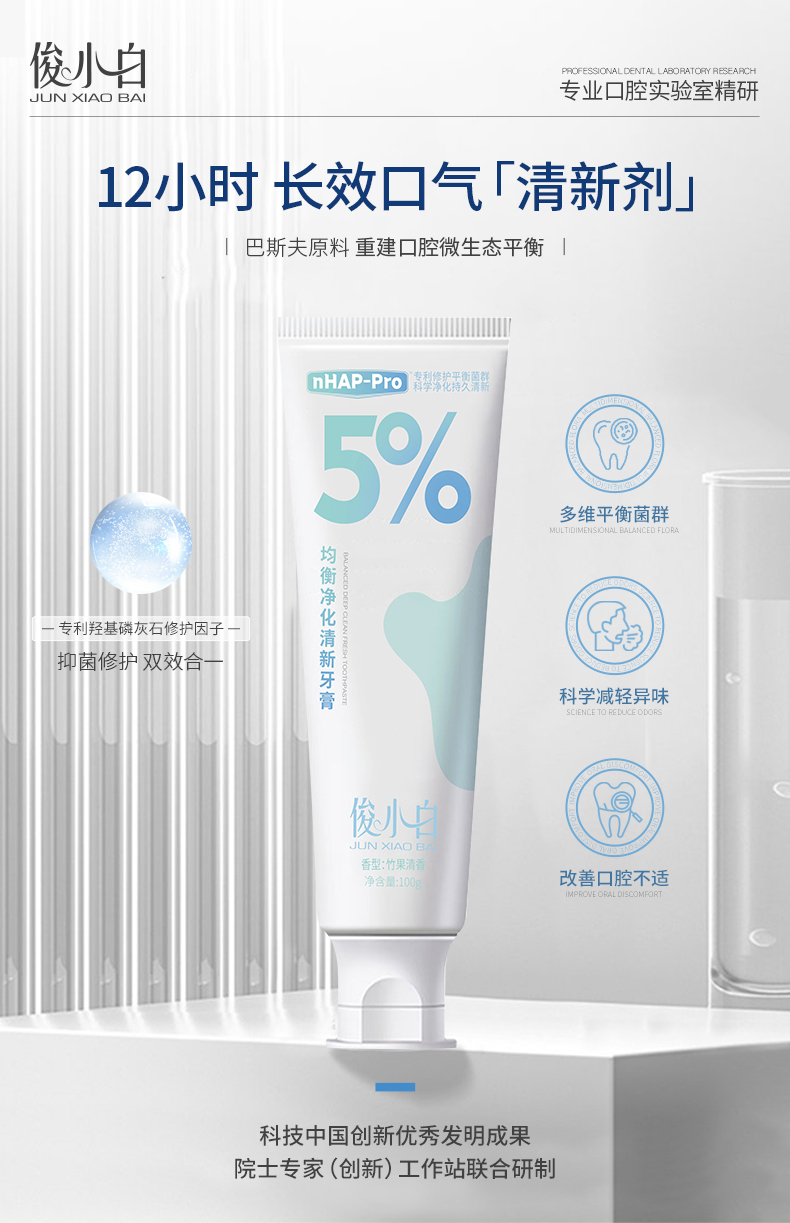 单支100g俊小白nHAP羟基磷灰石亮皓密集修护牙膏 健齿护龈