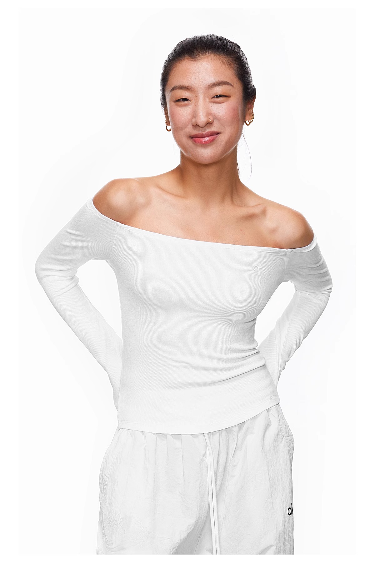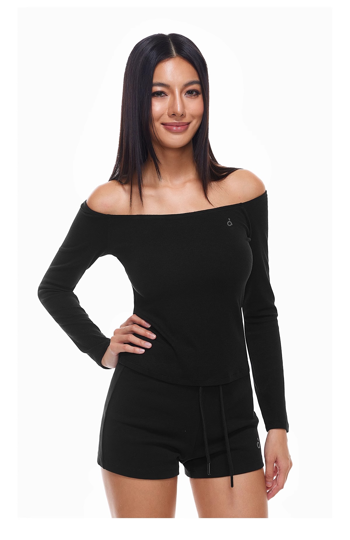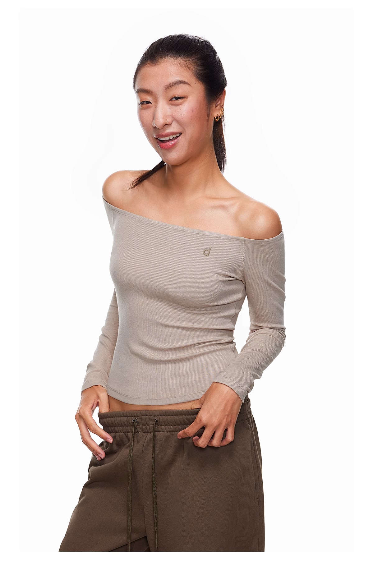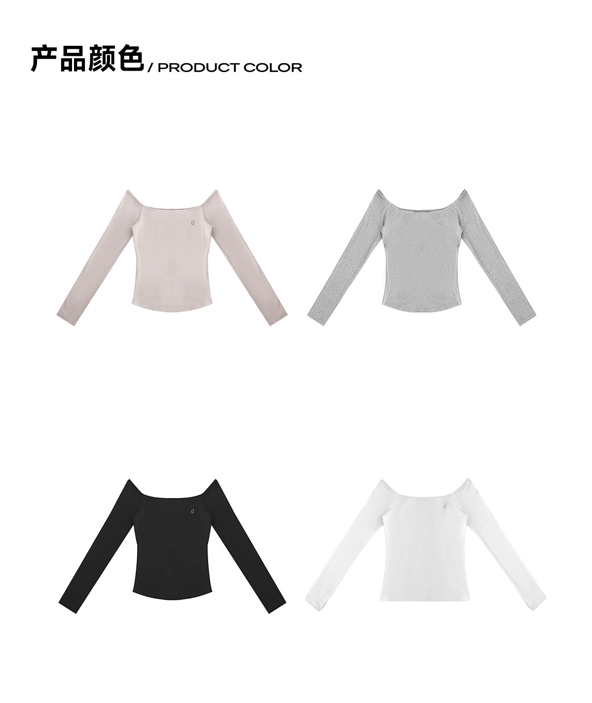 【178元任选3件】FDR旗舰店 亲肤弹力修身长袖t恤女紧身显瘦针织衫露肩一字肩上衣