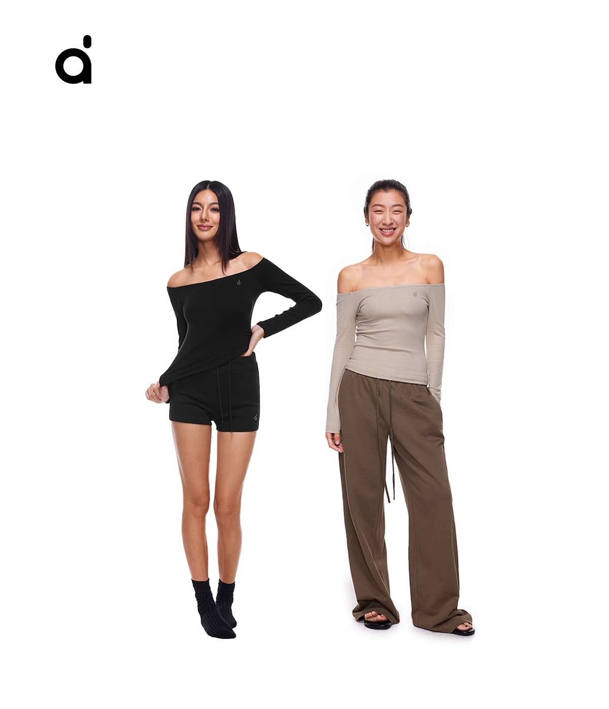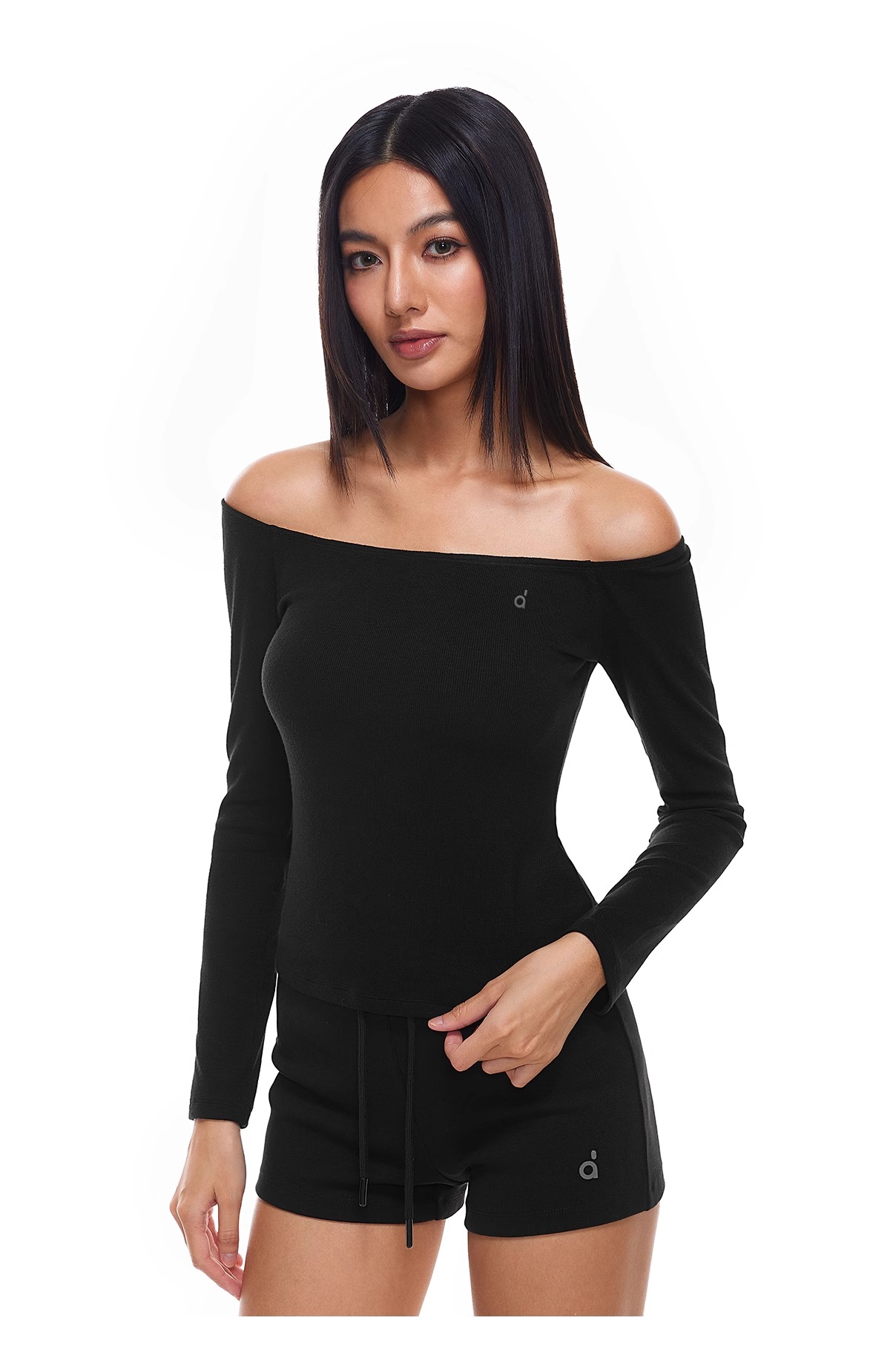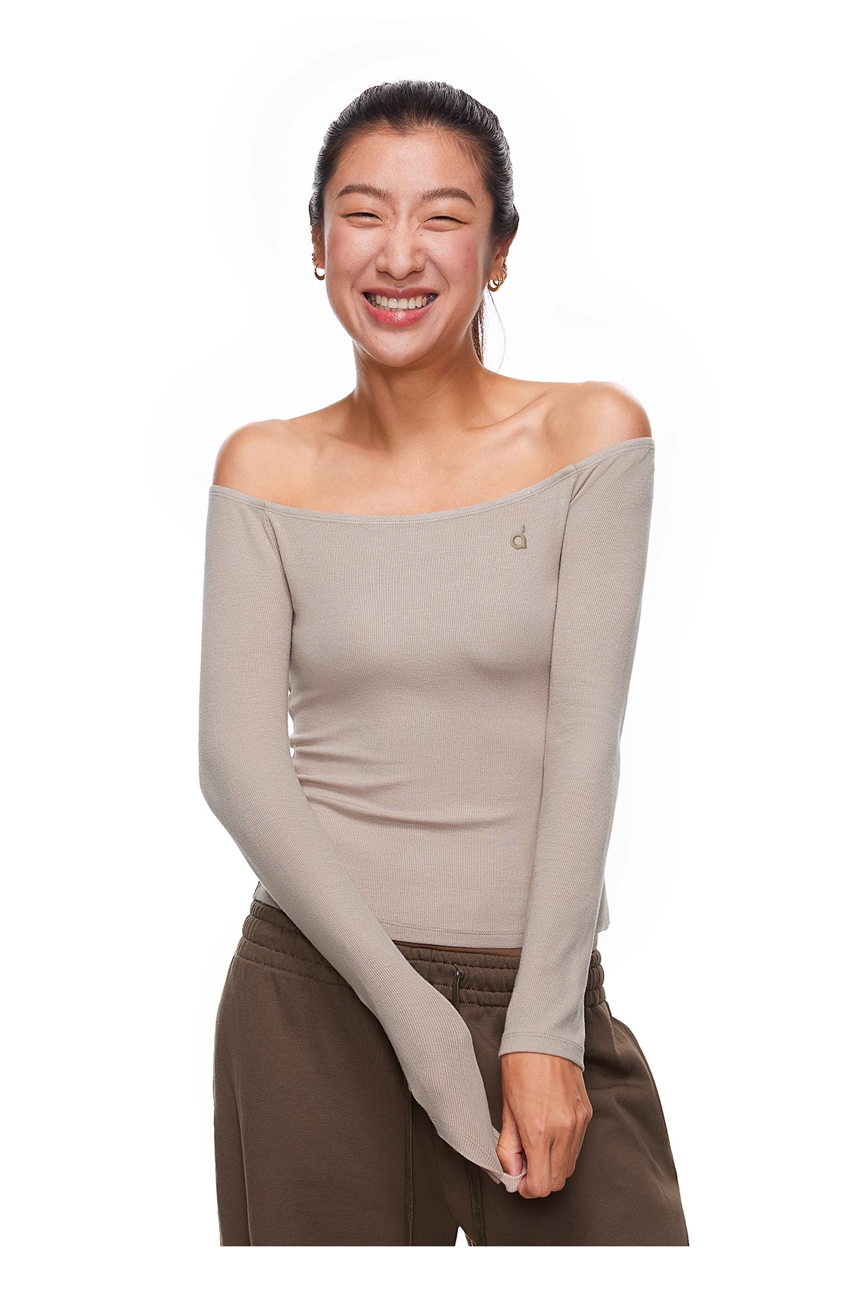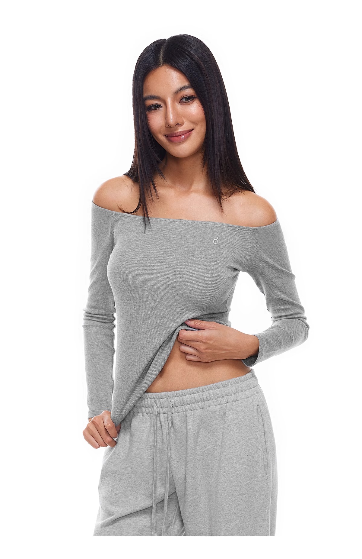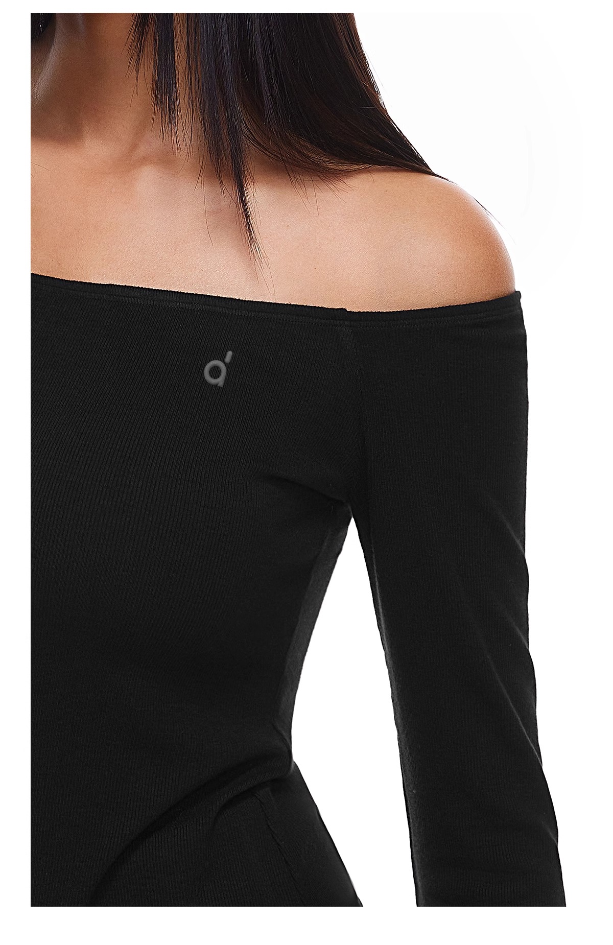 【178元任选3件】FDR旗舰店 亲肤弹力修身长袖t恤女紧身显瘦针织衫露肩一字肩上衣