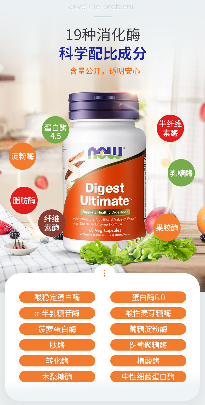 NOW Digest Ultimate消化酶胶囊60粒/瓶