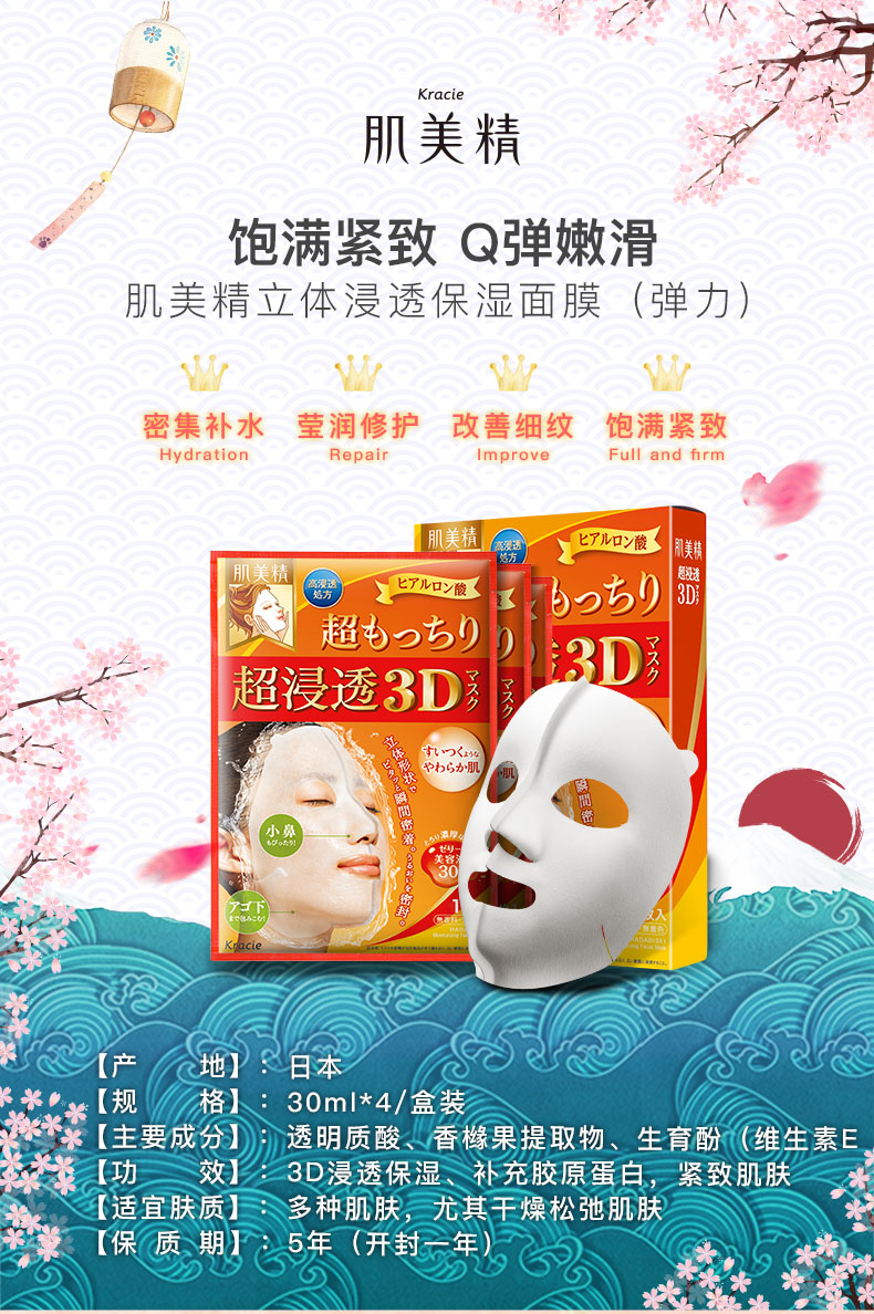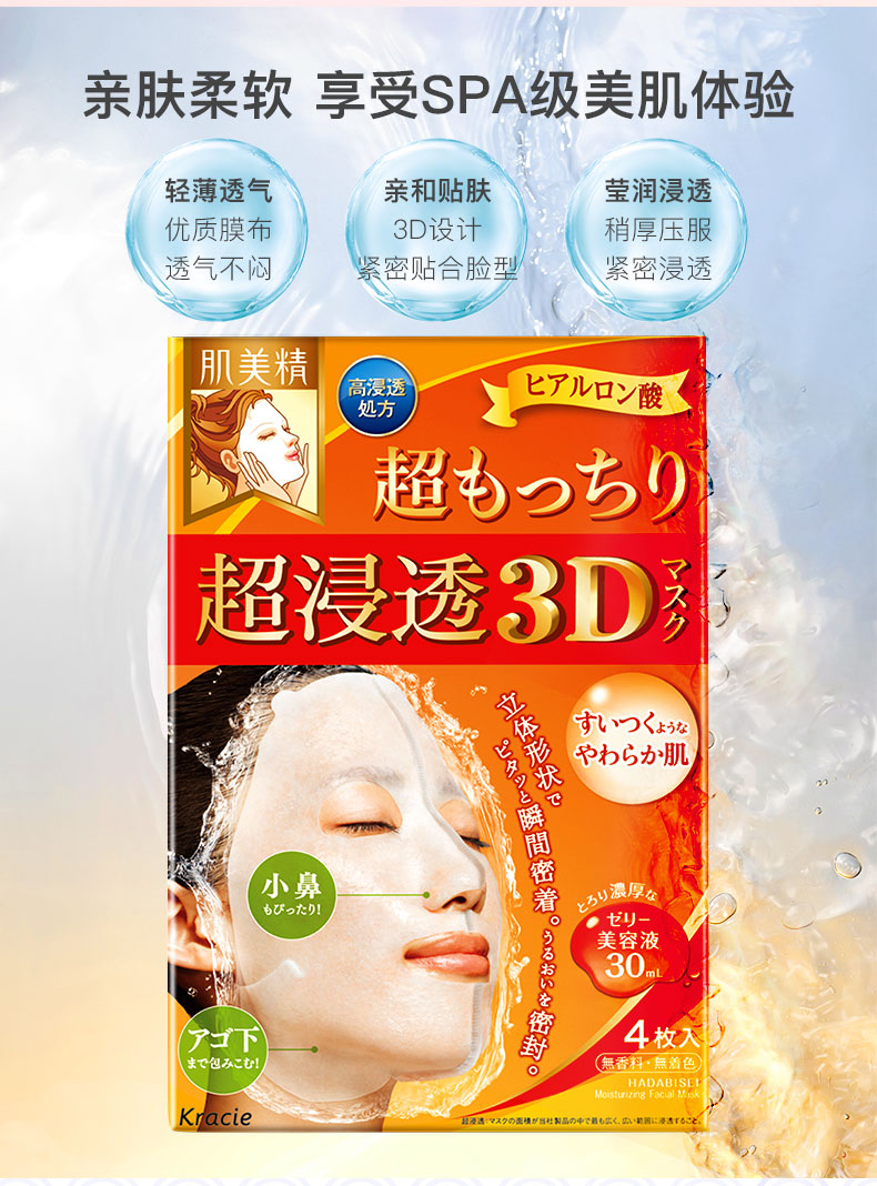 【保税仓】肌美精面膜3D款持效补水4片装橙盒