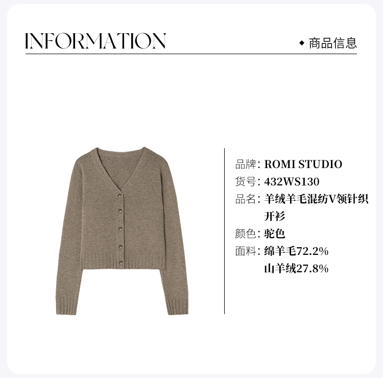 ROMI STUDIO “温柔质感” 7针6s羊绒羊毛混纺V领针织开衫 432WS130