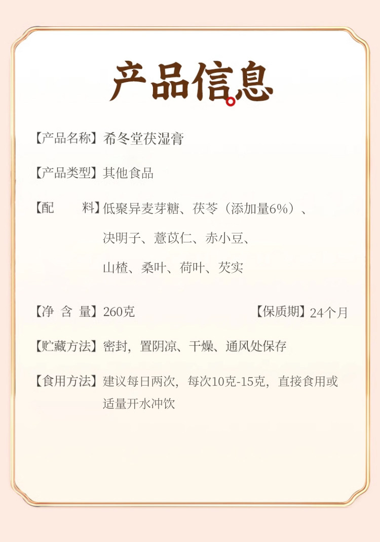 【希冬堂茯湿膏】茯苓薏仁伏湿膏活力代谢膏体湿气正品官方旗舰店