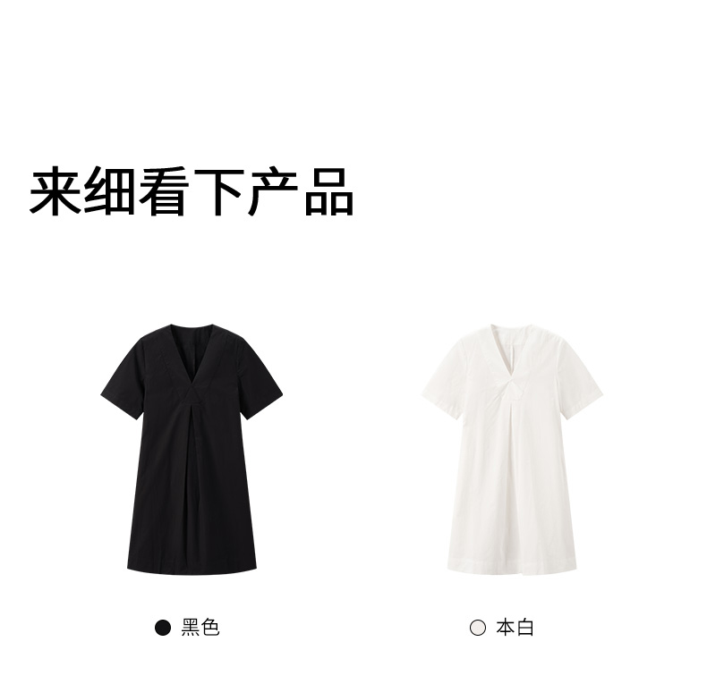 【裙装】 女装亲肤透气棉感V领褶裥宽松A字版连衣裙 1N2225303