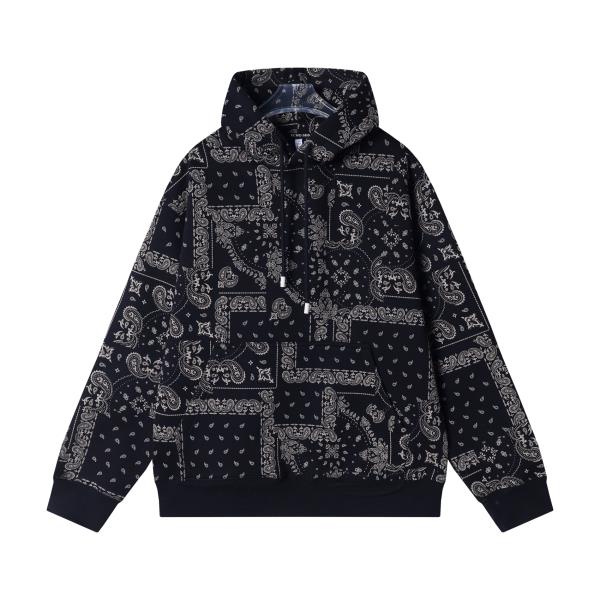 WY861秋冬季新款时尚个性街头复古腰果花满印连帽卫衣情侣宽松潮流上衣