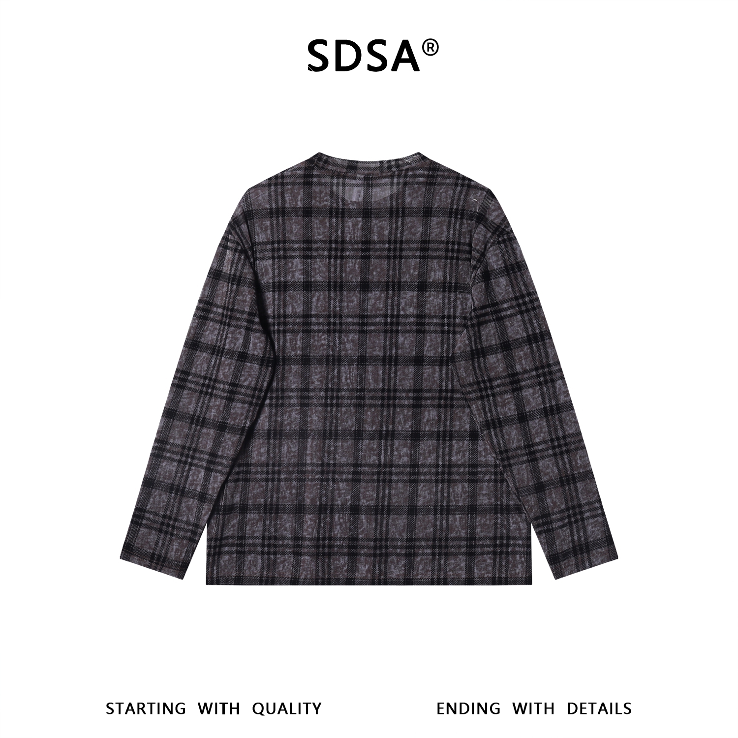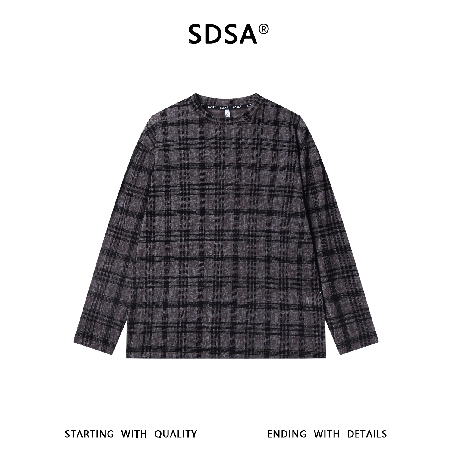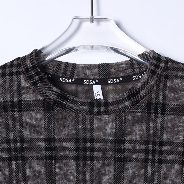 SDSA男装2026新款高贵轻奢简约扎染撞色格纹圆领长袖T恤百搭时尚