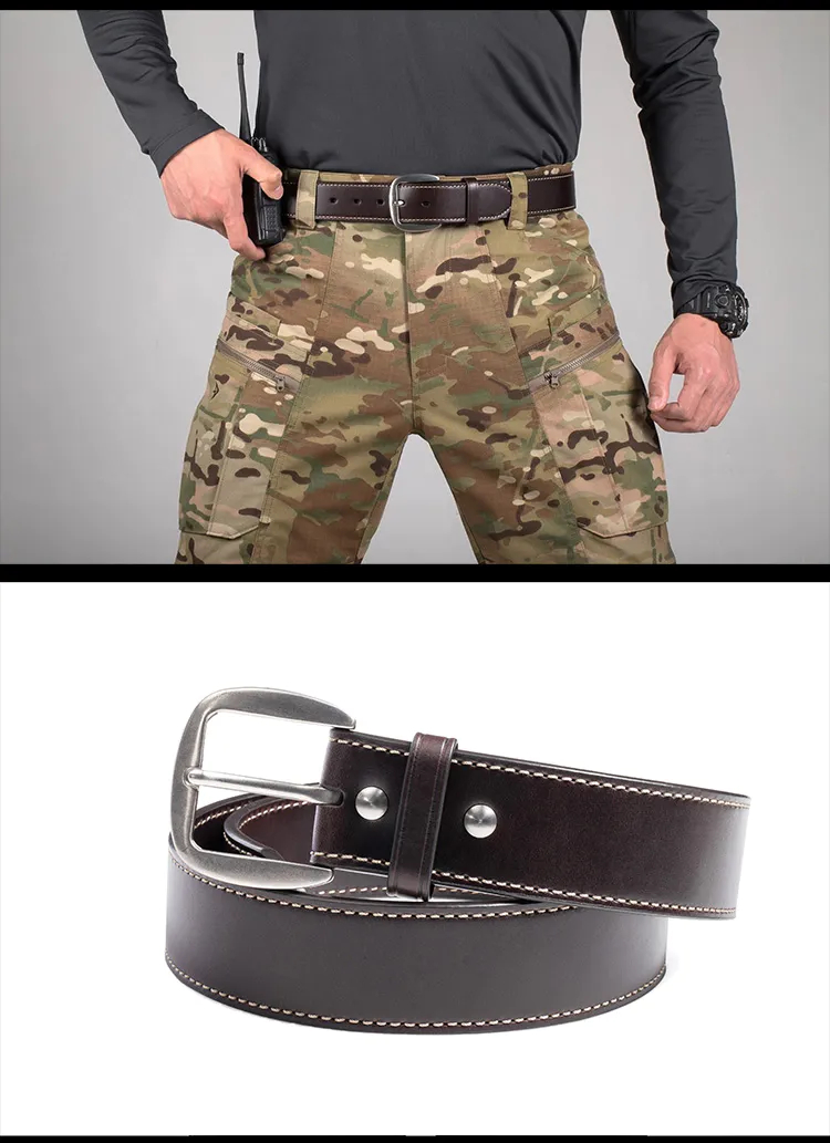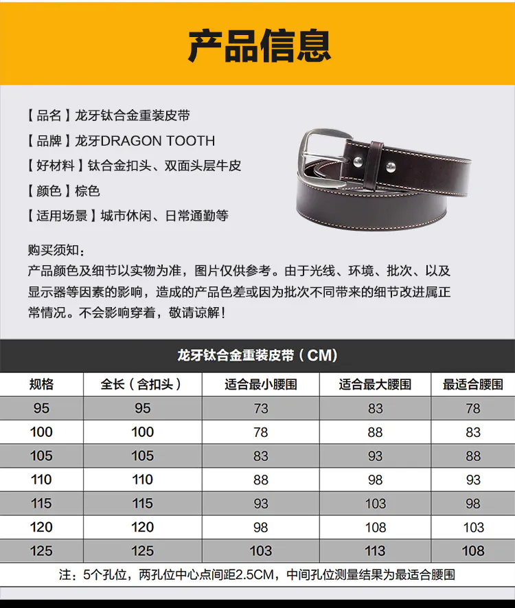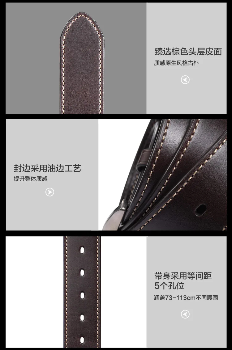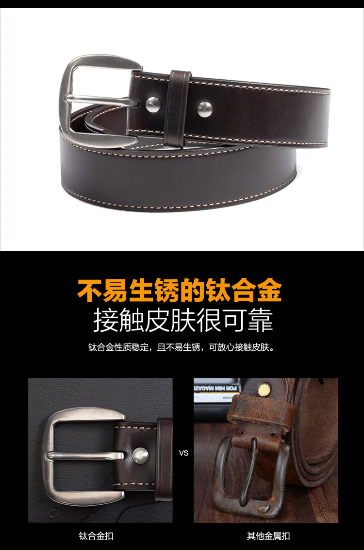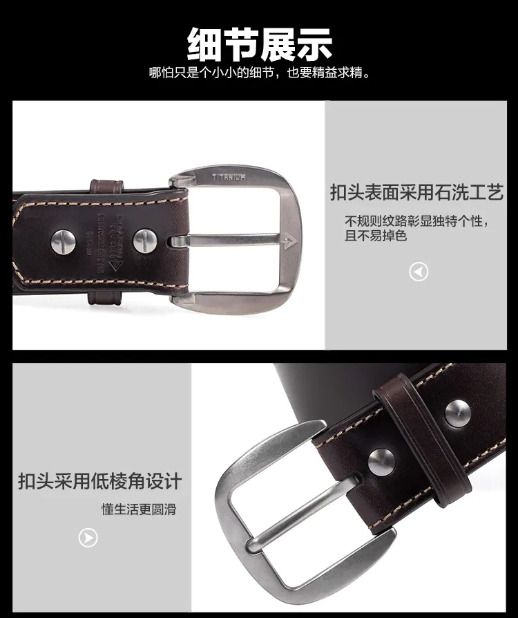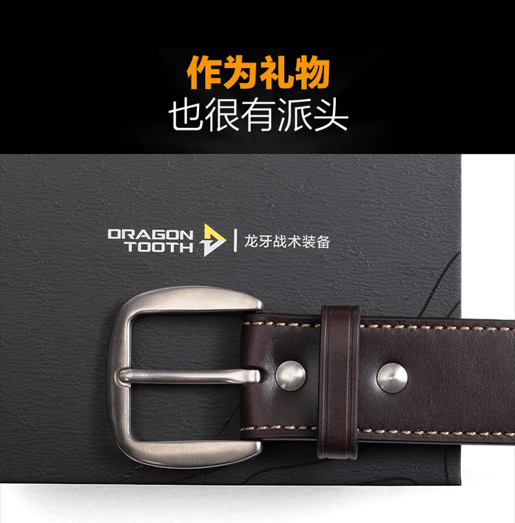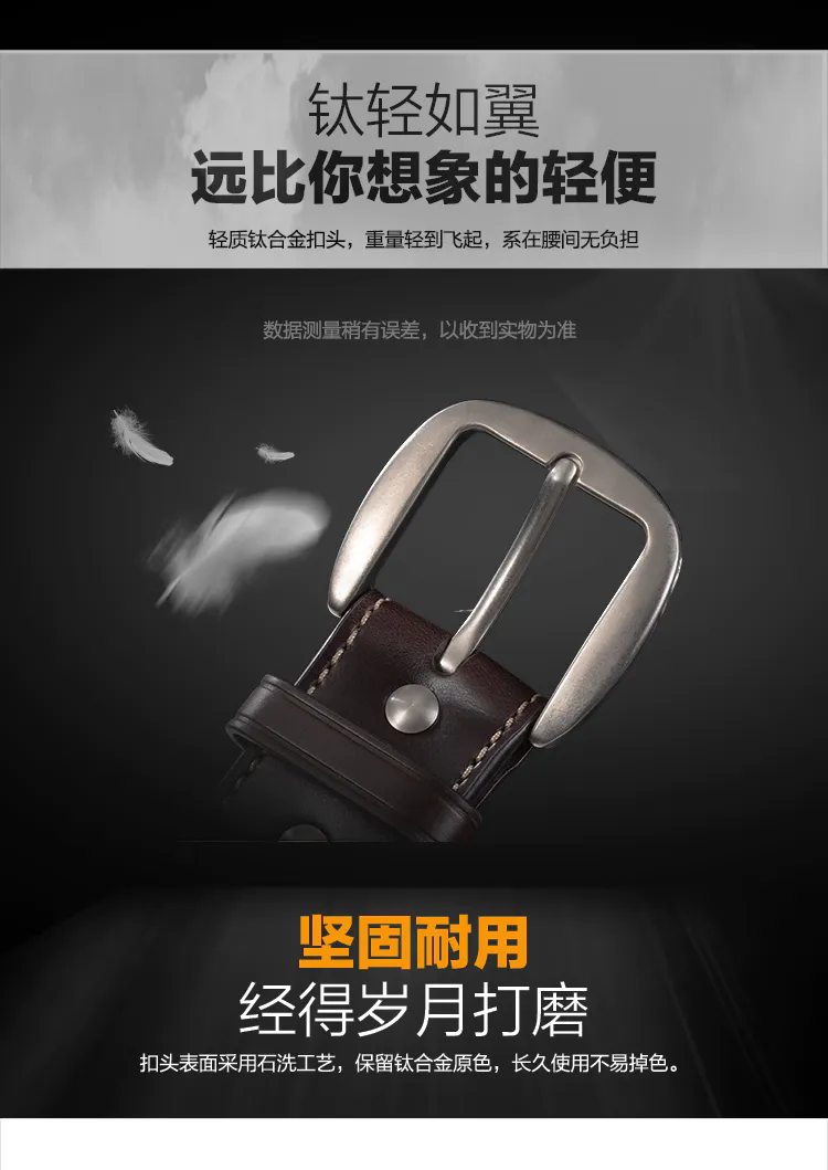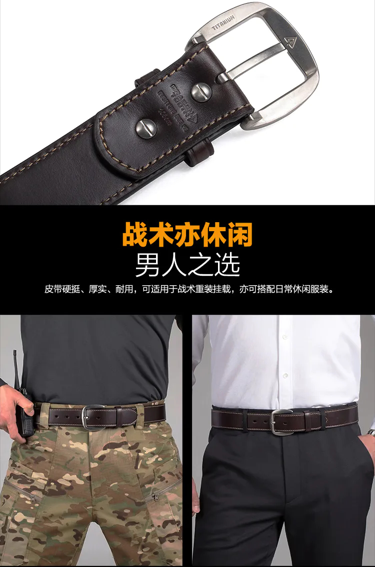 龙牙钛合金重装皮带头层牛皮真皮休闲通勤软面皮带男款