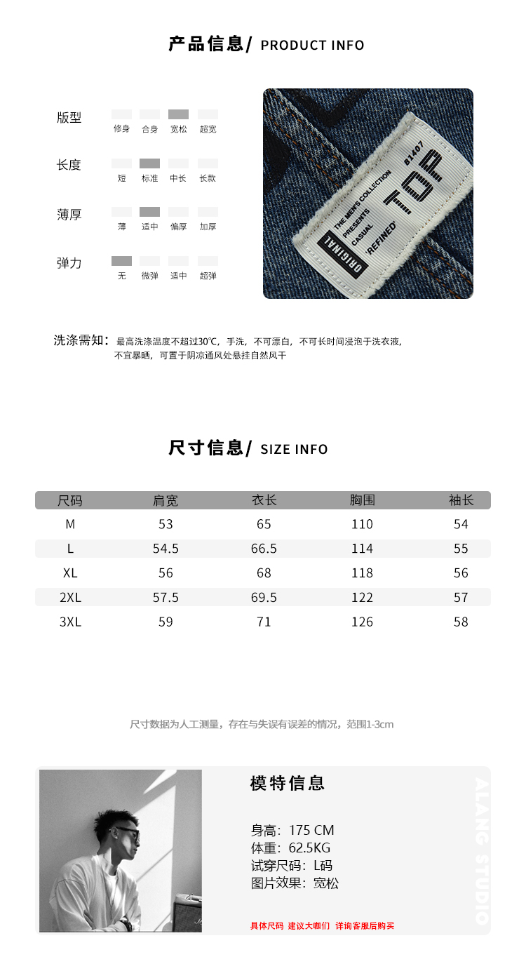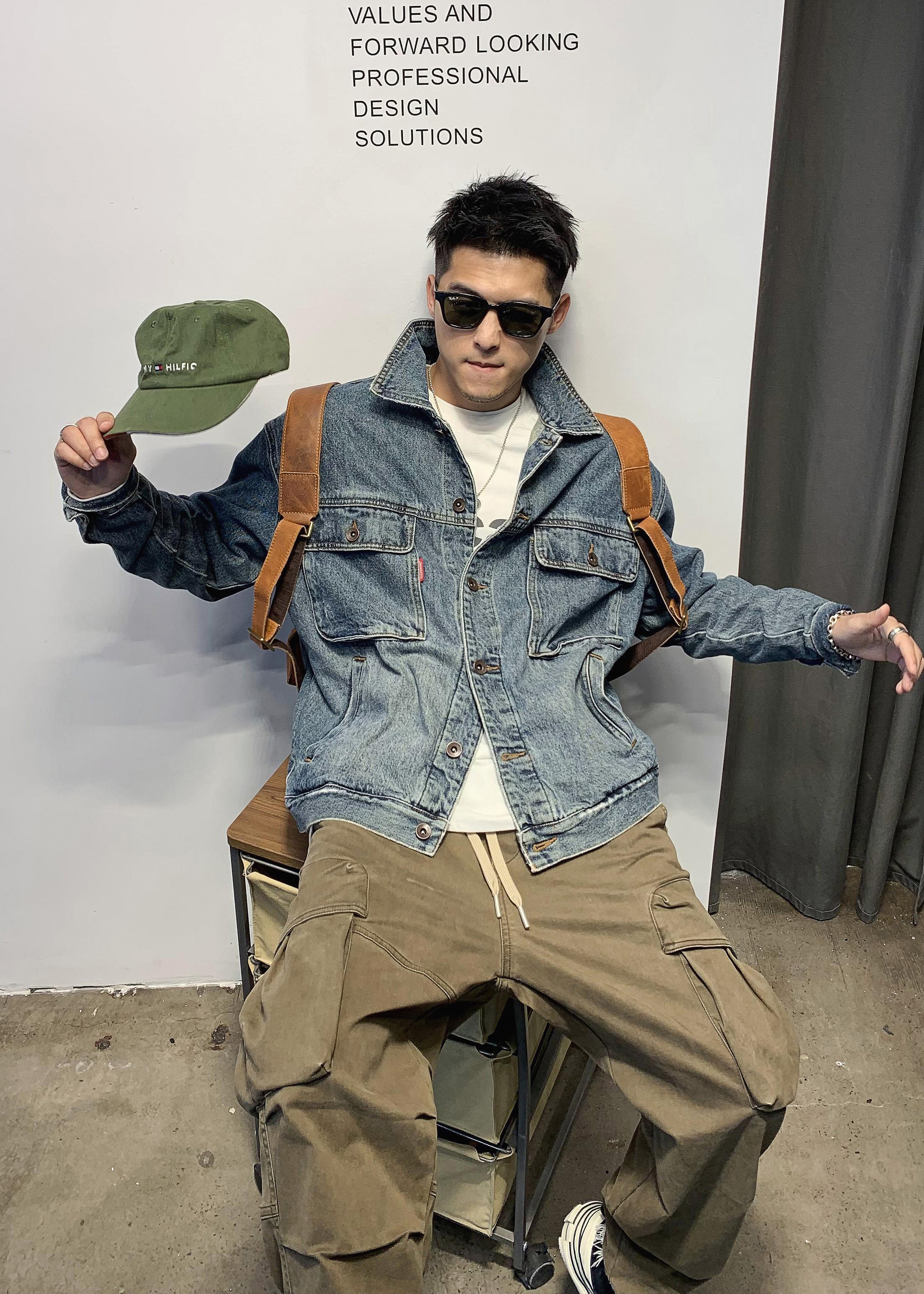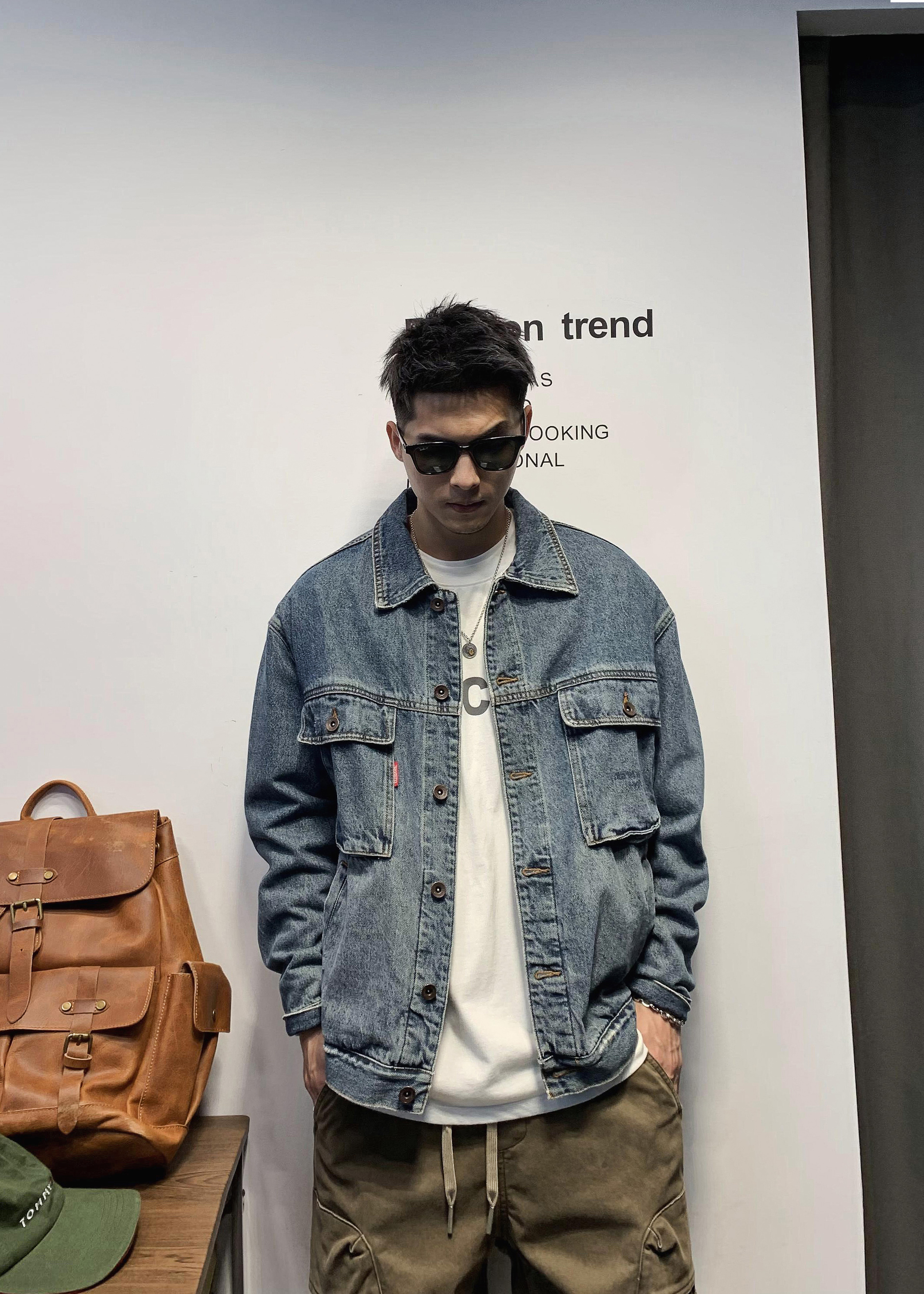 徐太浪美式复古牛仔夹克男春秋高街水洗上衣国潮痞帅炸街无帽外套