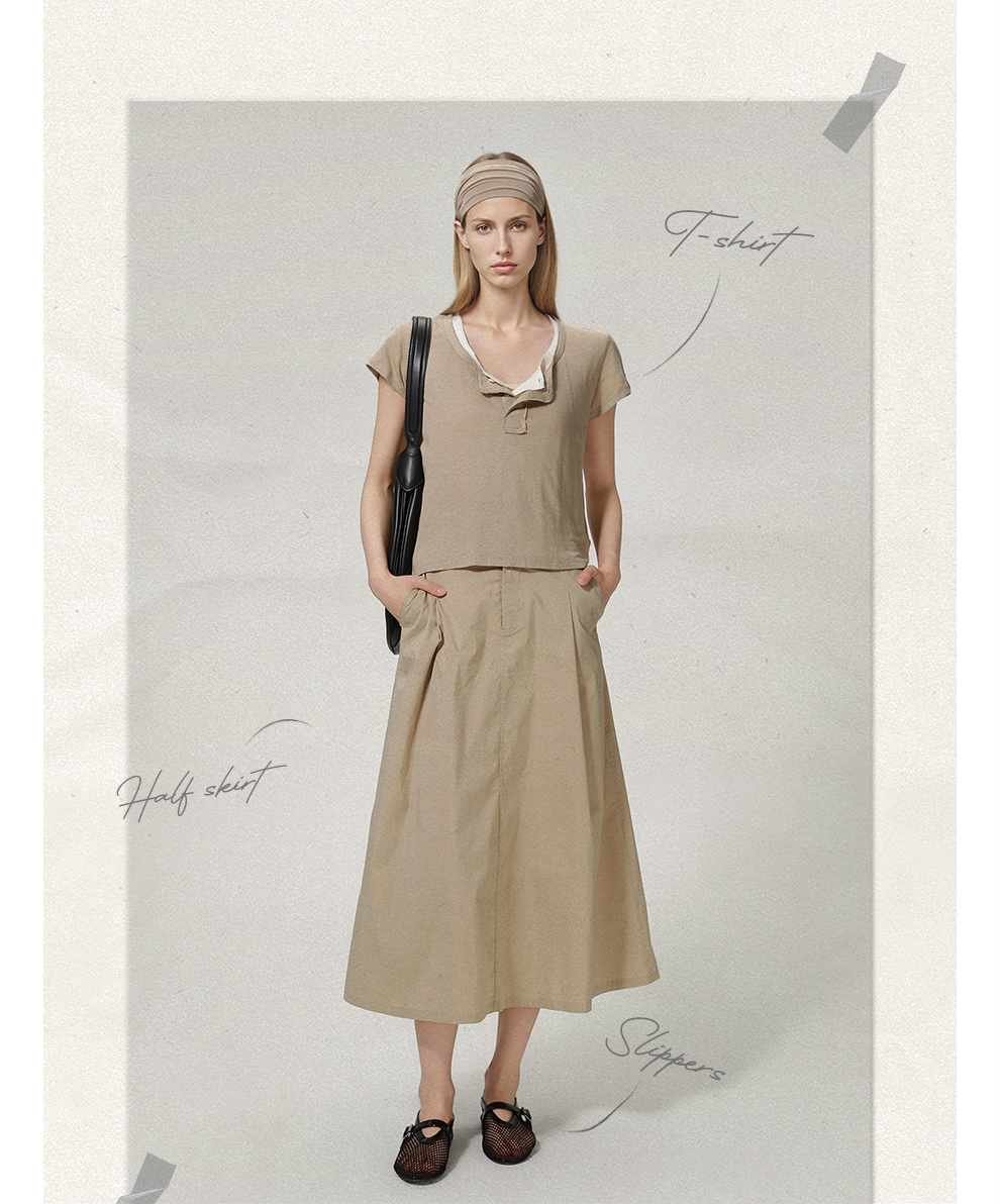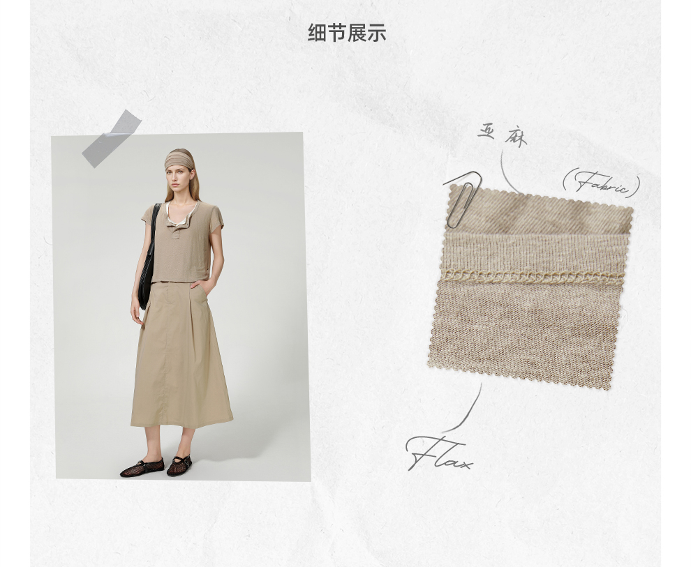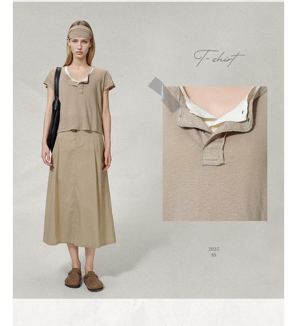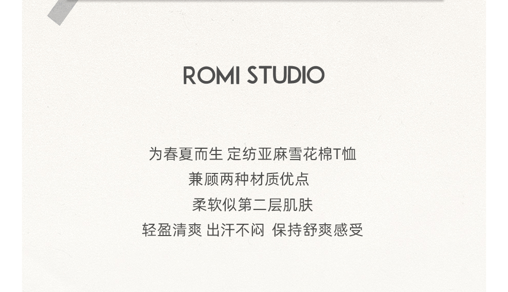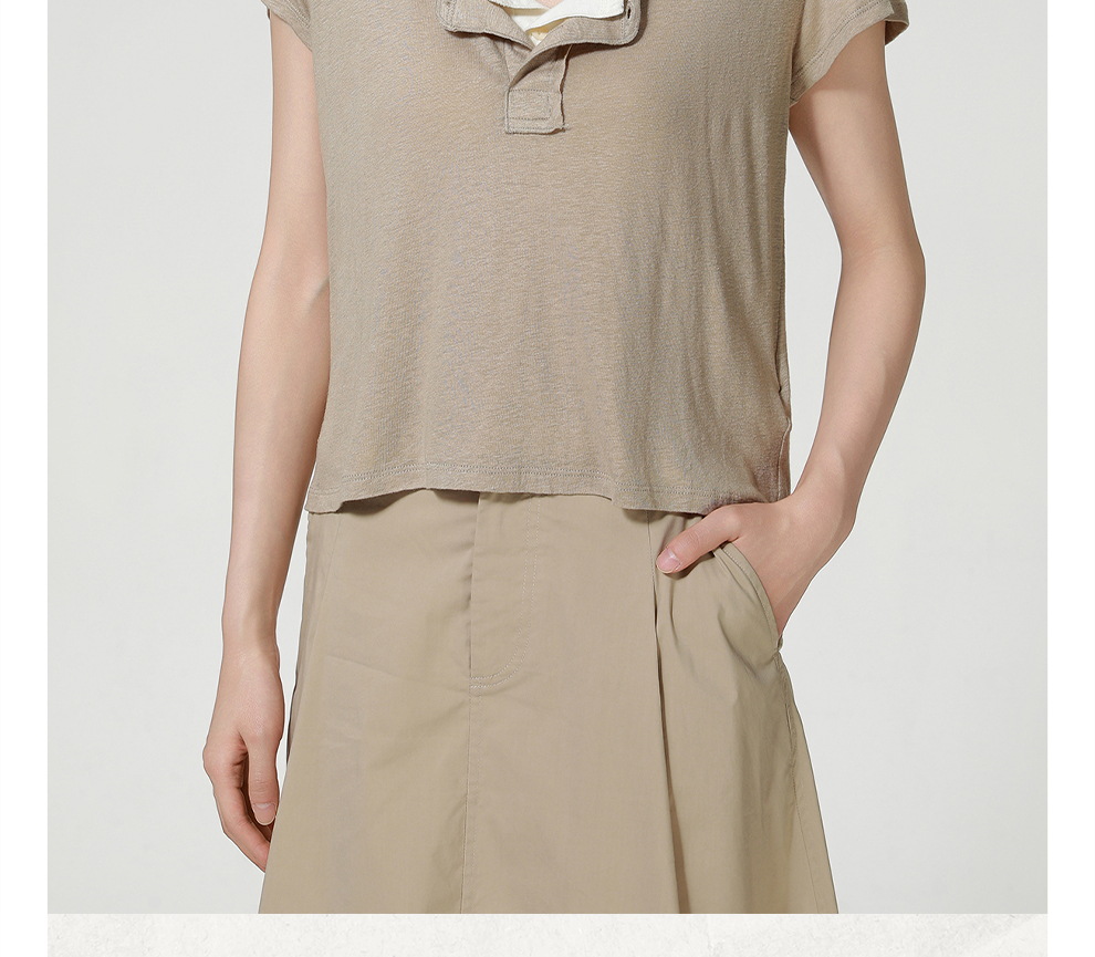 ROMI STUDIO“亨利经典”160G亚麻雪花棉混纺亨利领短袖T恤421T7052