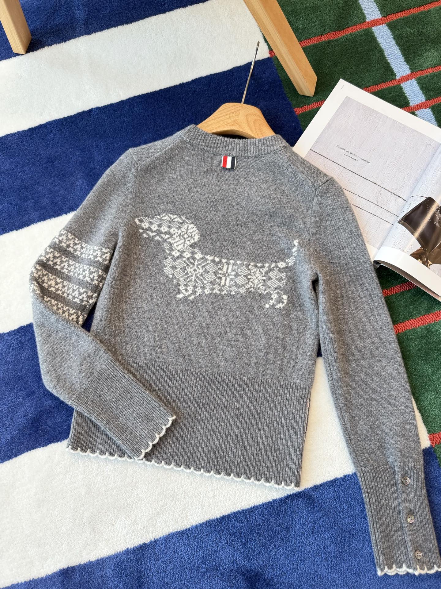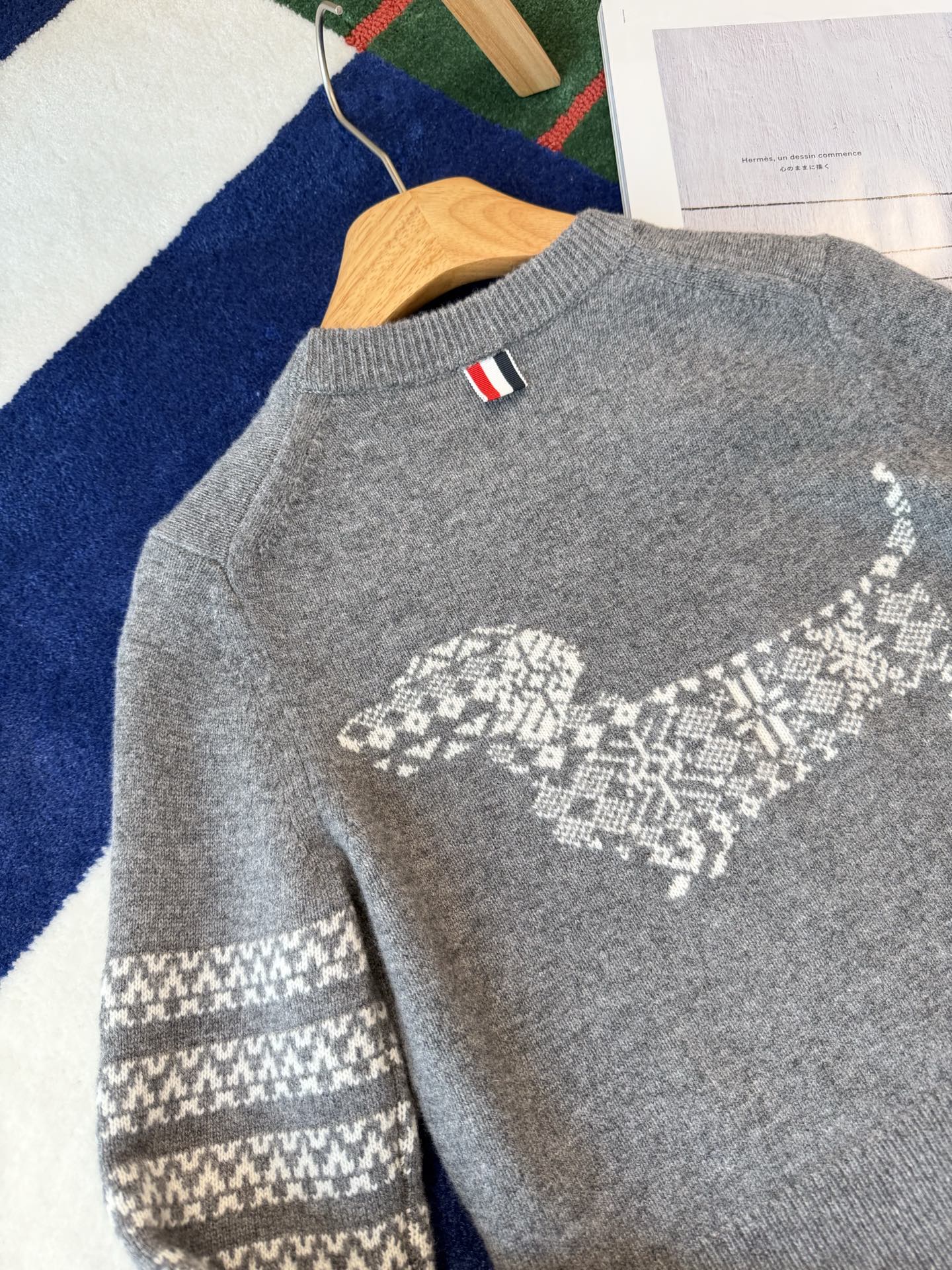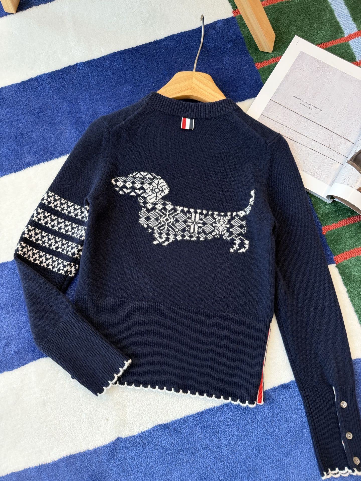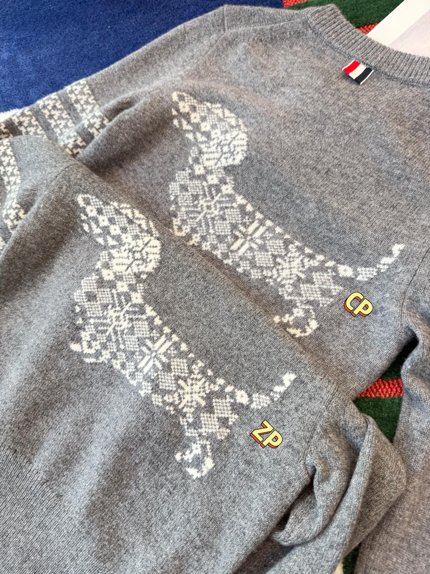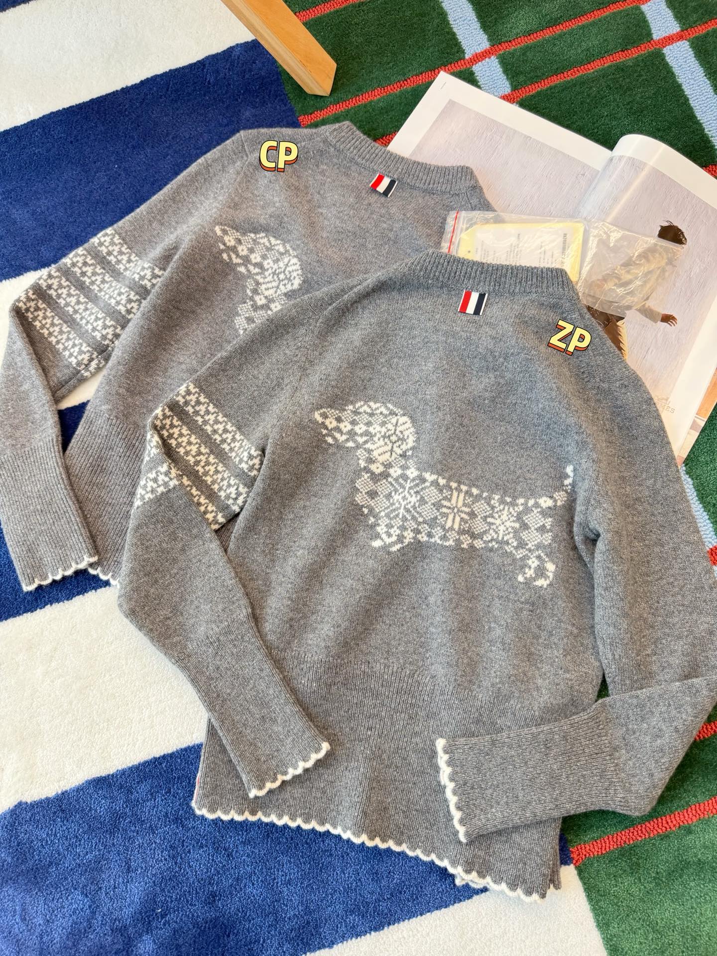 最最最新款 狗狗 圆领针织衫,TB藏蓝与灰色的两大经典结合, 高级到爆 , 下摆袖口花边工艺🔗做工和工艺相当复杂,定制定染纱线🧵质感无敌啦, 万年夸‼️经典款人手必备,百穿不厌 永不过时,紧实又有质感耐穿不变形 也具有柔软保暖的舒适感 ➕➕满满的学院风,真的是随意搭配都好看❕懂货的集美都已经人手一件了,必备款 敲推荐噢⚡️蓝/灰两个色,码数SML