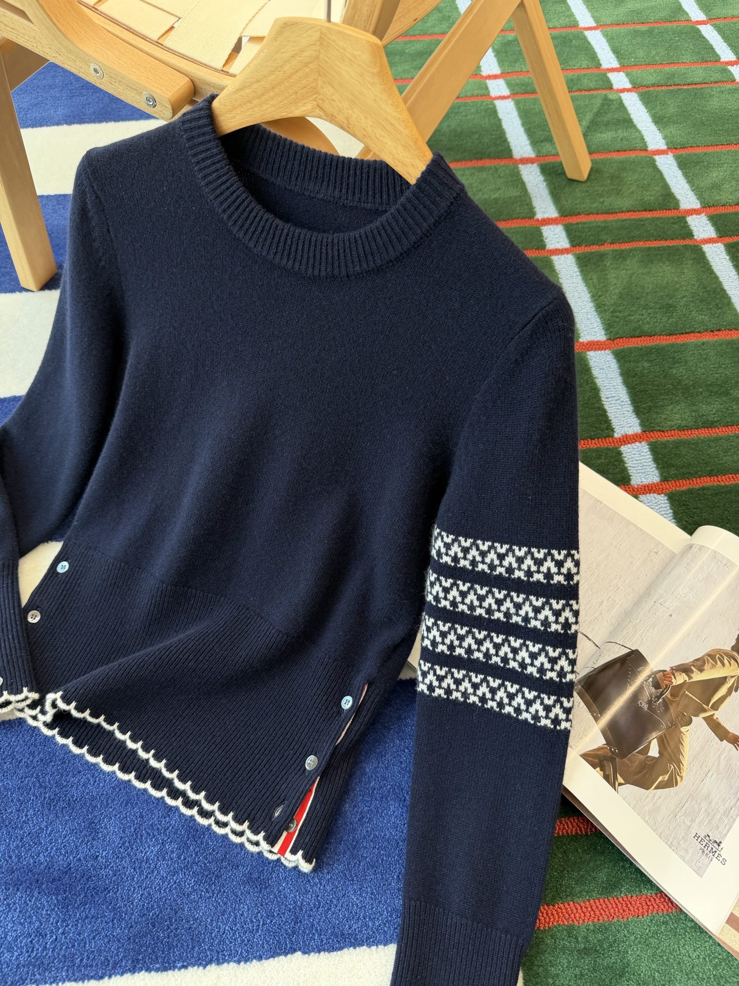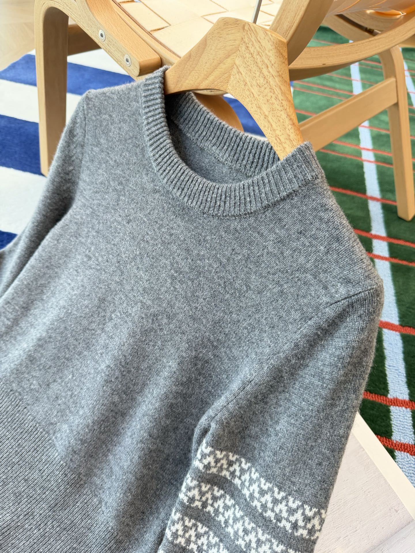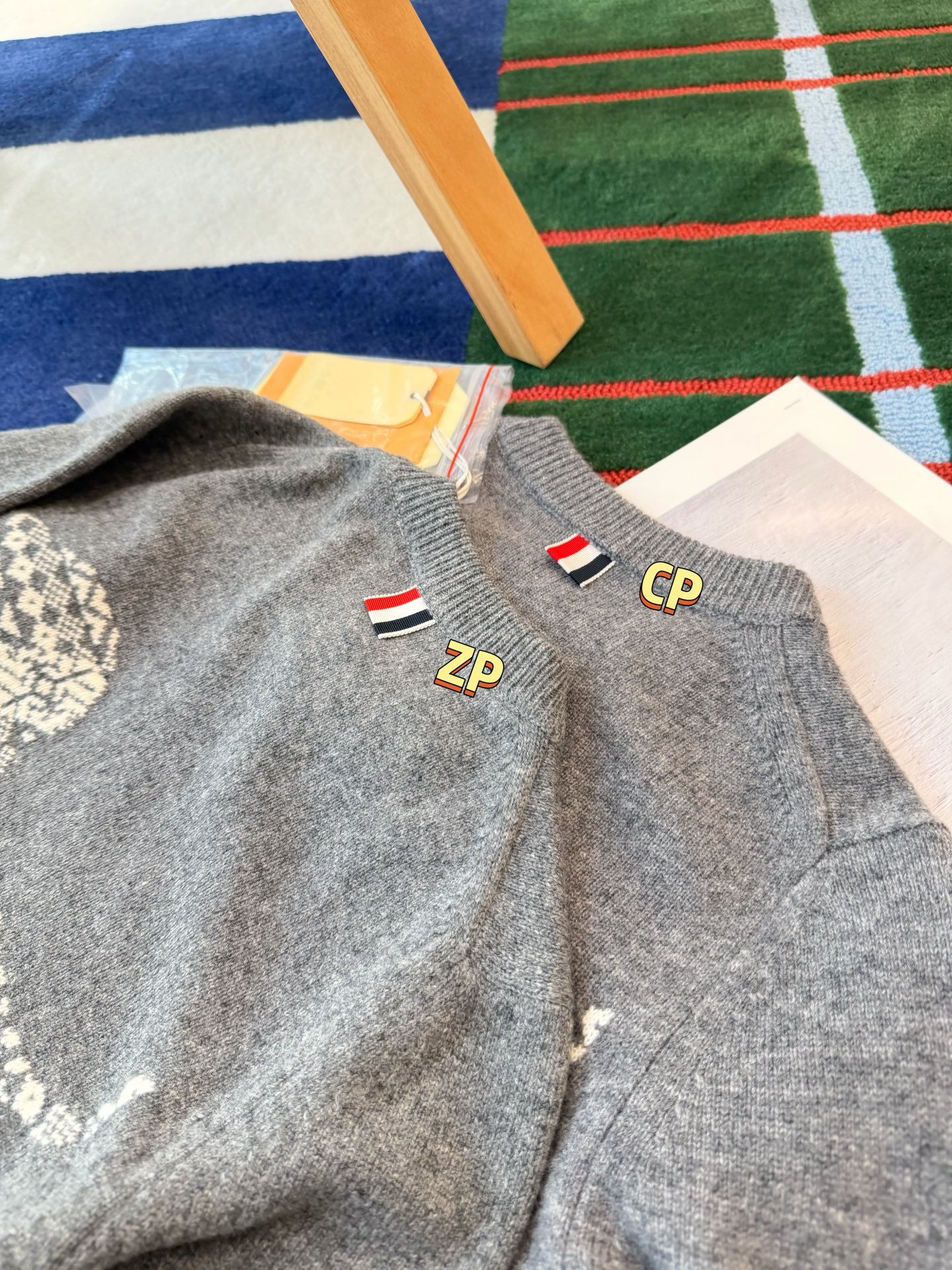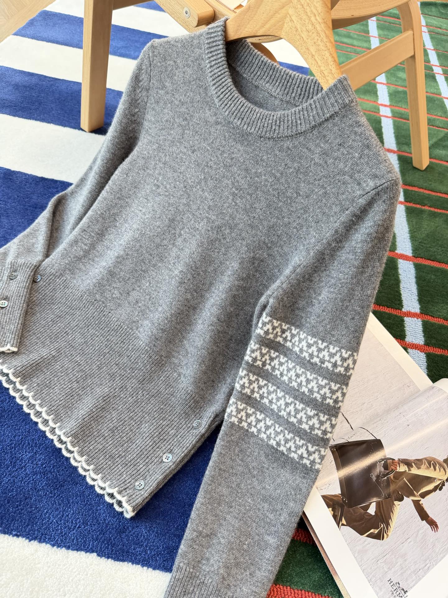 最最最新款 狗狗 圆领针织衫,TB藏蓝与灰色的两大经典结合, 高级到爆 , 下摆袖口花边工艺🔗做工和工艺相当复杂,定制定染纱线🧵质感无敌啦, 万年夸‼️经典款人手必备,百穿不厌 永不过时,紧实又有质感耐穿不变形 也具有柔软保暖的舒适感 ➕➕满满的学院风,真的是随意搭配都好看❕懂货的集美都已经人手一件了,必备款 敲推荐噢⚡️蓝/灰两个色,码数SML