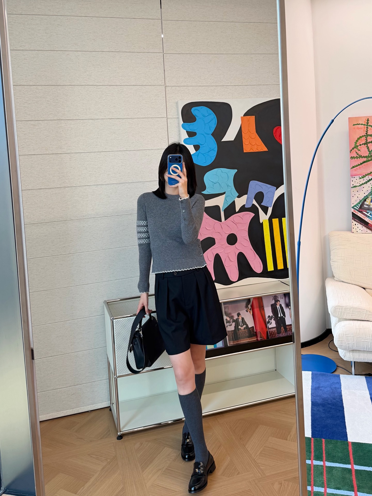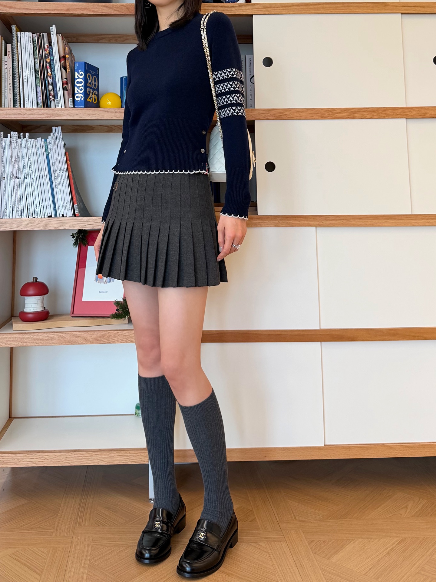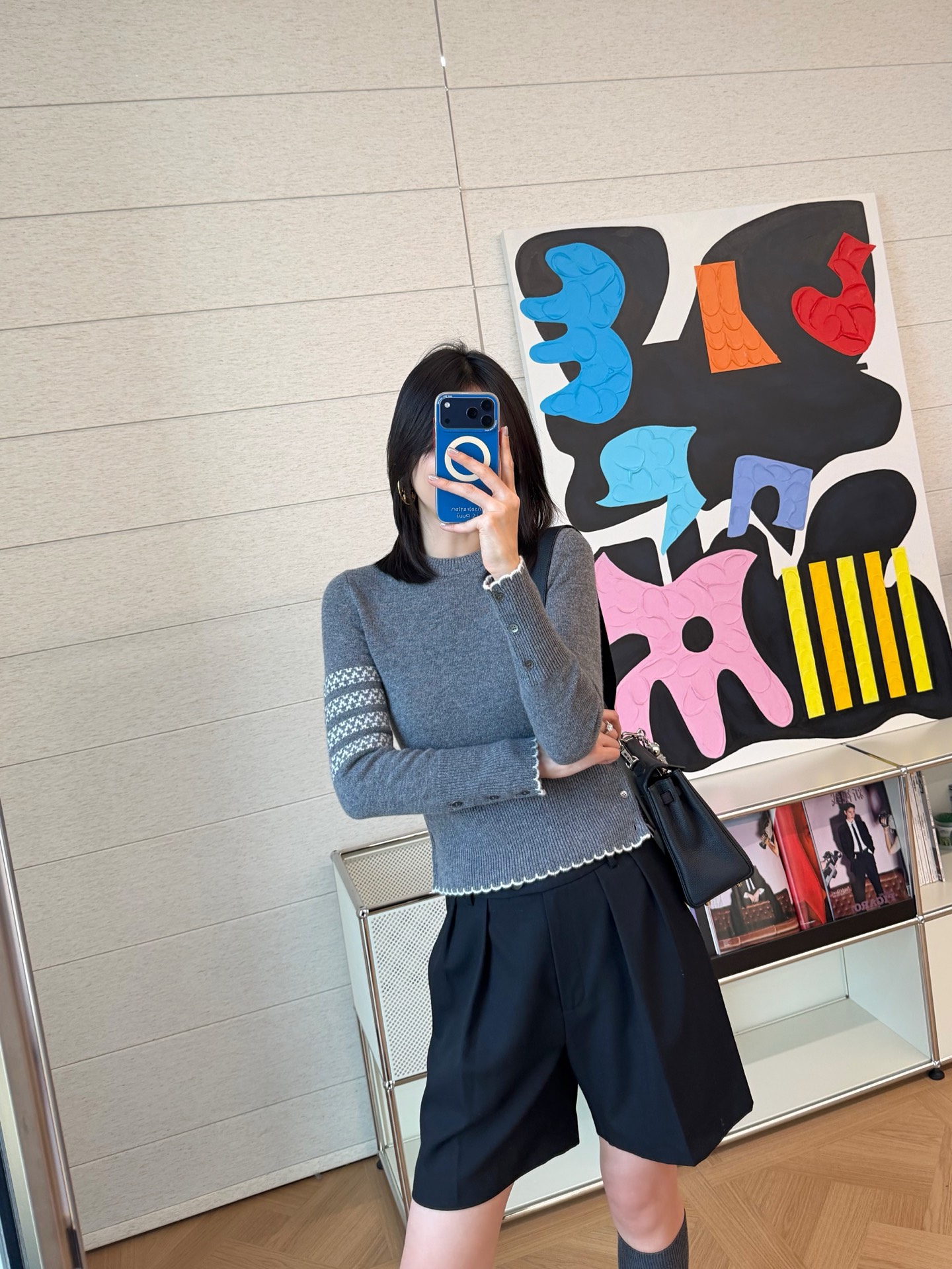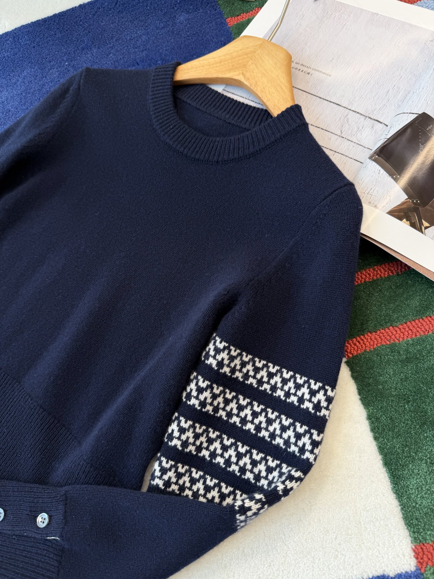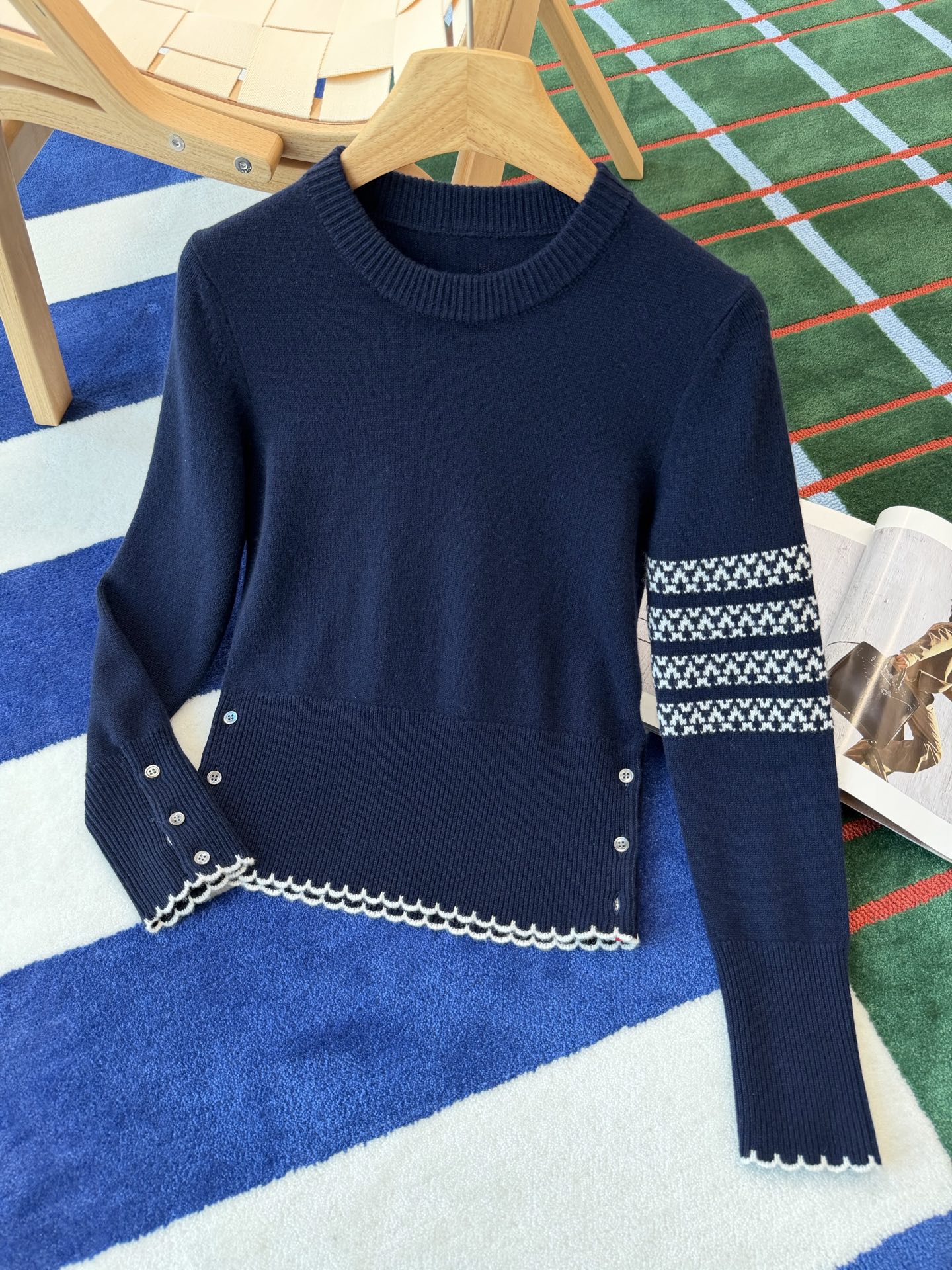 最最最新款 狗狗 圆领针织衫,TB藏蓝与灰色的两大经典结合, 高级到爆 , 下摆袖口花边工艺🔗做工和工艺相当复杂,定制定染纱线🧵质感无敌啦, 万年夸‼️经典款人手必备,百穿不厌 永不过时,紧实又有质感耐穿不变形 也具有柔软保暖的舒适感 ➕➕满满的学院风,真的是随意搭配都好看❕懂货的集美都已经人手一件了,必备款 敲推荐噢⚡️蓝/灰两个色,码数SML