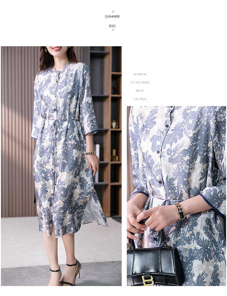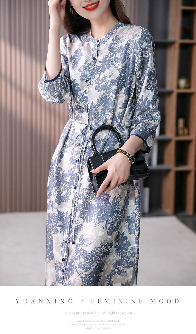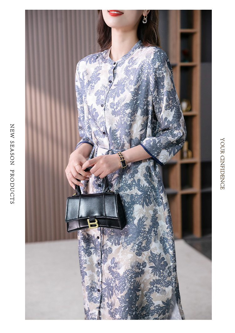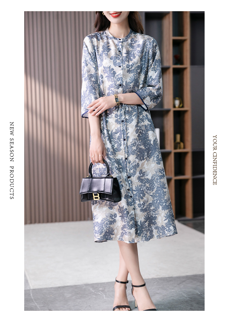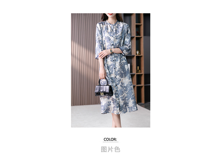 89038原形真丝桑蚕丝连衣裙女2024春夏季新款韩版时尚气质印花衬衫长裙