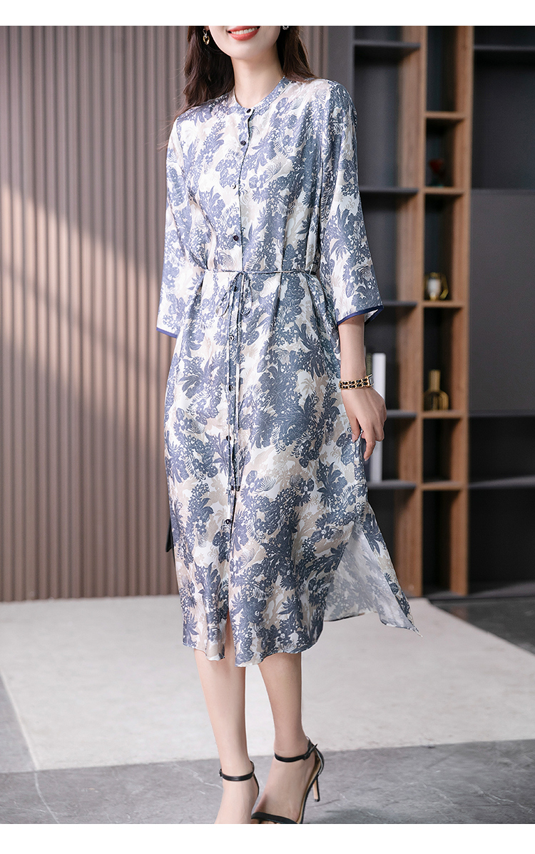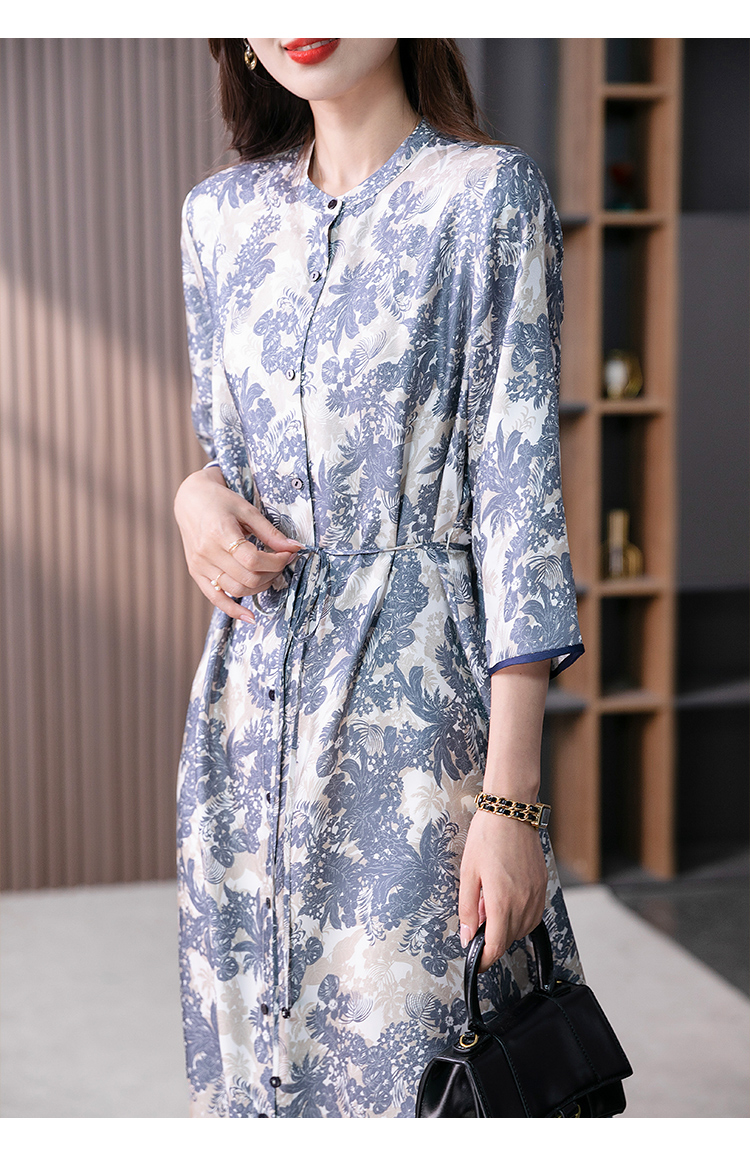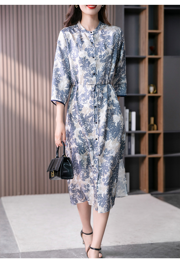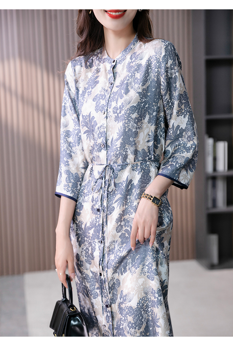 89038原形真丝桑蚕丝连衣裙女2024春夏季新款韩版时尚气质印花衬衫长裙
