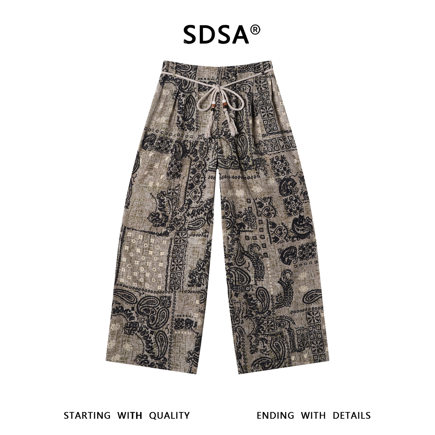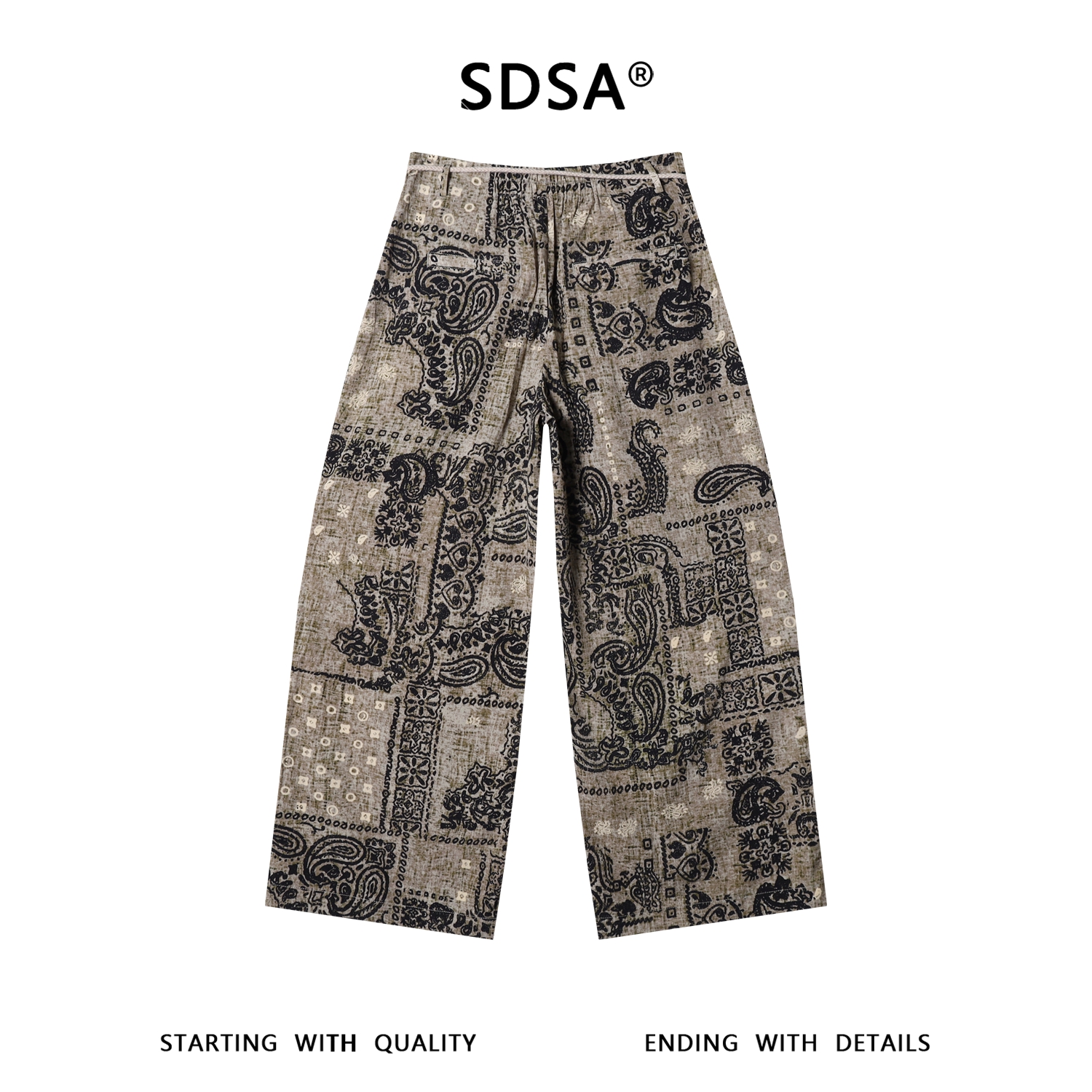 SDSA男装2026新款高贵轻奢简约复古满印花卉抽绳休闲裤百搭休闲