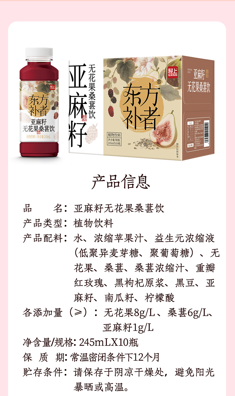轻上东方补者亚麻籽无花果桑葚饮植物饮料0脂肪酸甜清爽