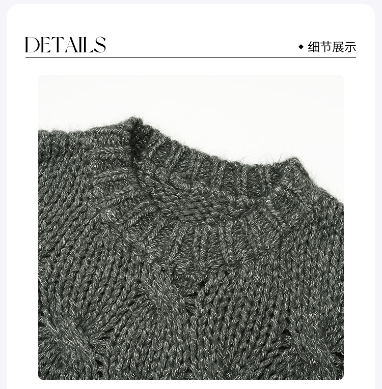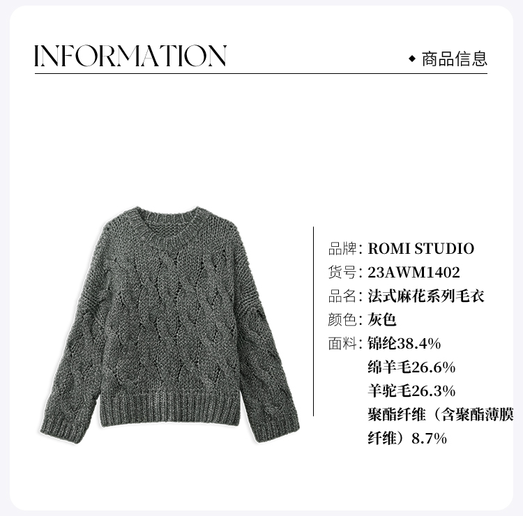 ROMI STUDIO“松弛随性”羊驼毛羊毛混纺圆领麻花针织毛衣23AWM1402
