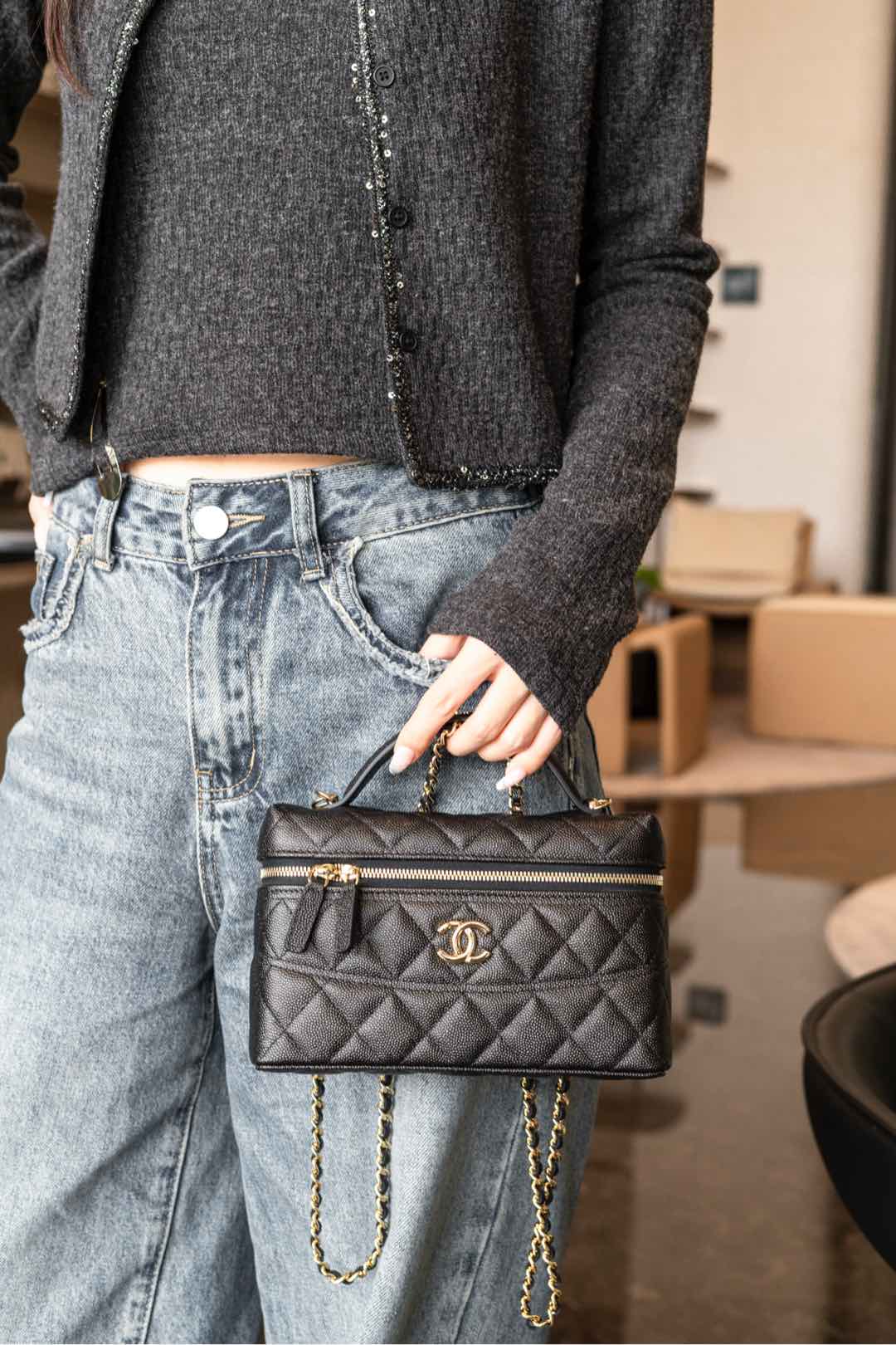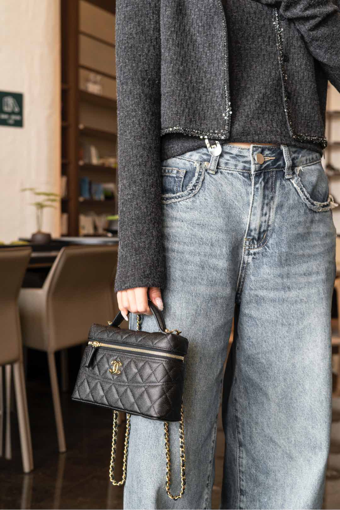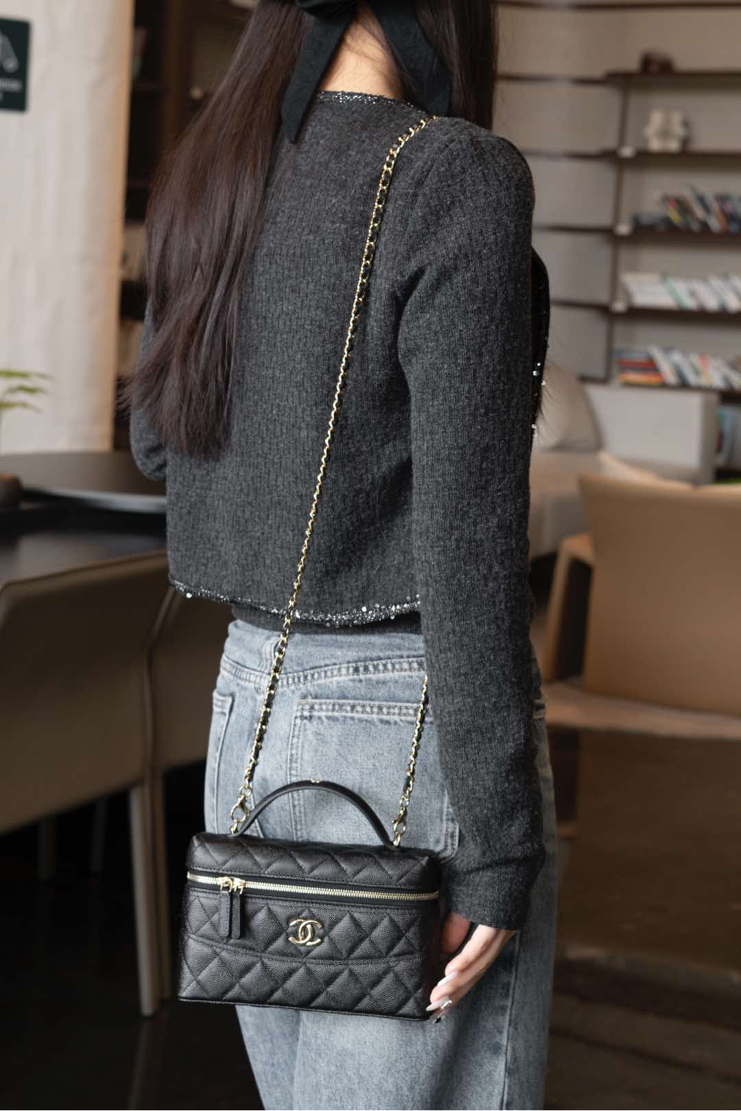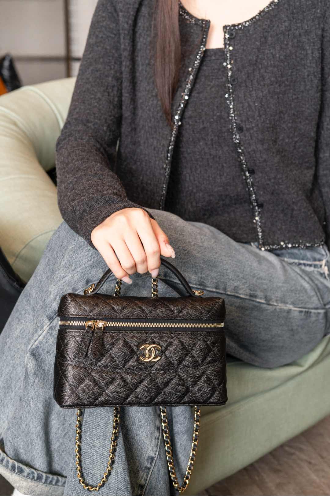 𝐂𝐡𝐚𝐧𝐞𝐥 𝟐𝟓𝐜 手柄盒子包 荔枝牛 米白👜这款包包的颜值是受到一致认可的好看✨出道即绝版~(目前柜柜已经停售、产量也是少得可怜) 整包采用荔枝牛皮非常硬挺、拿在手上手感很轻巧✔️ 又轻盈又耐磨、谁不爱呢🤩