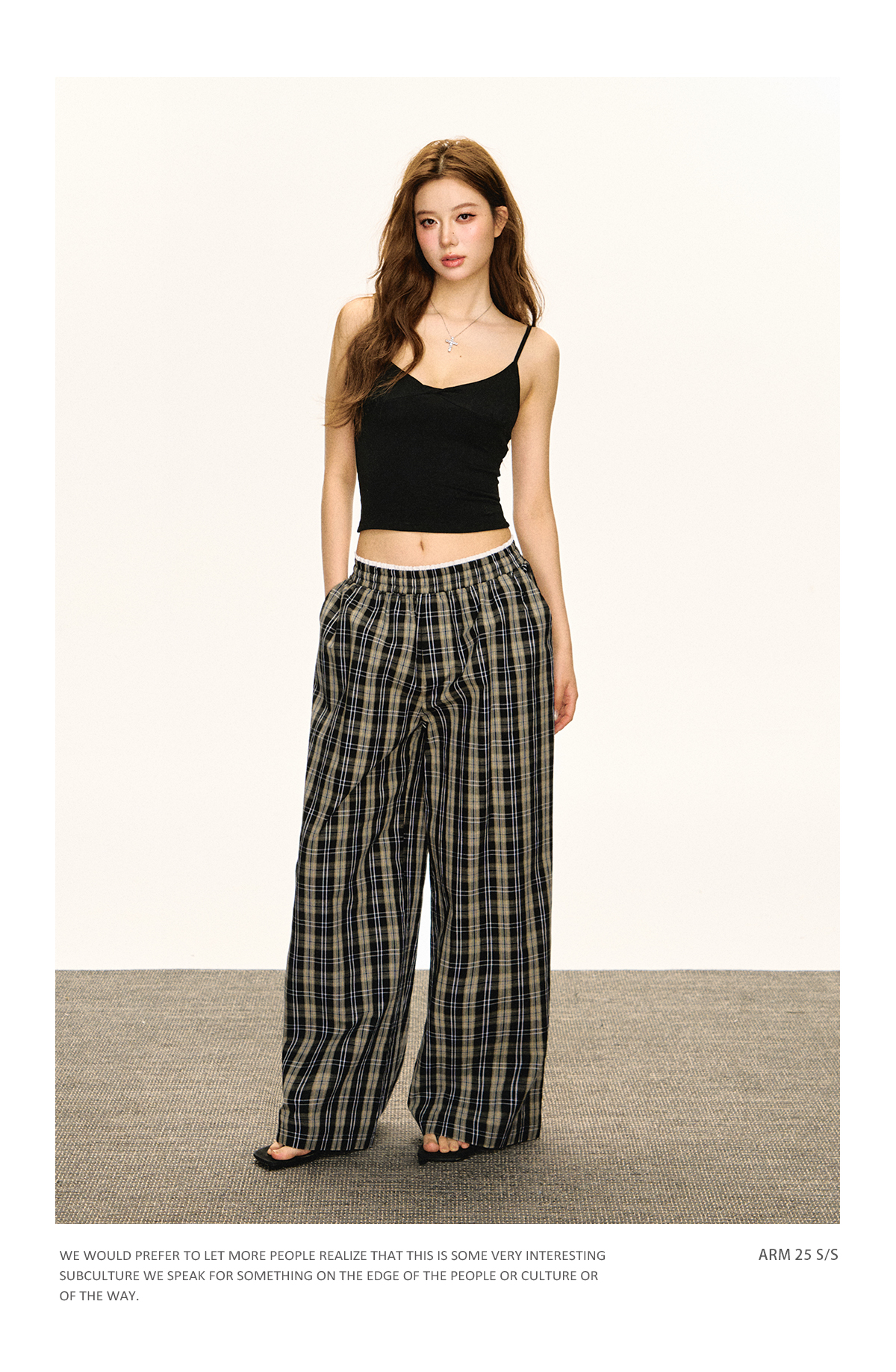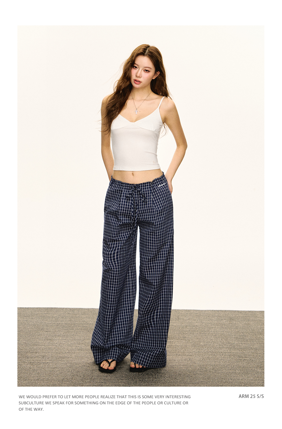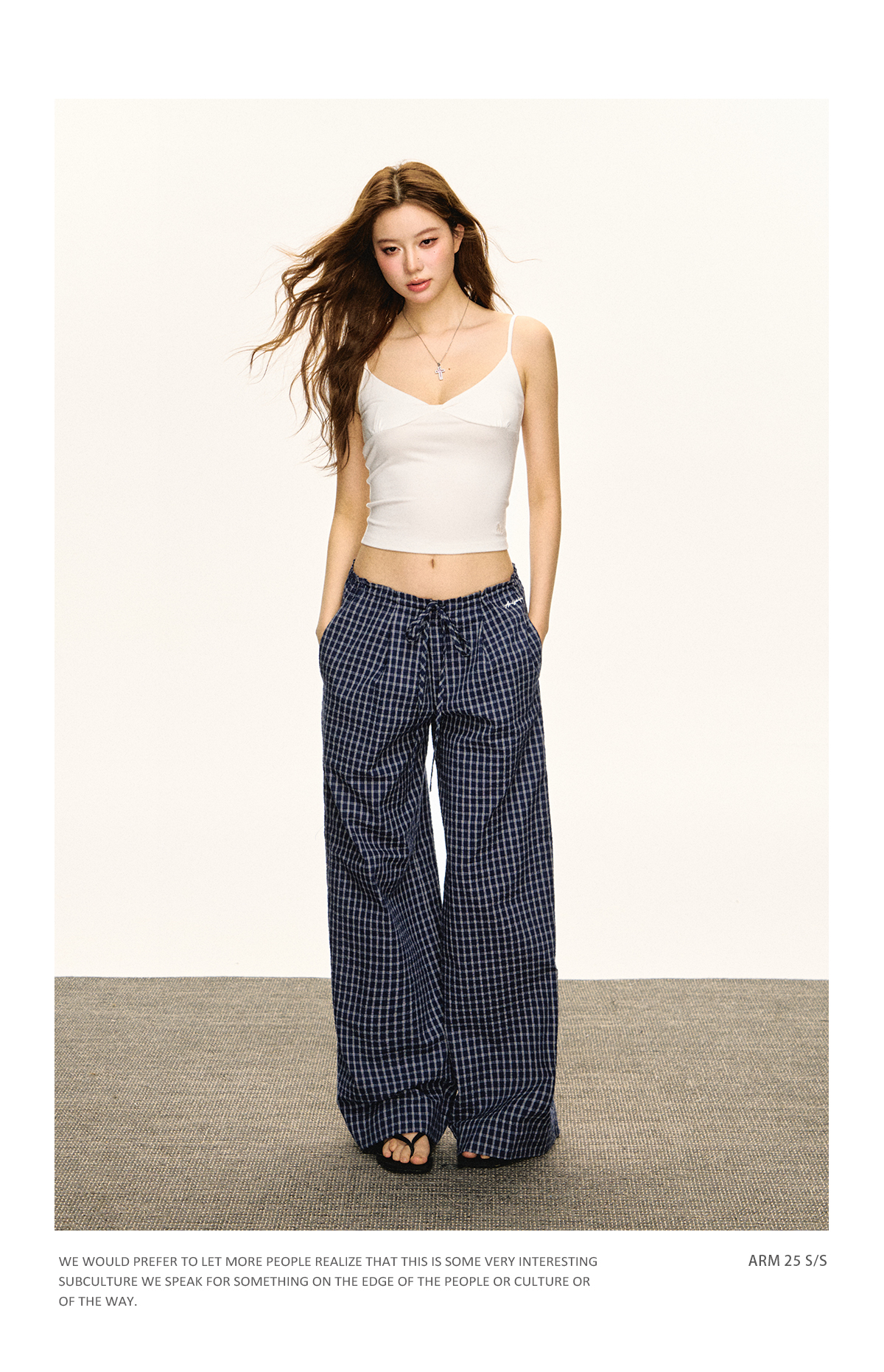 Ariseism 美式复古慵懒风条纹宽松休闲裤女夏季新款低腰阔腿裤子