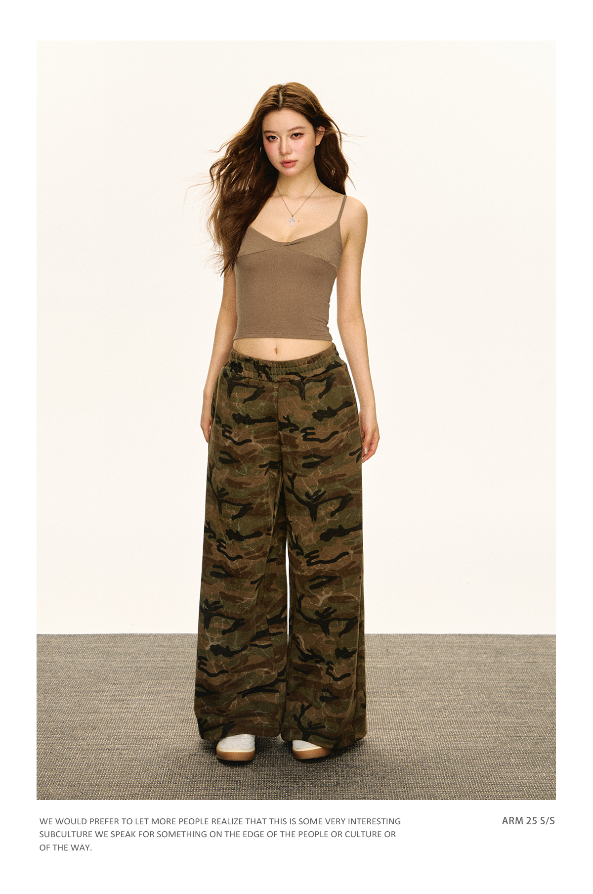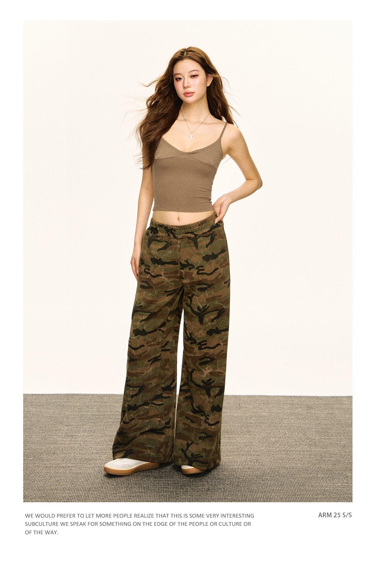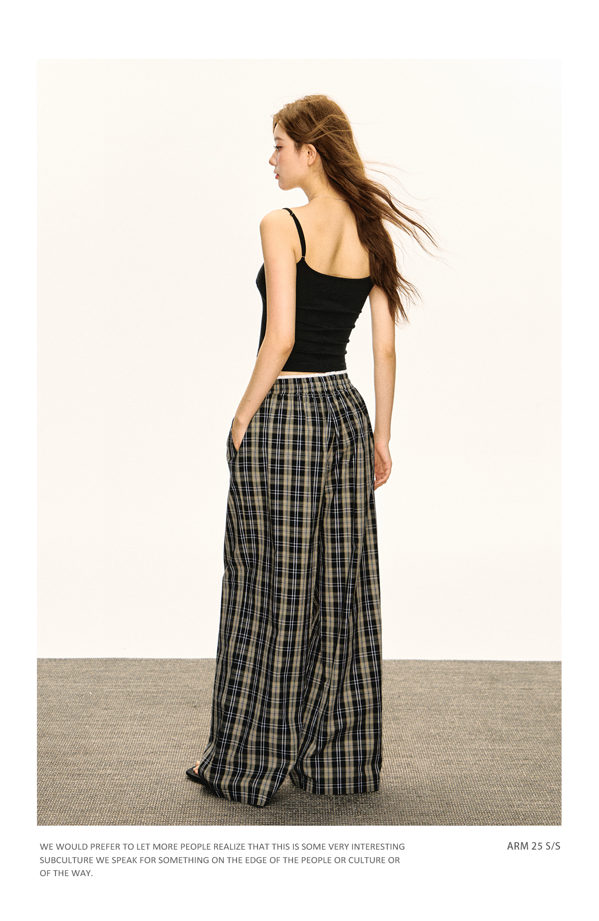 Ariseism 美式复古慵懒风条纹宽松休闲裤女夏季新款低腰阔腿裤子