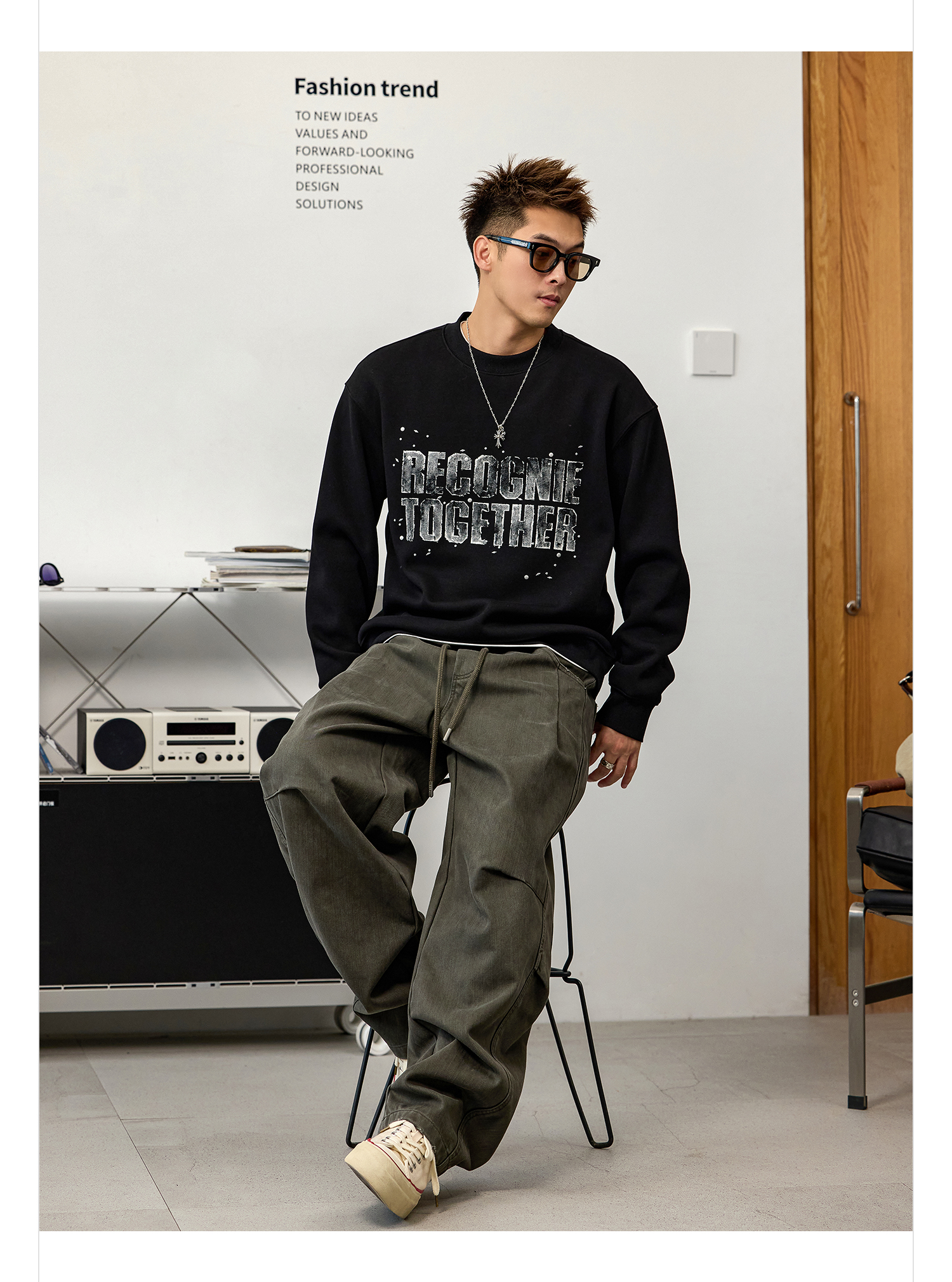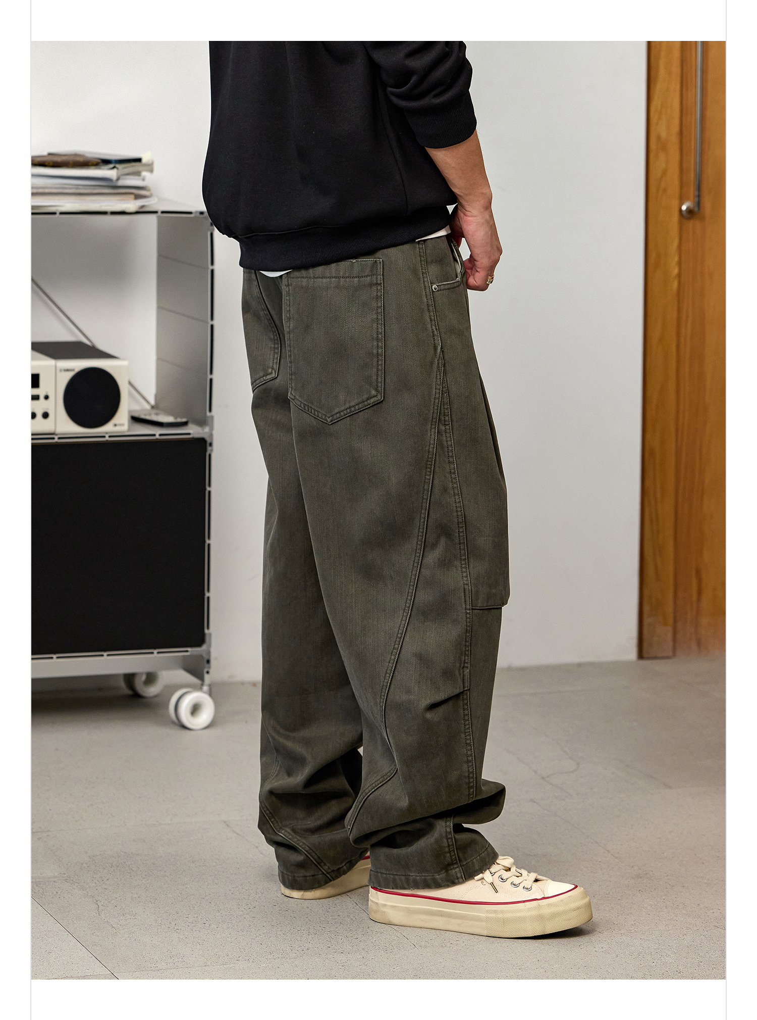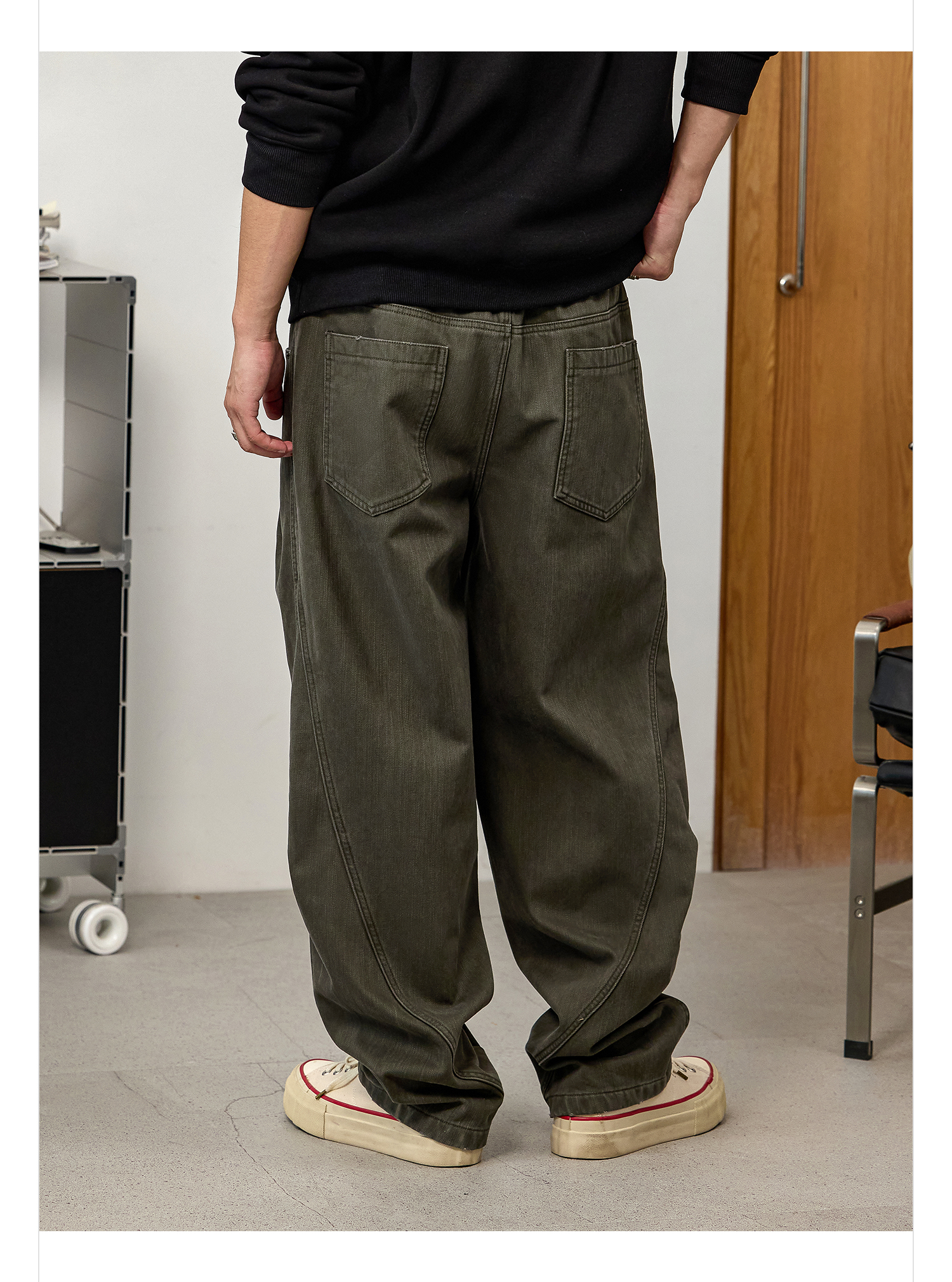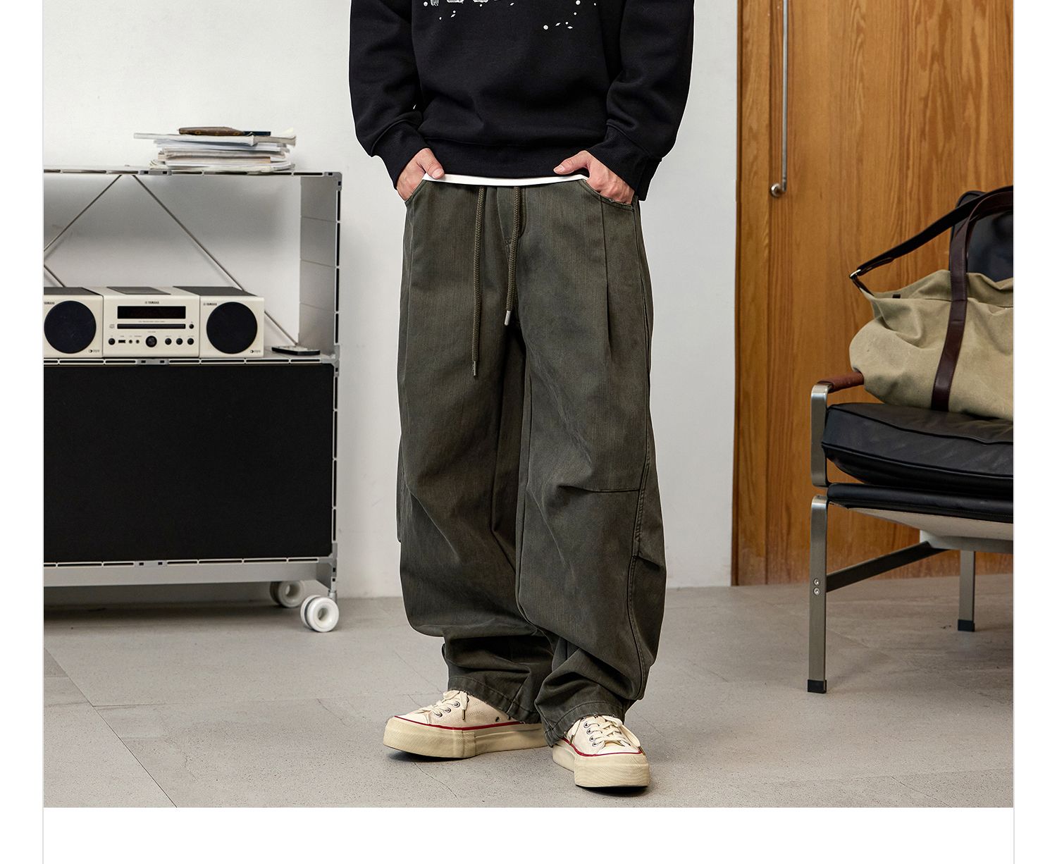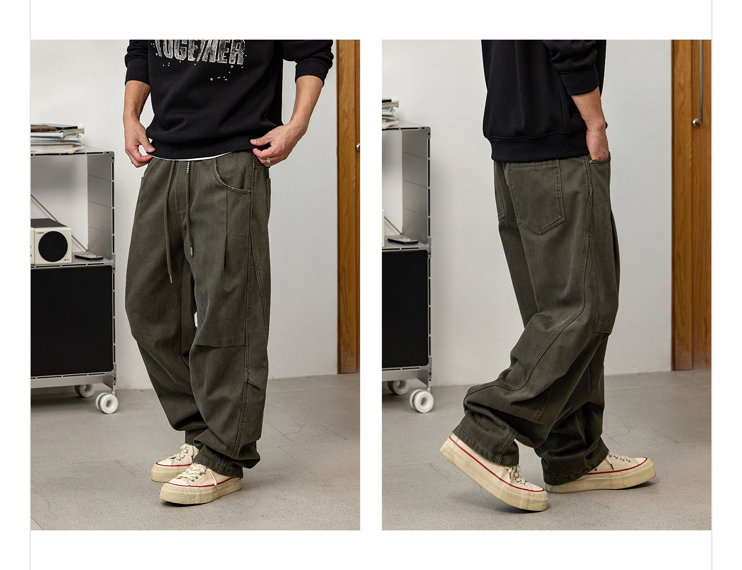 徐太浪【立体裁剪 褶皱感】军绿色休闲裤男秋冬宽松直筒裤子长裤