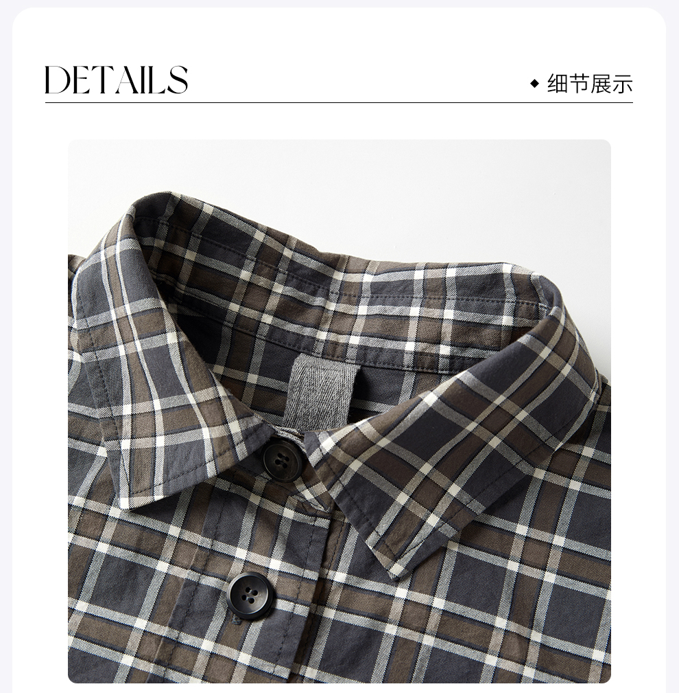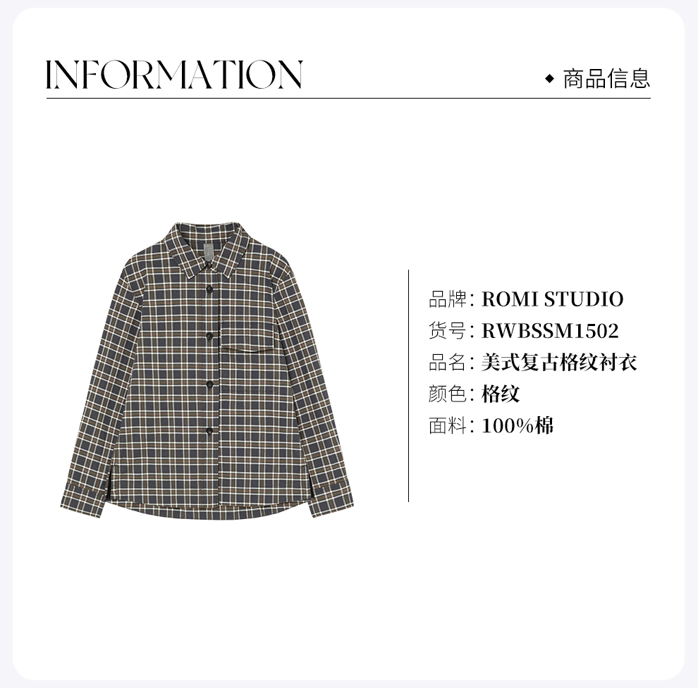ROMI STUDIO"美式复古"100%棉经典格纹翻领宽松衬衫 RWBSSM1502