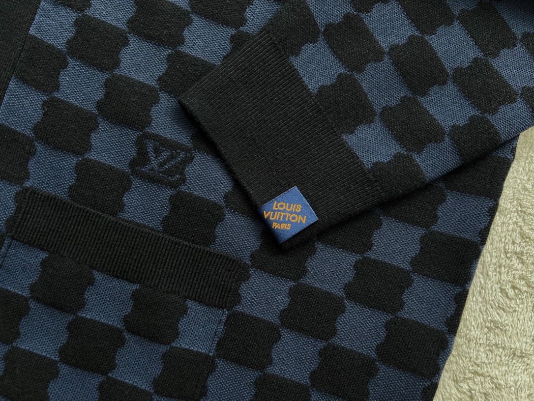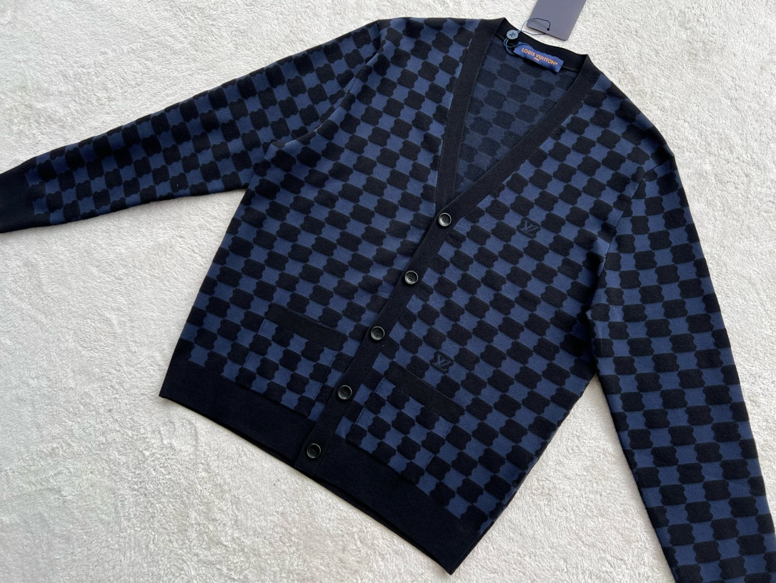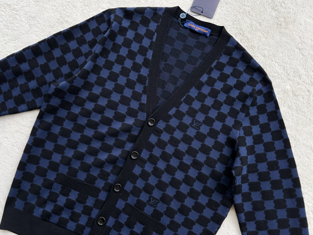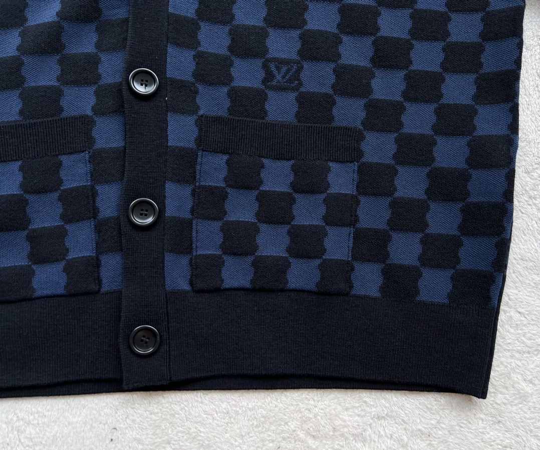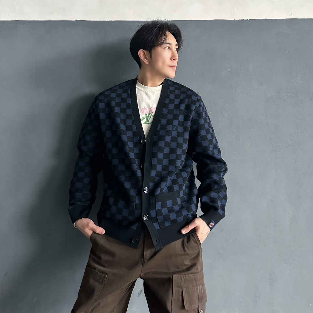 驴家 新款暗蓝棋盘格针织开衫外套(JN)