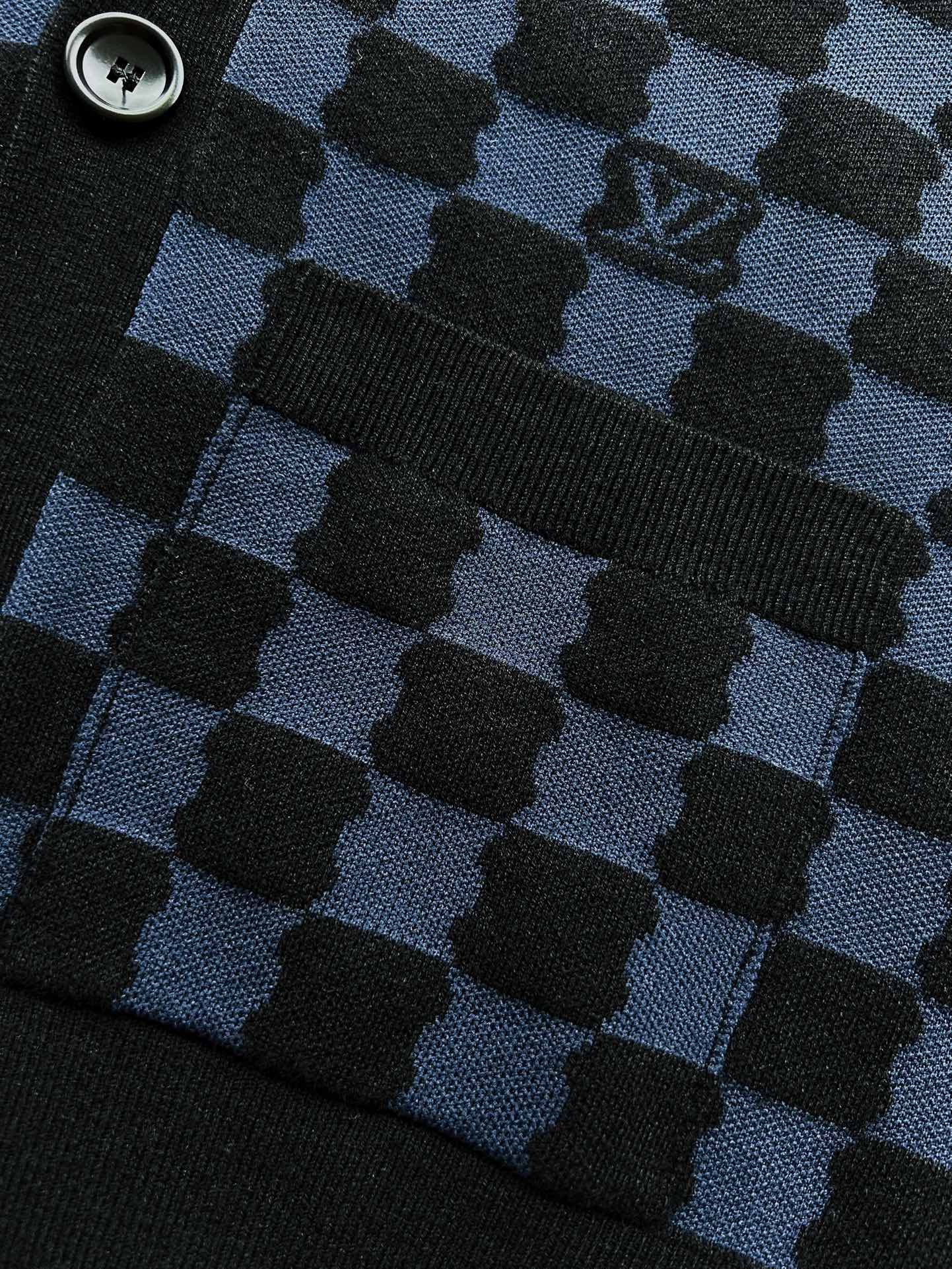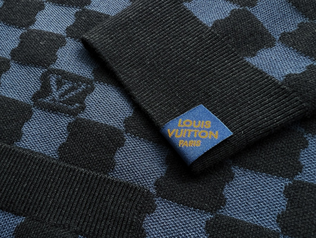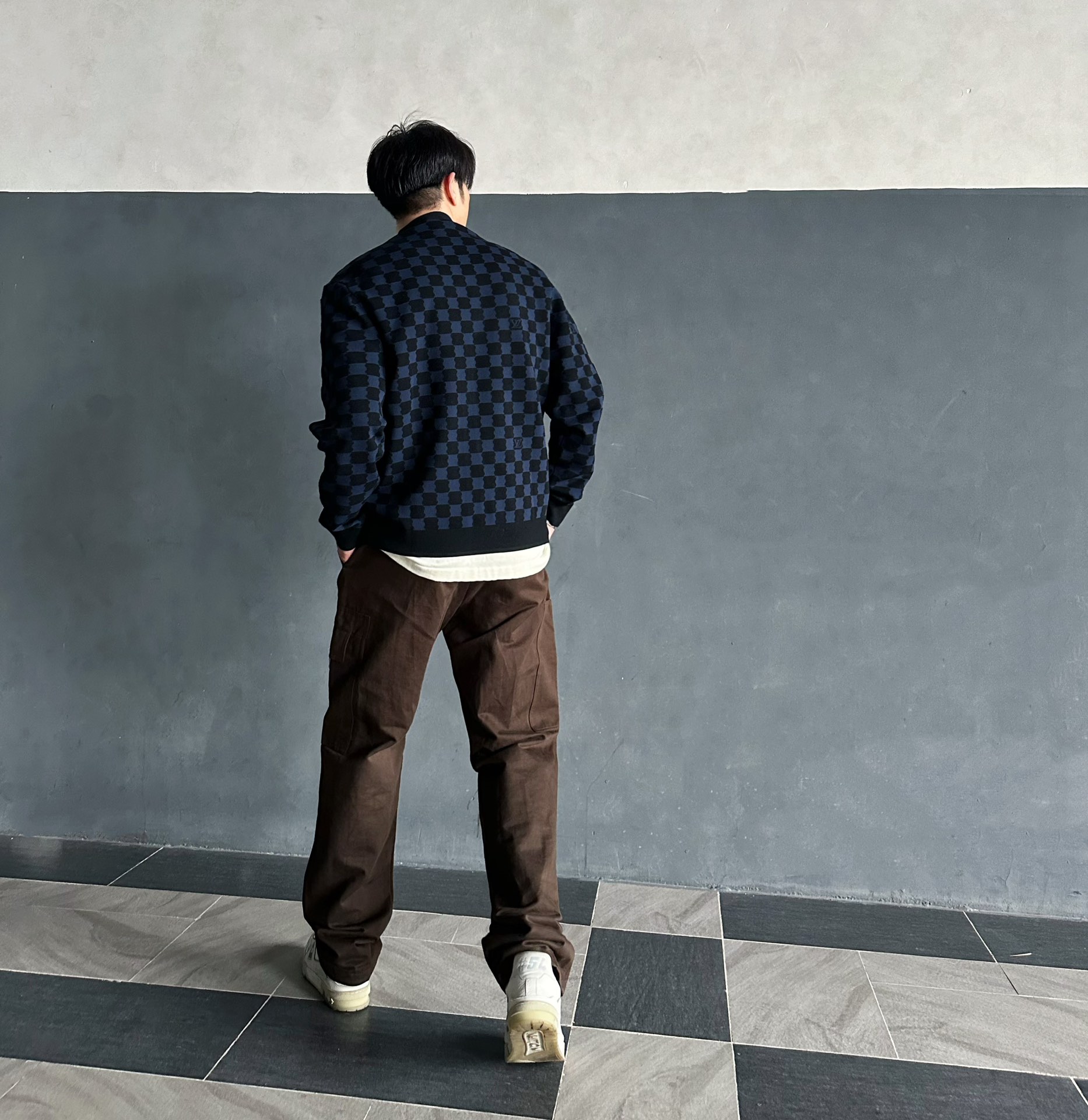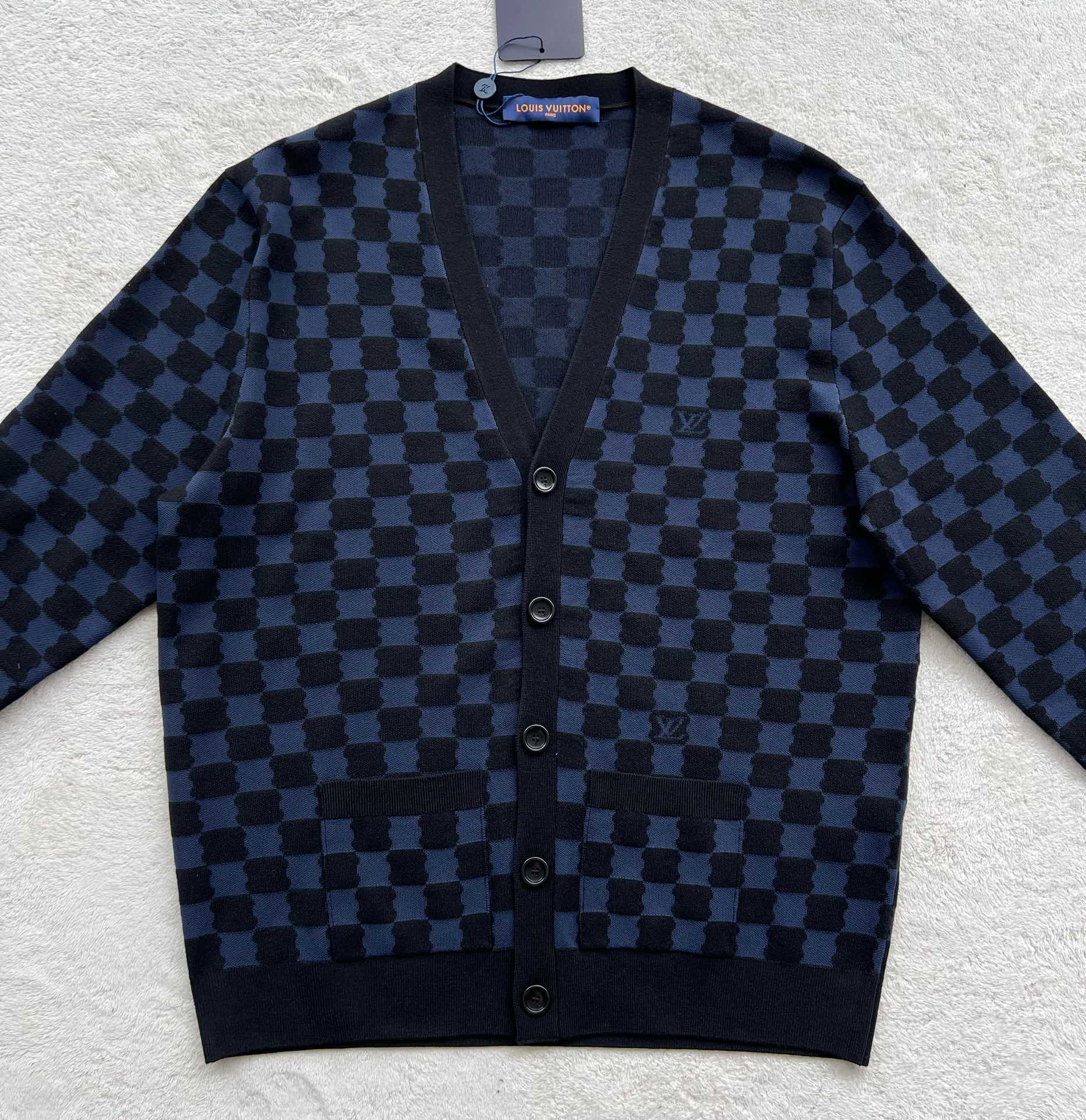 驴家 新款暗蓝棋盘格针织开衫外套(JN)