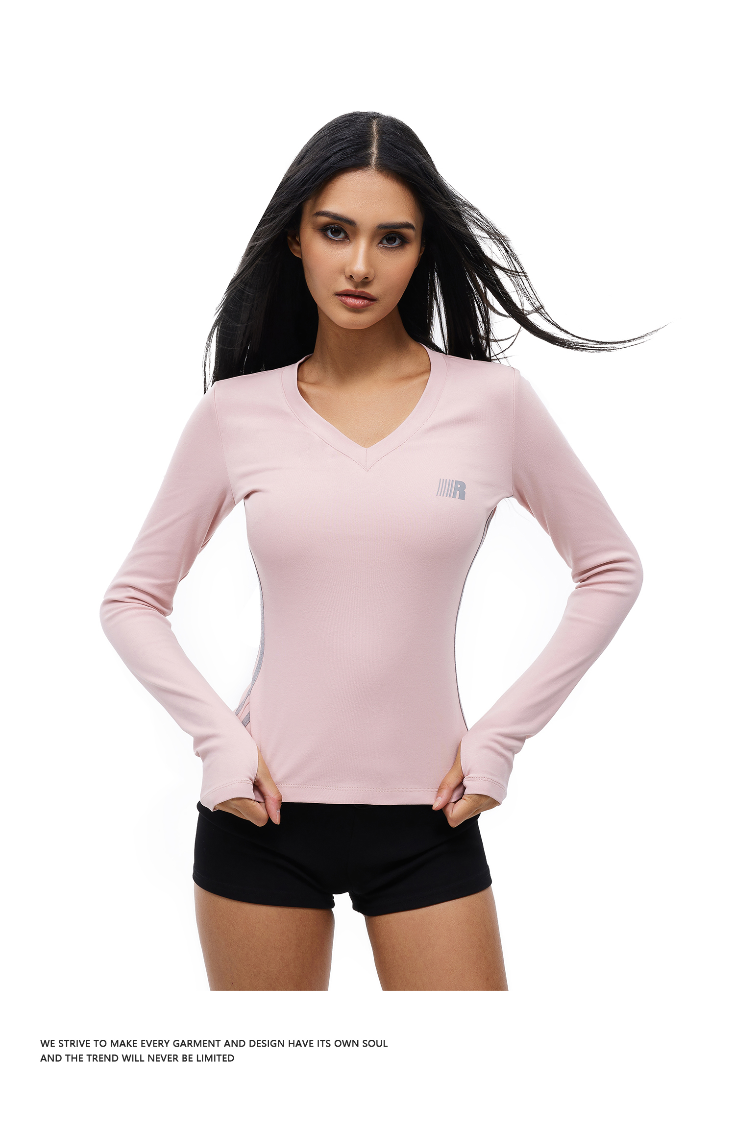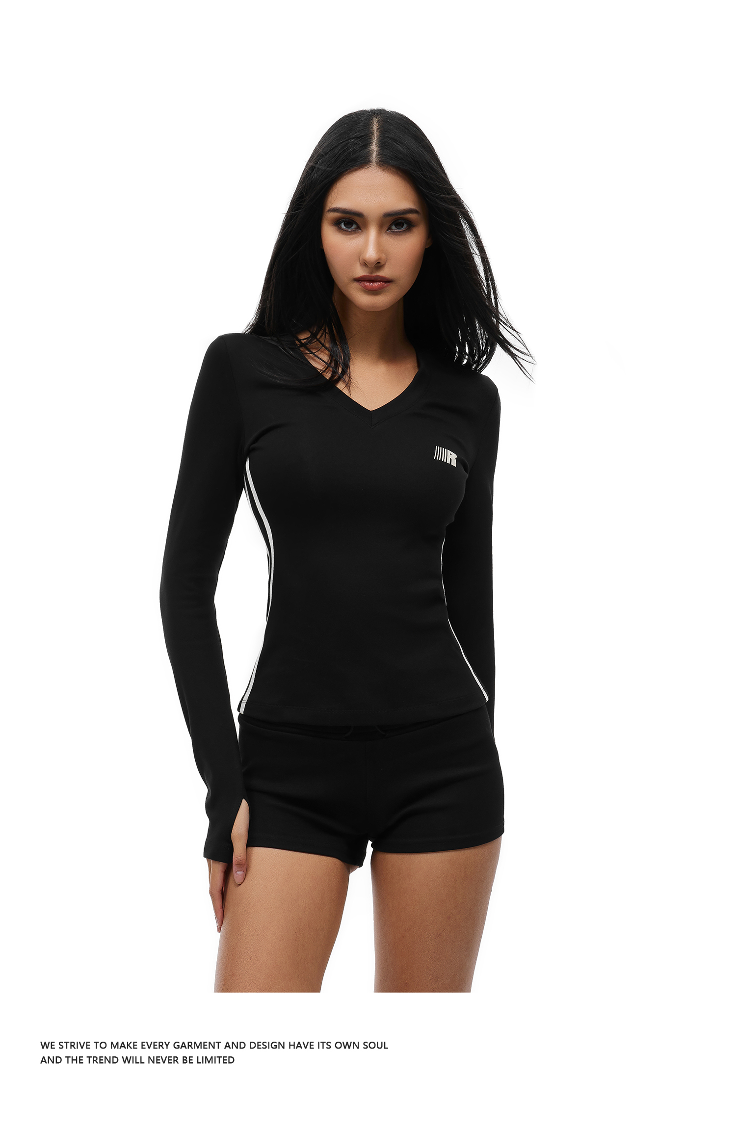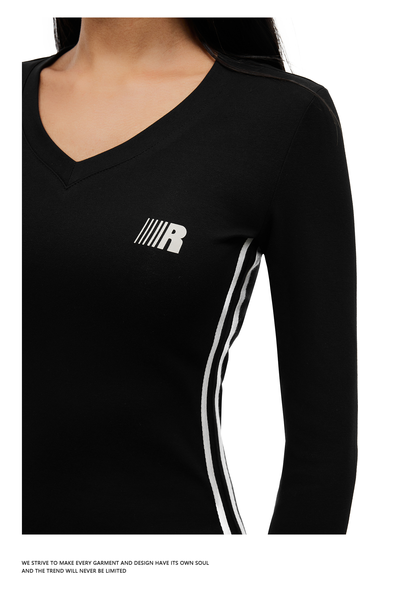 FDR官方店 R字V领织带辣妹运动长袖t恤女春季美式修身显瘦上衣女