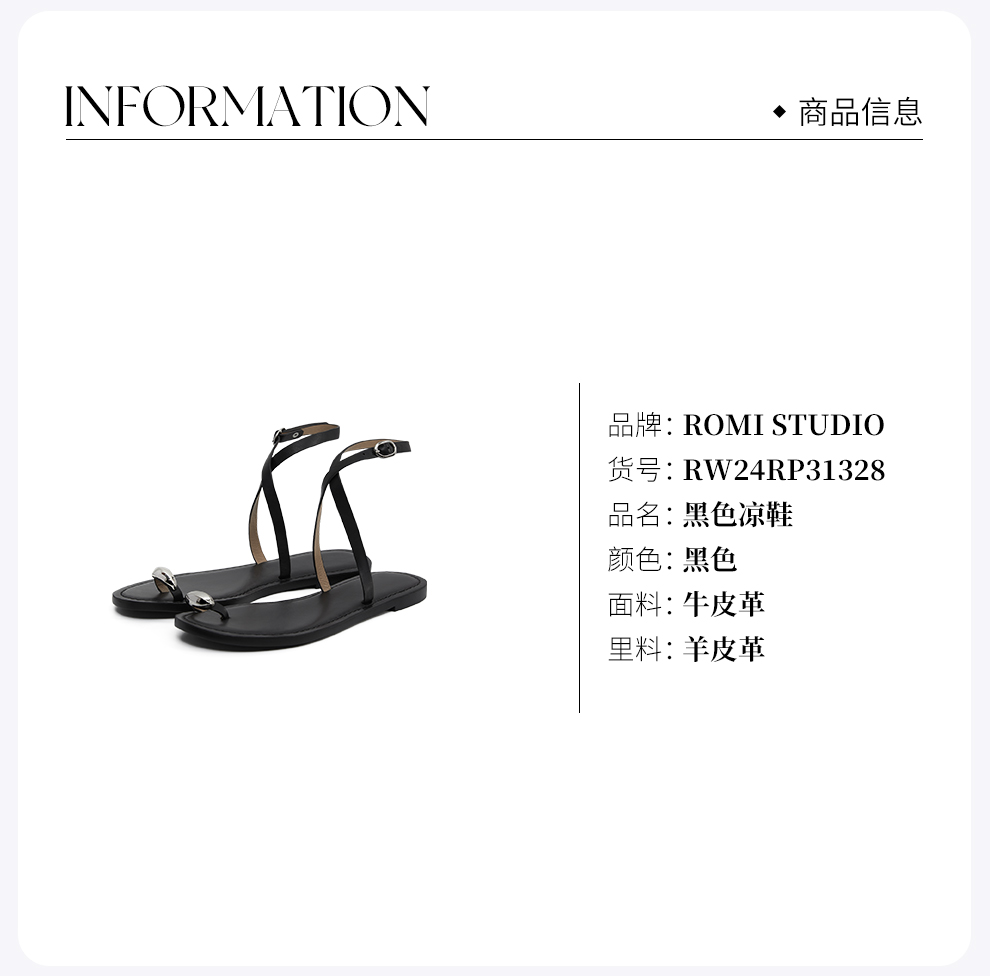 ROMI STUDIO“罗马假日”牛皮拼羊皮套趾平底休闲凉鞋 RW24RP31328