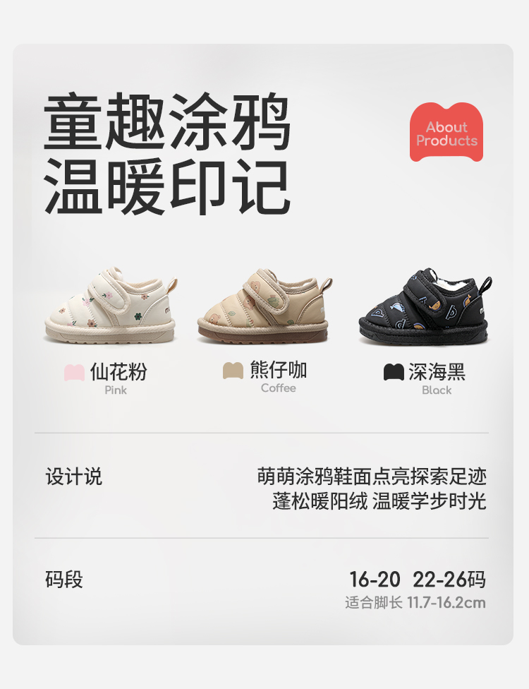 牧童 2025冬季新款加绒卡通学步鞋儿童保暖防滑机能鞋宝宝步前棉高帮鞋