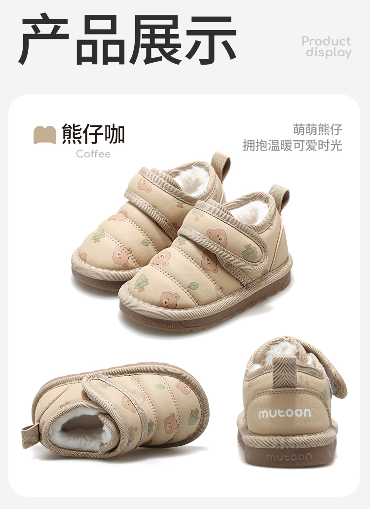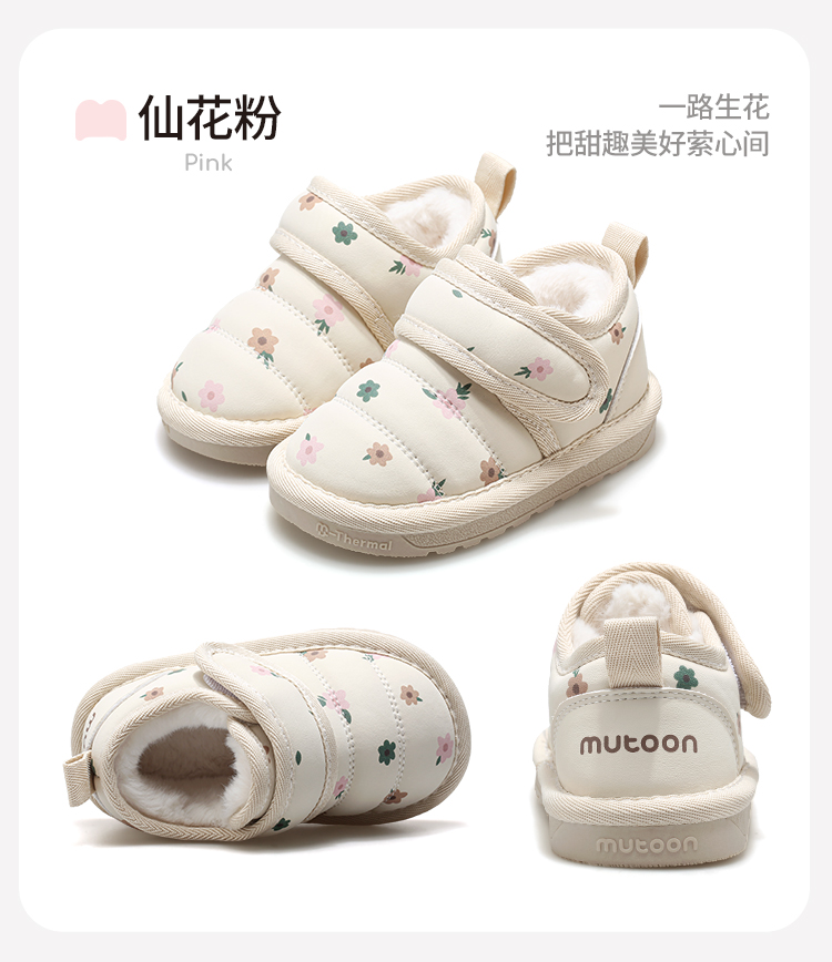 牧童2025冬季新款学步鞋宝宝保暖加绒棉鞋小蘑菇卡通儿童机能鞋子