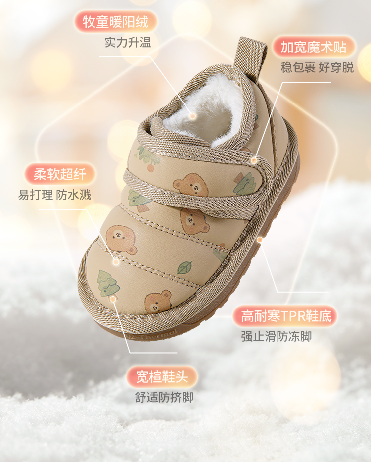 牧童2025冬季新款宝宝雪地靴防滑加绒儿童棉鞋保暖加绒学步机能鞋