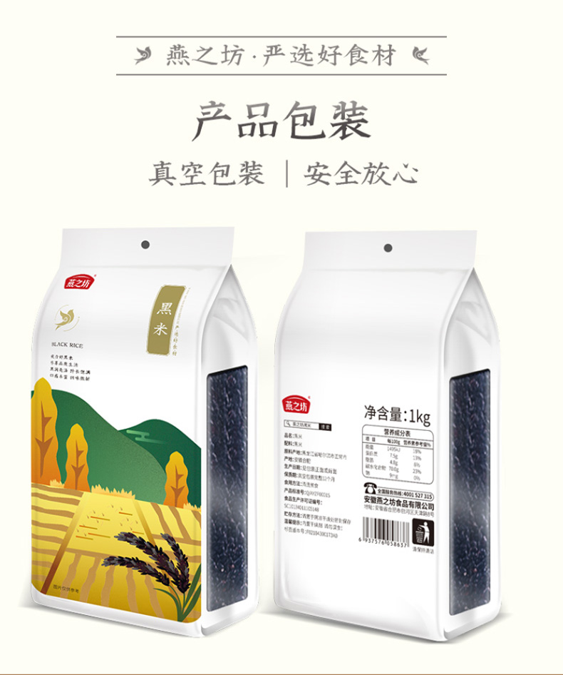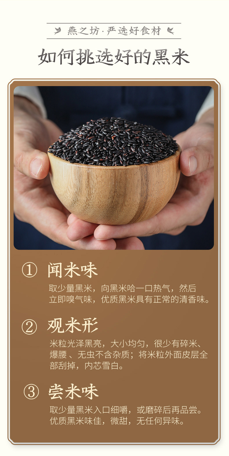燕之坊 东北黑土地黑米1kg 正宗东北黑米 真空包装 人工种植 自然生长 产地精选 东北五谷杂粮米 可煮粥做饭做糕点