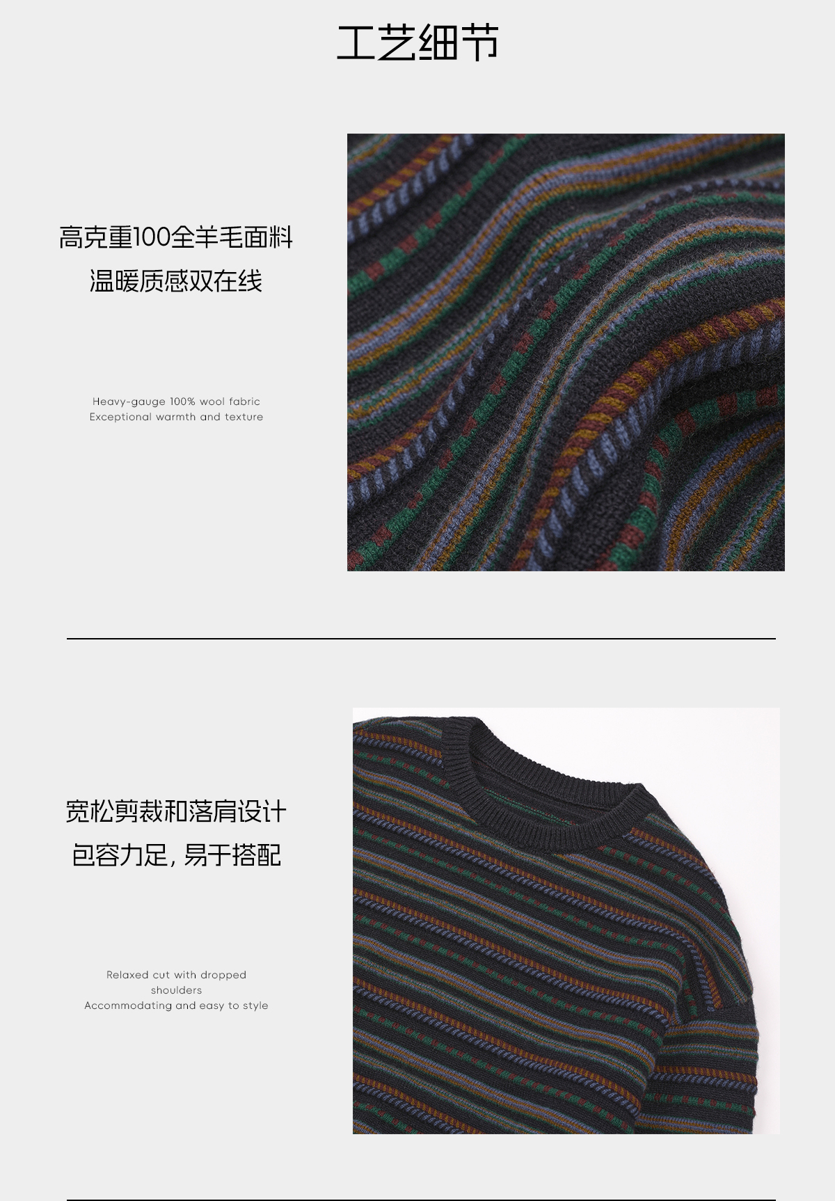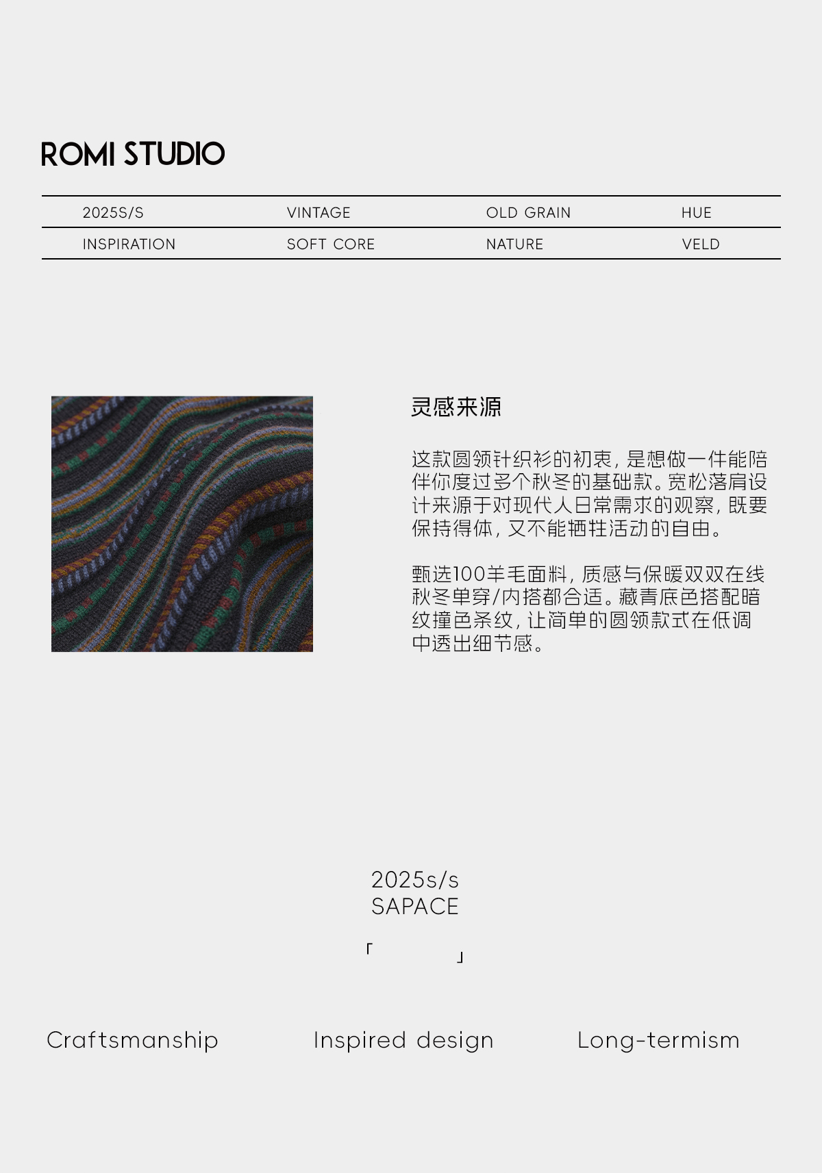 ROMI STUDIO“冬日松弛”100羊毛条纹针织挺括套头毛衣RWCWSU7412