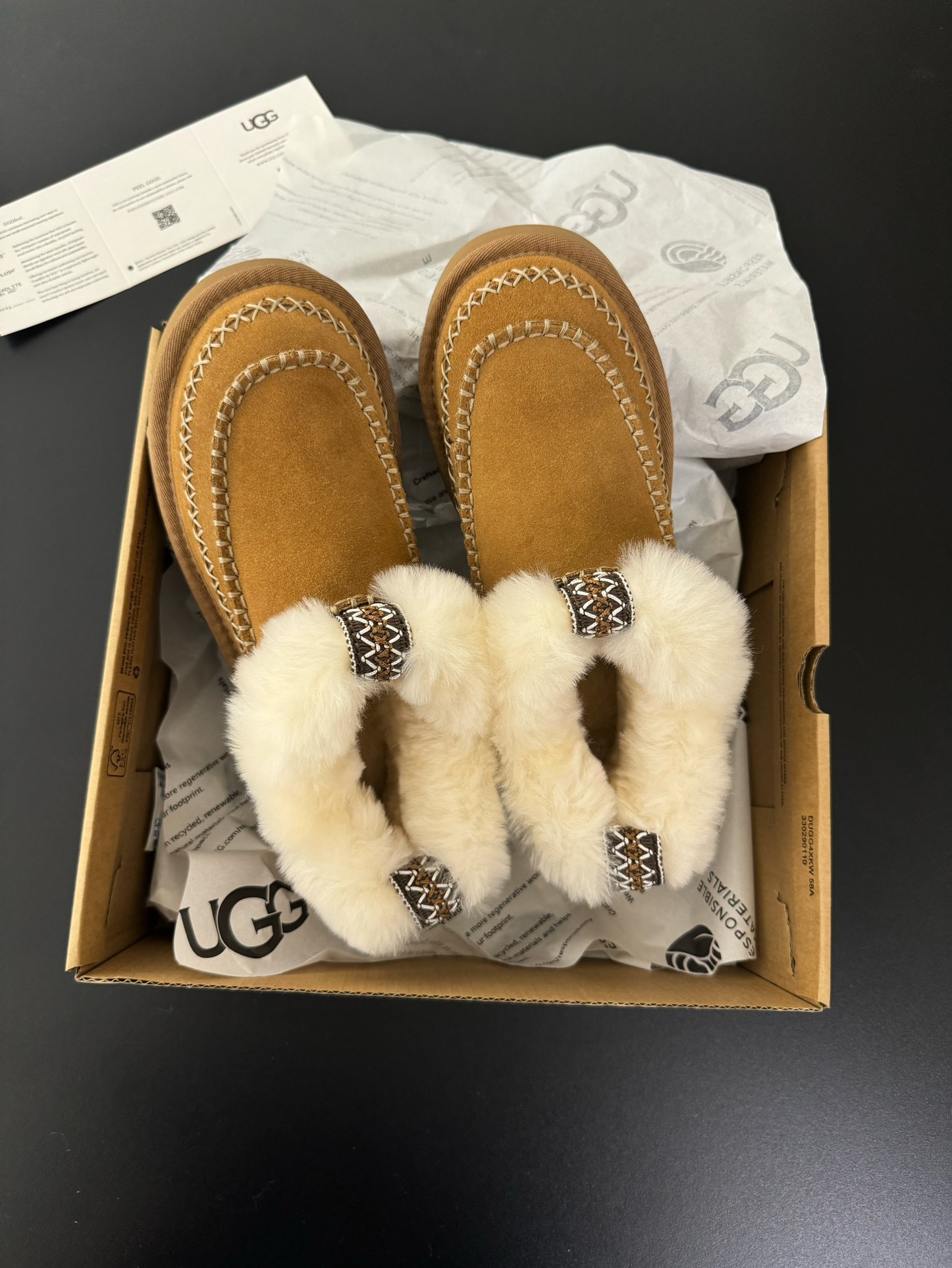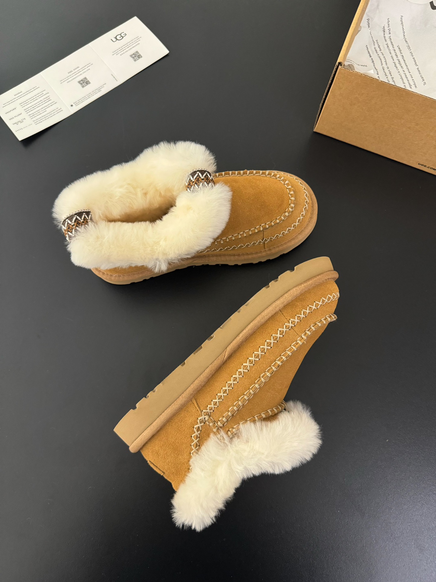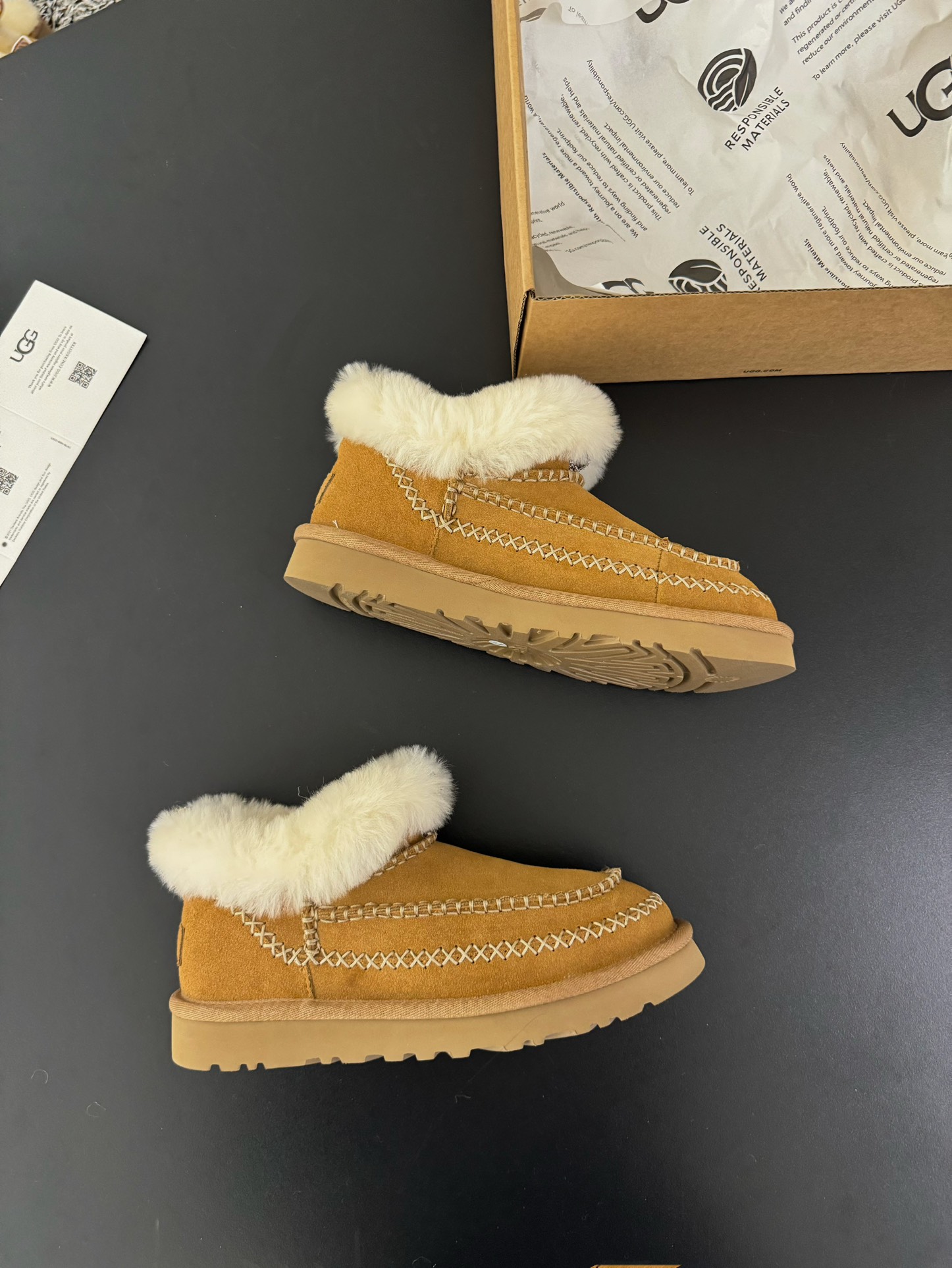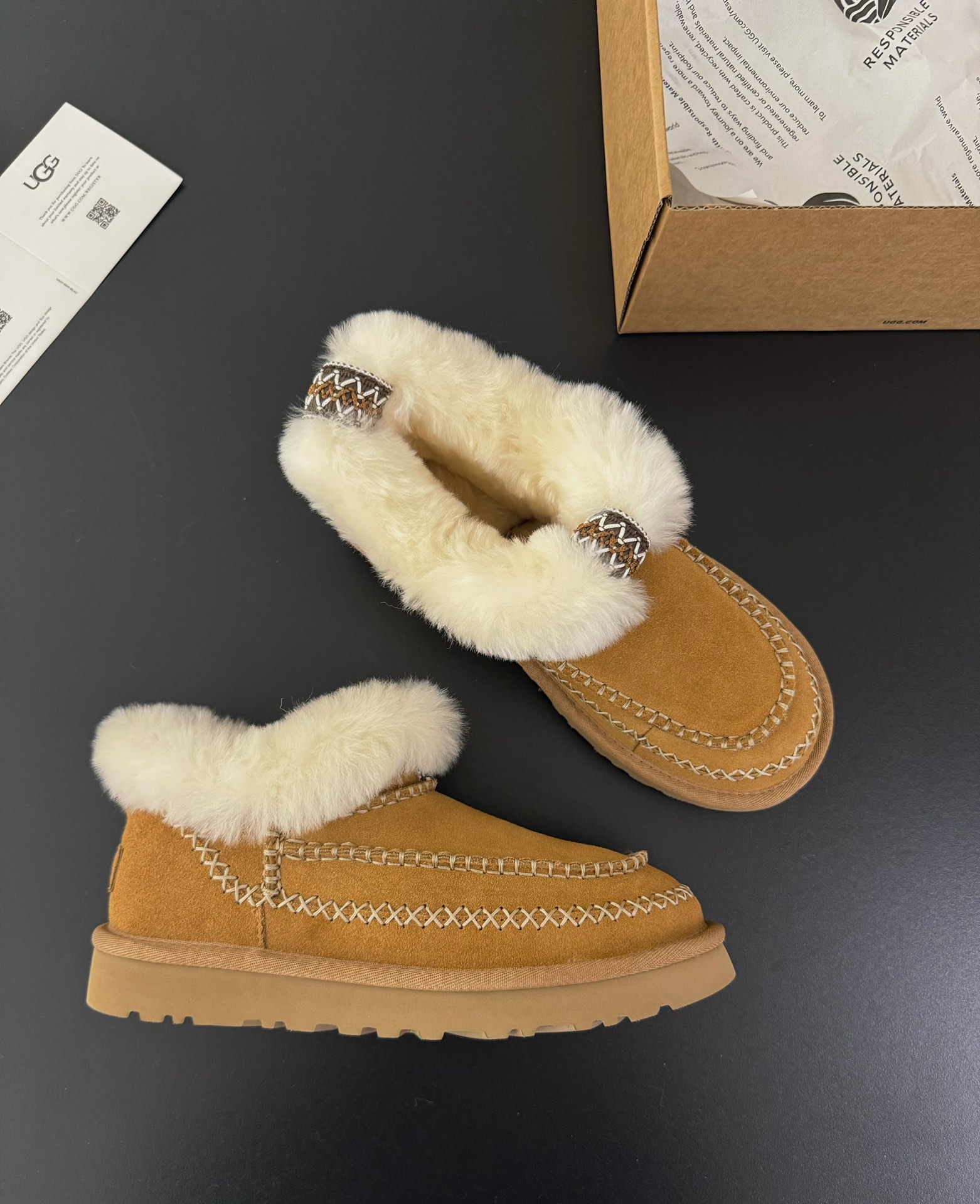 UGG 阿尔派浅口雪地靴。代购级品质牛皮+羊皮毛一体。双层结构不变型 大底对版带点点的eva大底 码数35-40。颜色:栗色 菜籽色