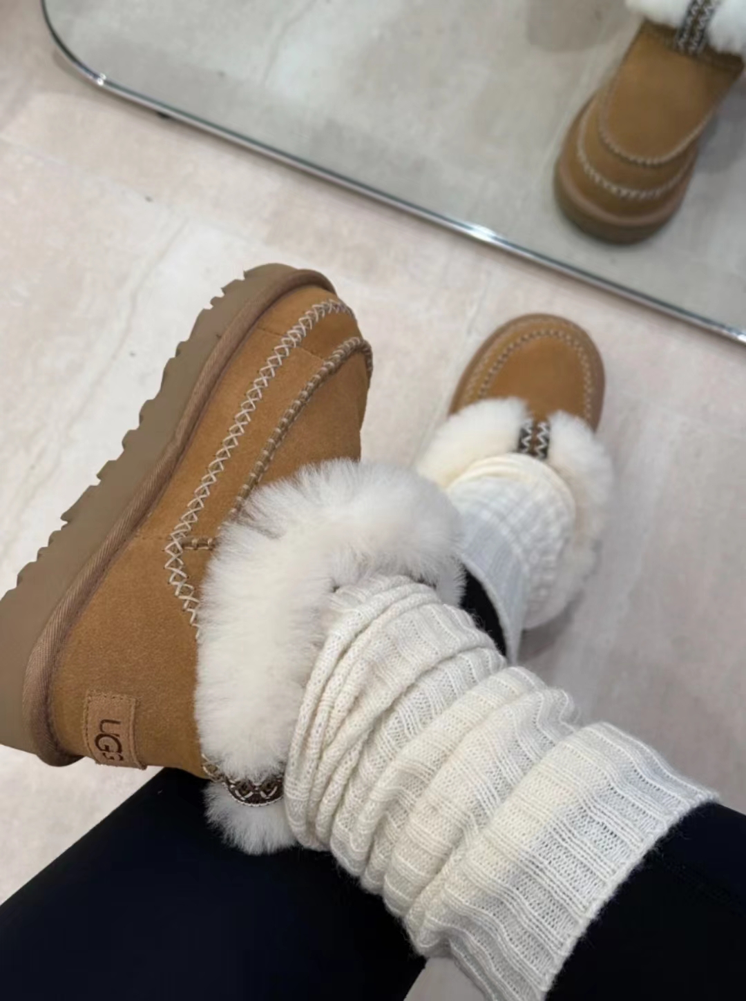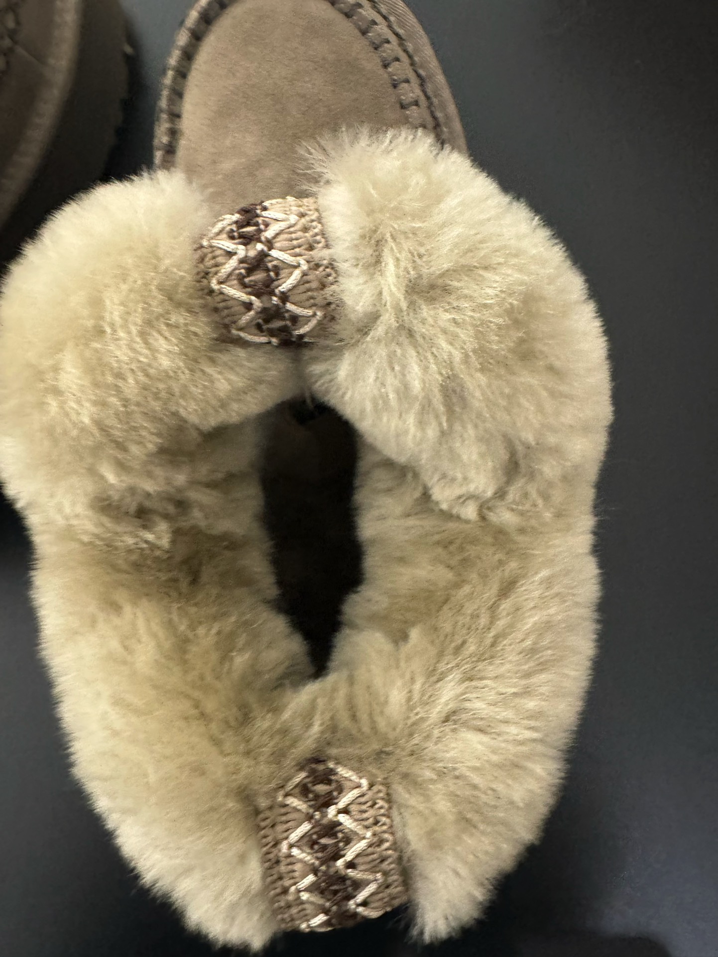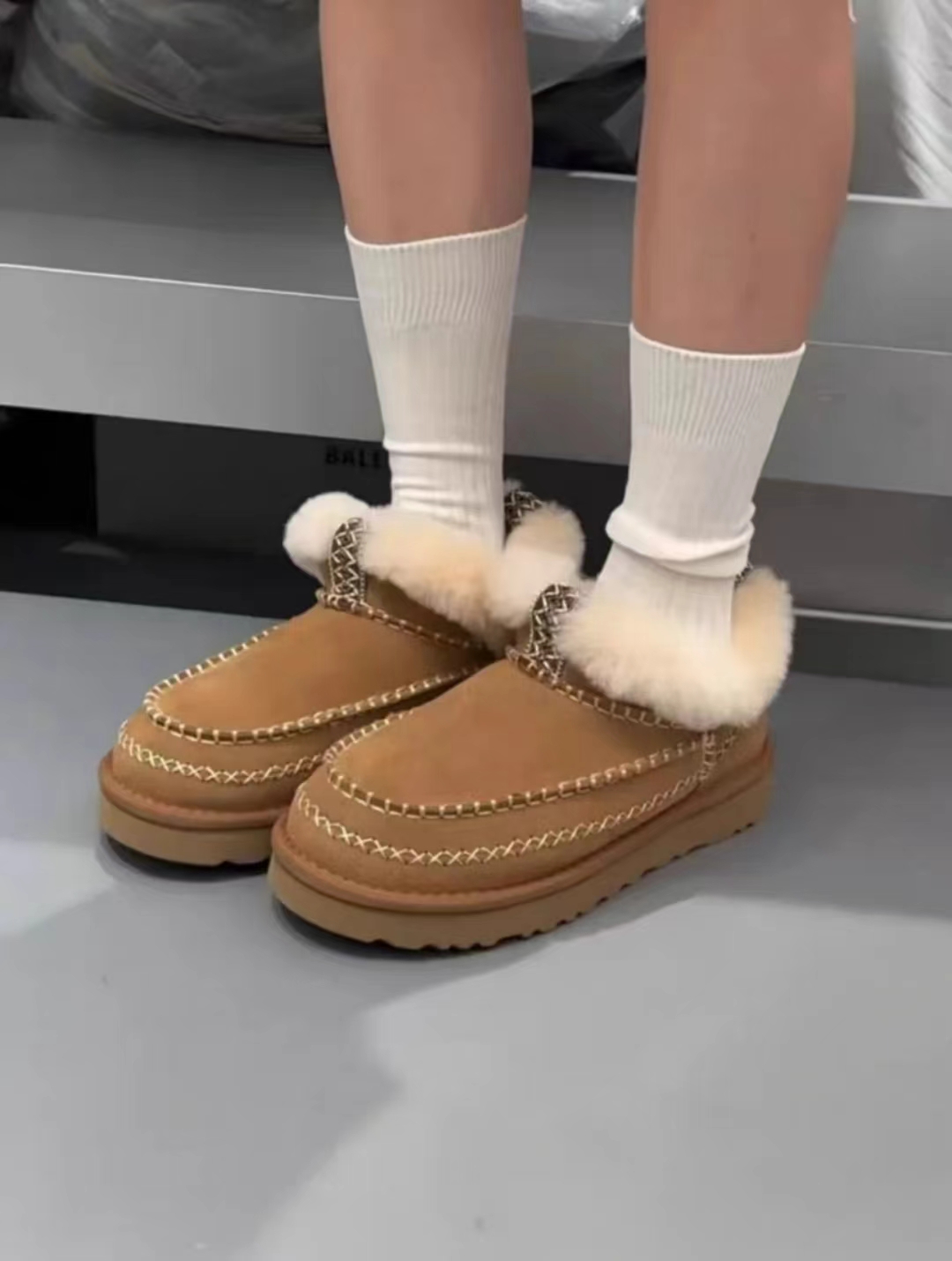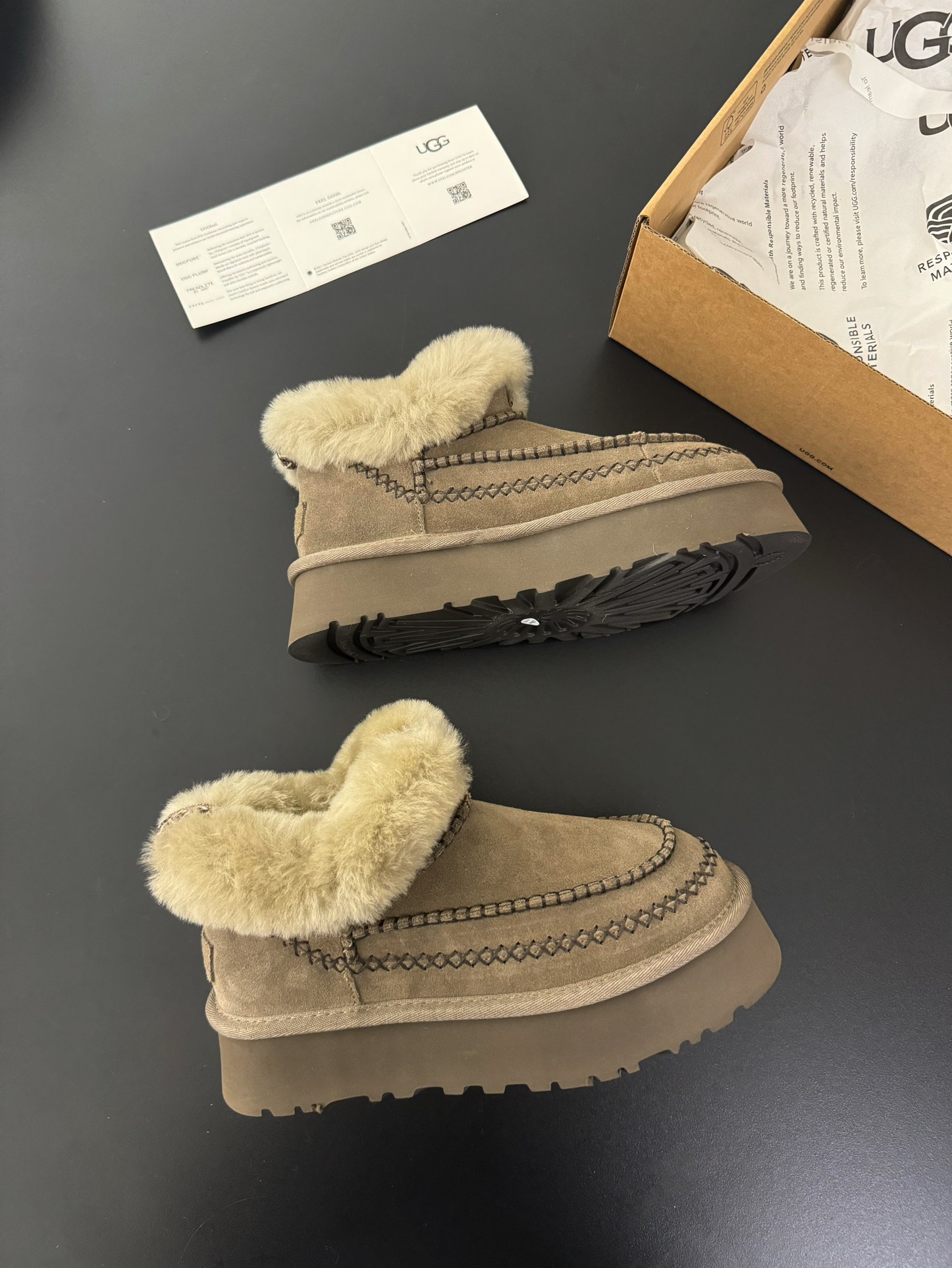 UGG 阿尔派浅口雪地靴。代购级品质牛皮+羊皮毛一体。双层结构不变型 大底对版带点点的eva大底 码数35-40。颜色:栗色 菜籽色