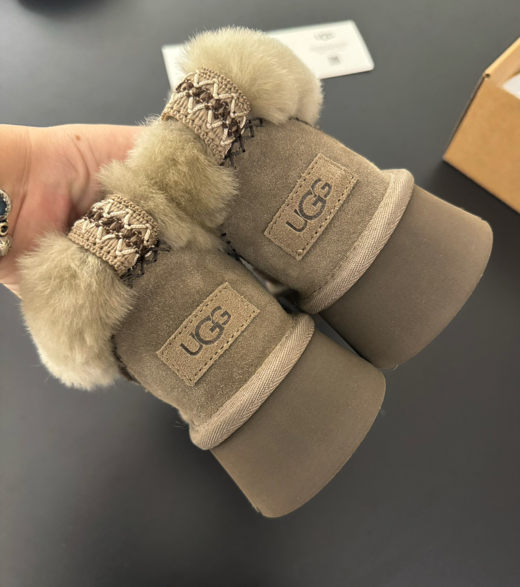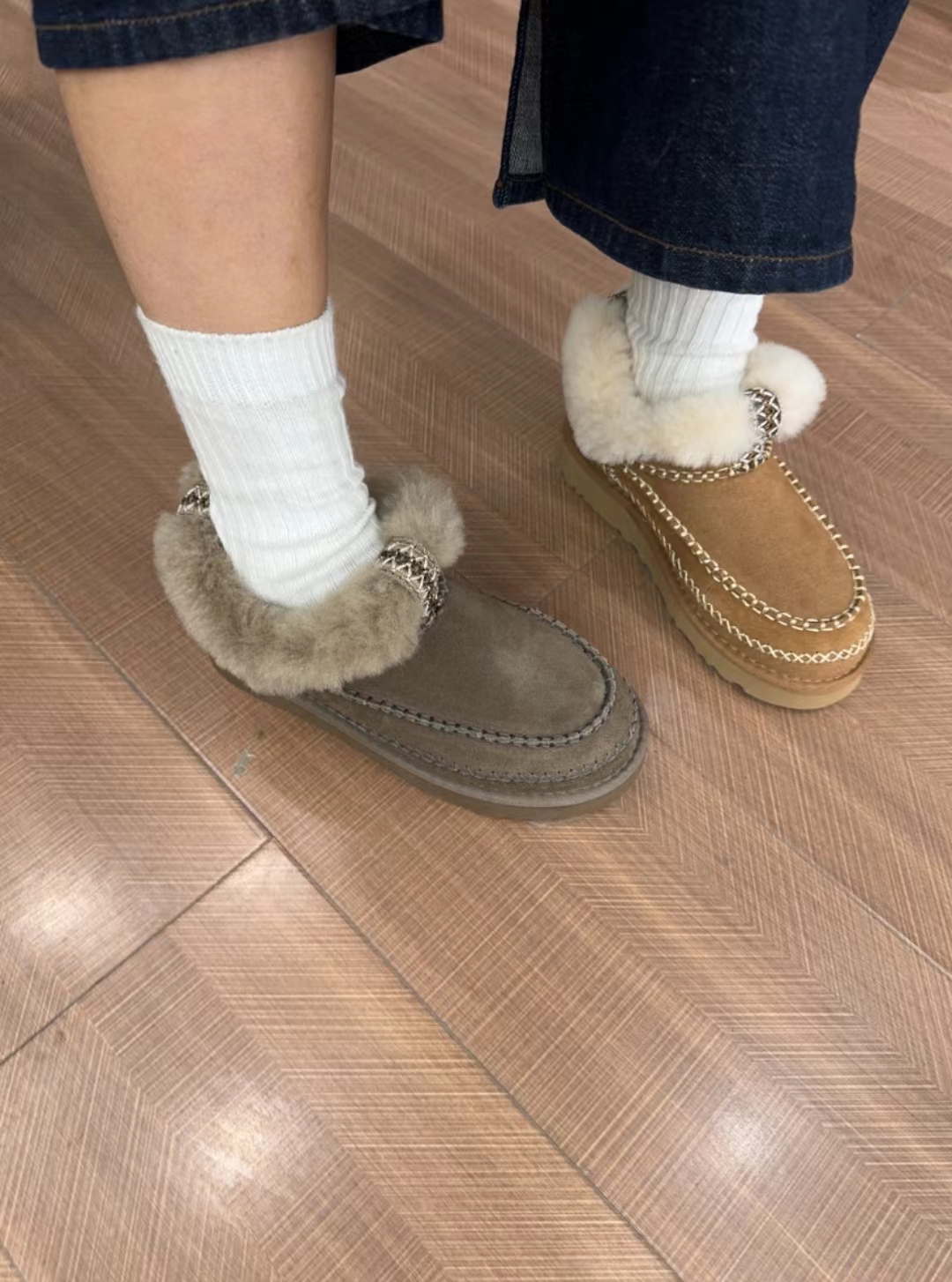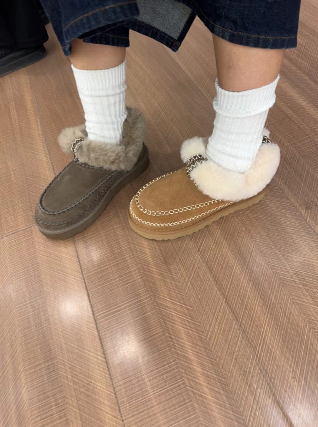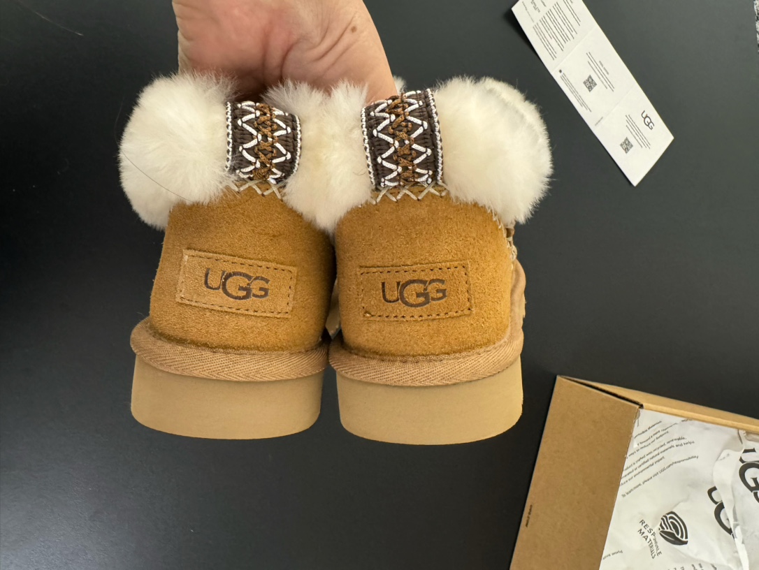 UGG 阿尔派浅口雪地靴。代购级品质牛皮+羊皮毛一体。双层结构不变型 大底对版带点点的eva大底 码数35-40。颜色:栗色 菜籽色