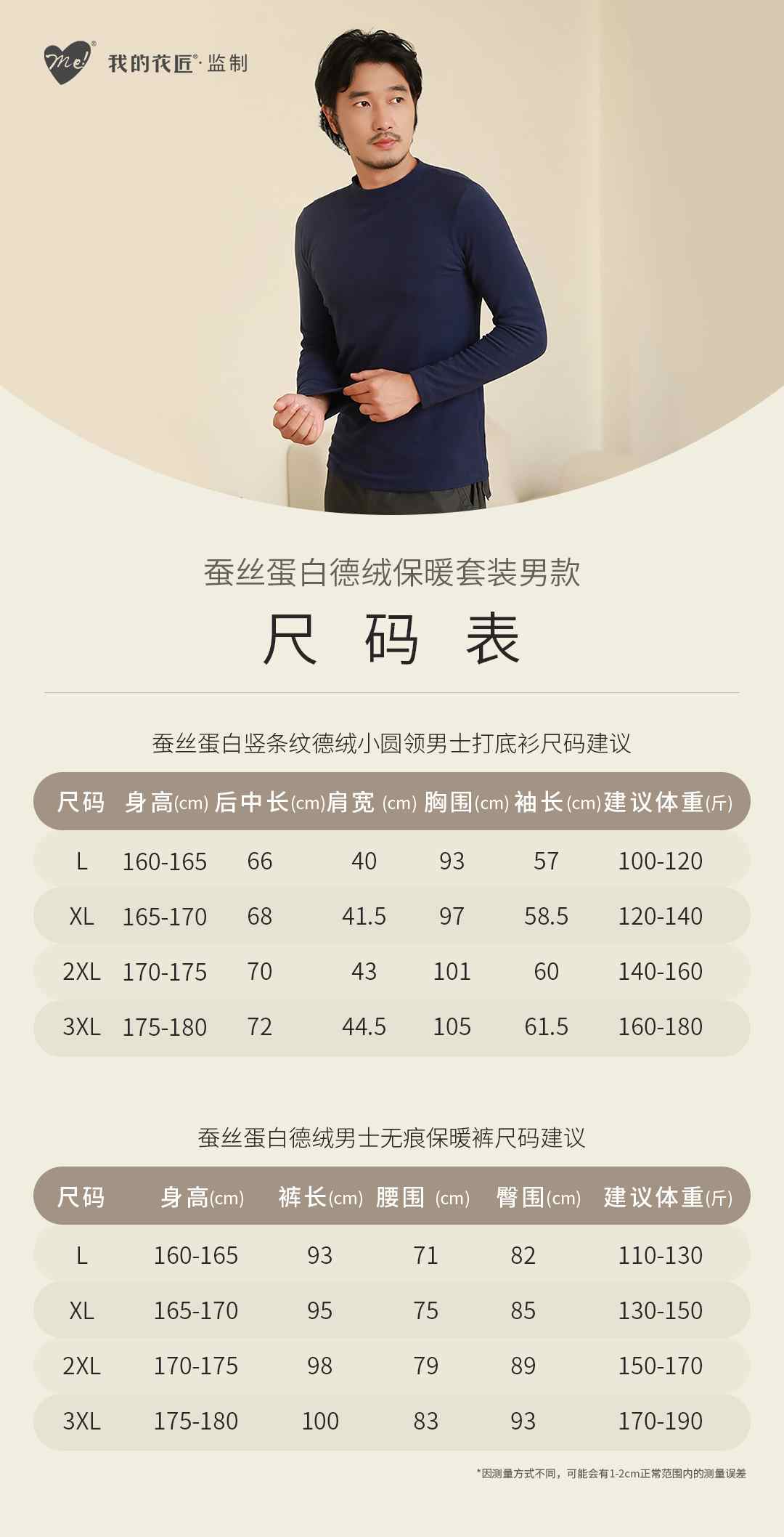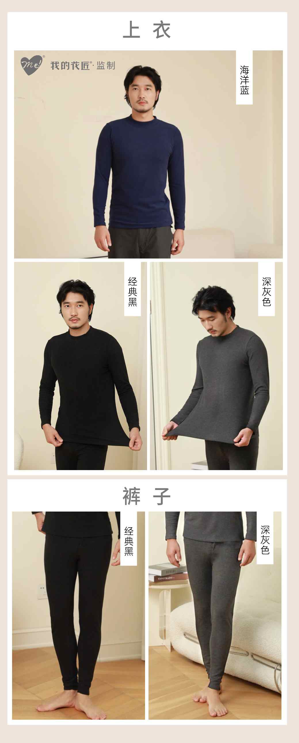 我的花匠 Me系列·蚕丝蛋白竖条纹德绒小圆领男士打底衫/蚕丝蛋白德绒男士无痕保暖裤