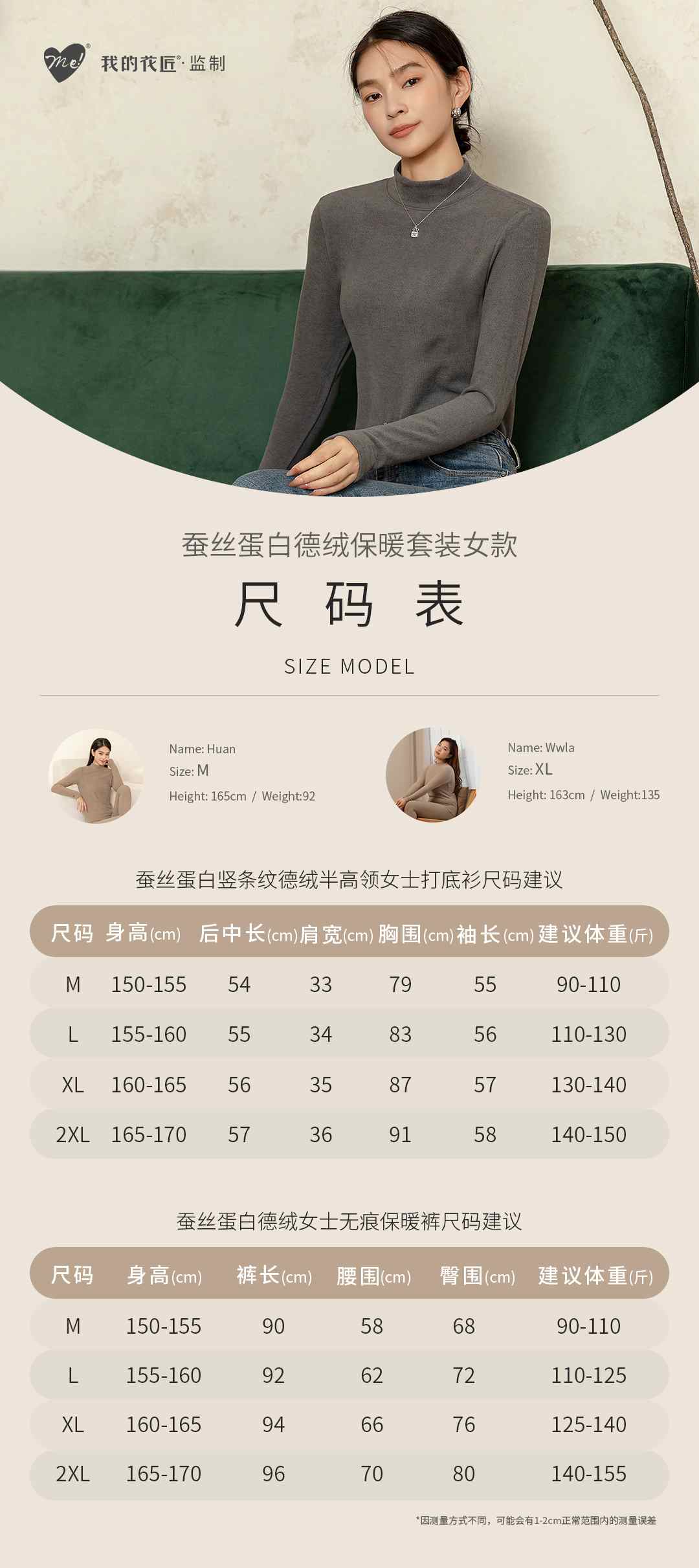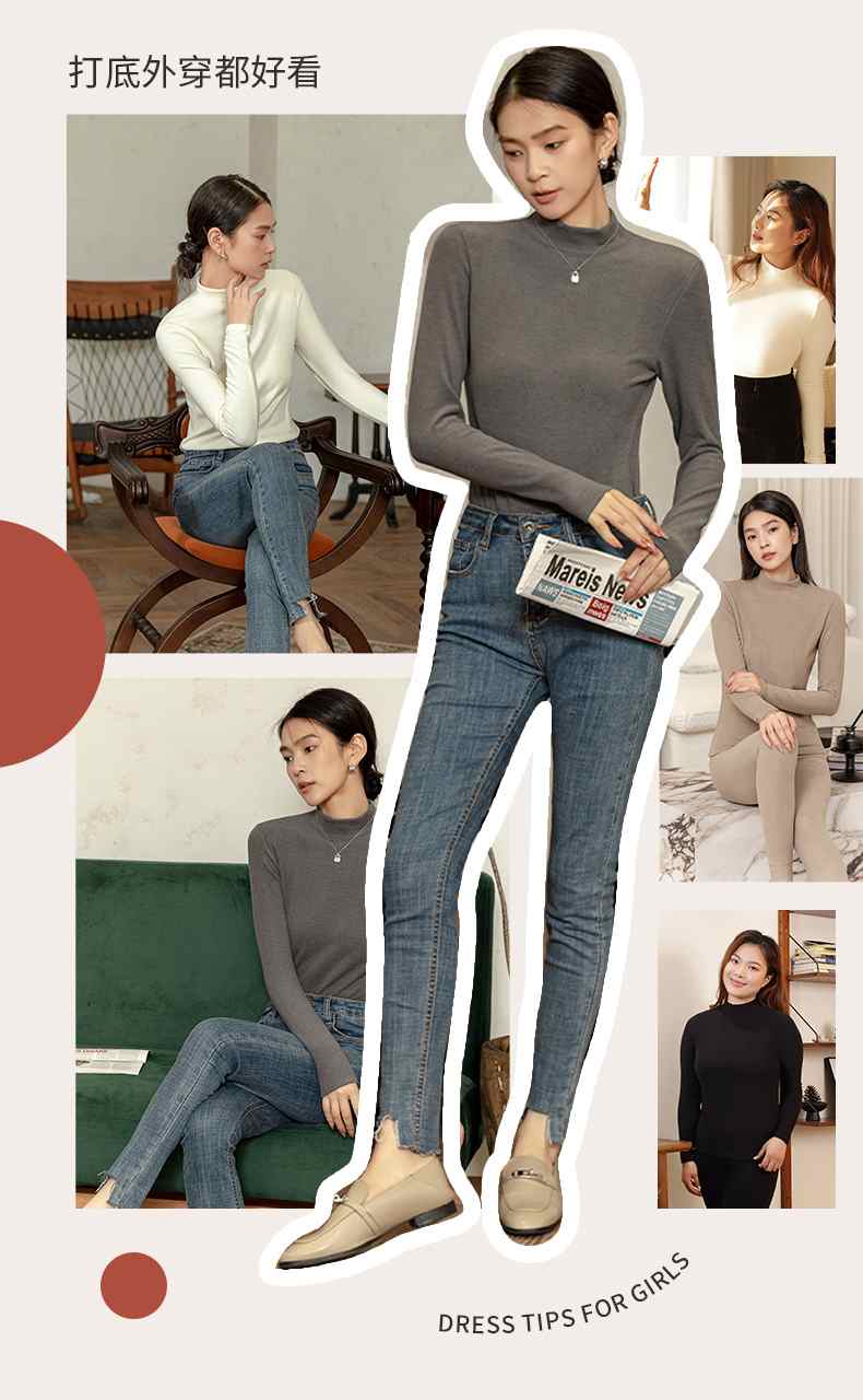 我的花匠 Me系列·蚕丝蛋白竖条纹德绒半高领女士打底衫/蚕丝蛋白德绒女士无痕保暖裤