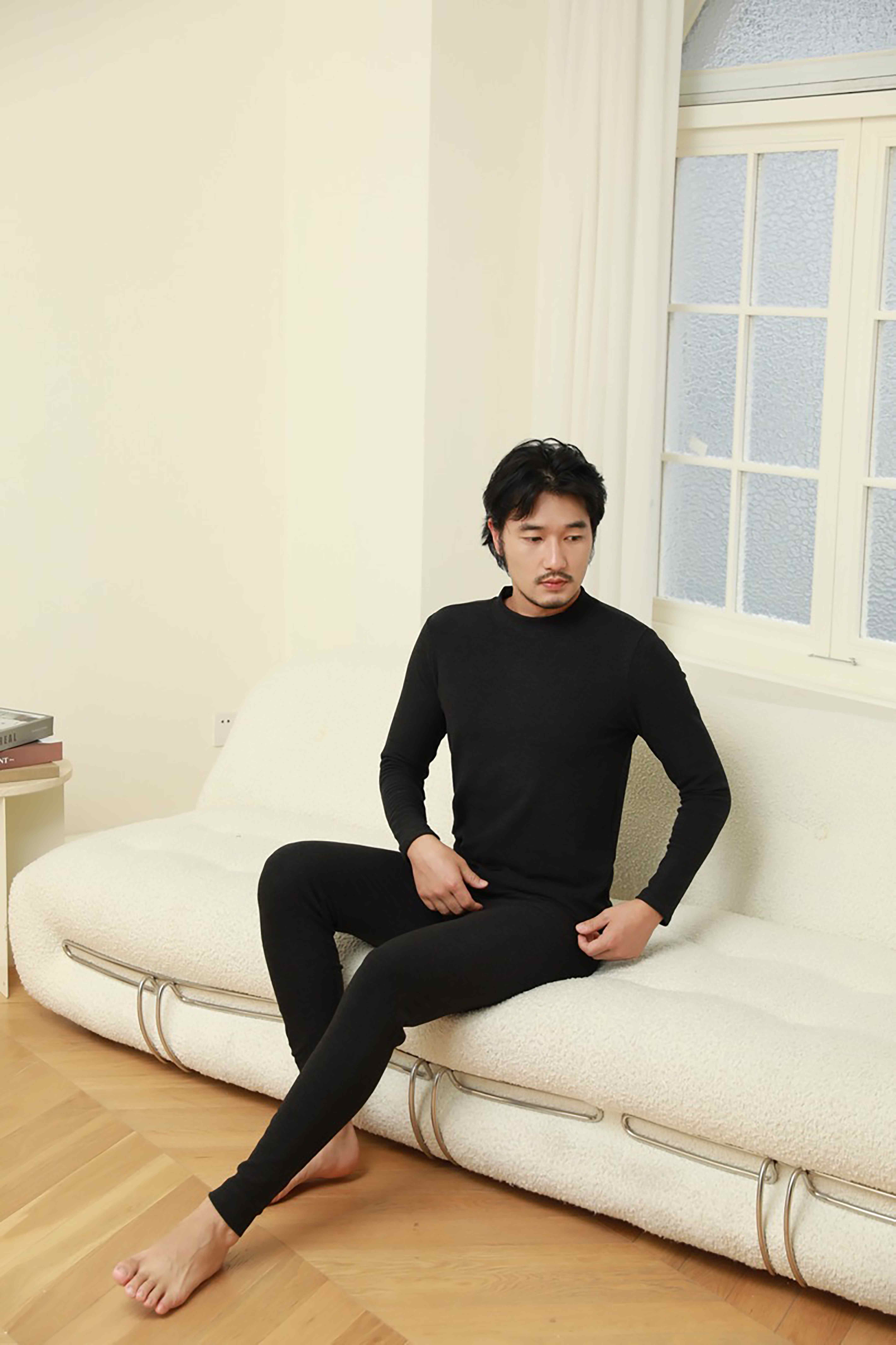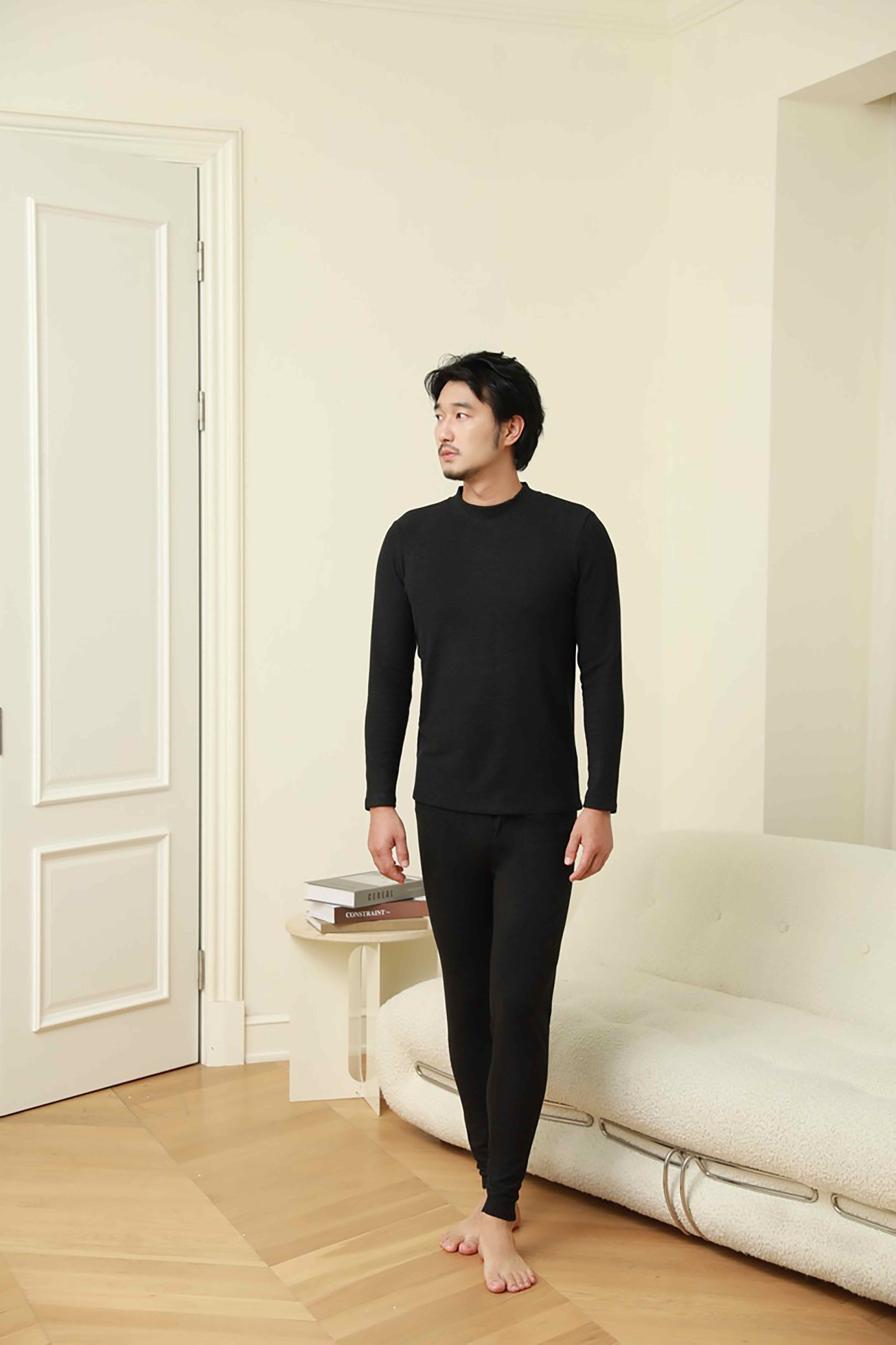 👉【我的花匠 Me系列】蚕丝蛋白竖条纹德绒小圆领男士打底衫/蚕丝蛋白德绒男士无痕保暖裤