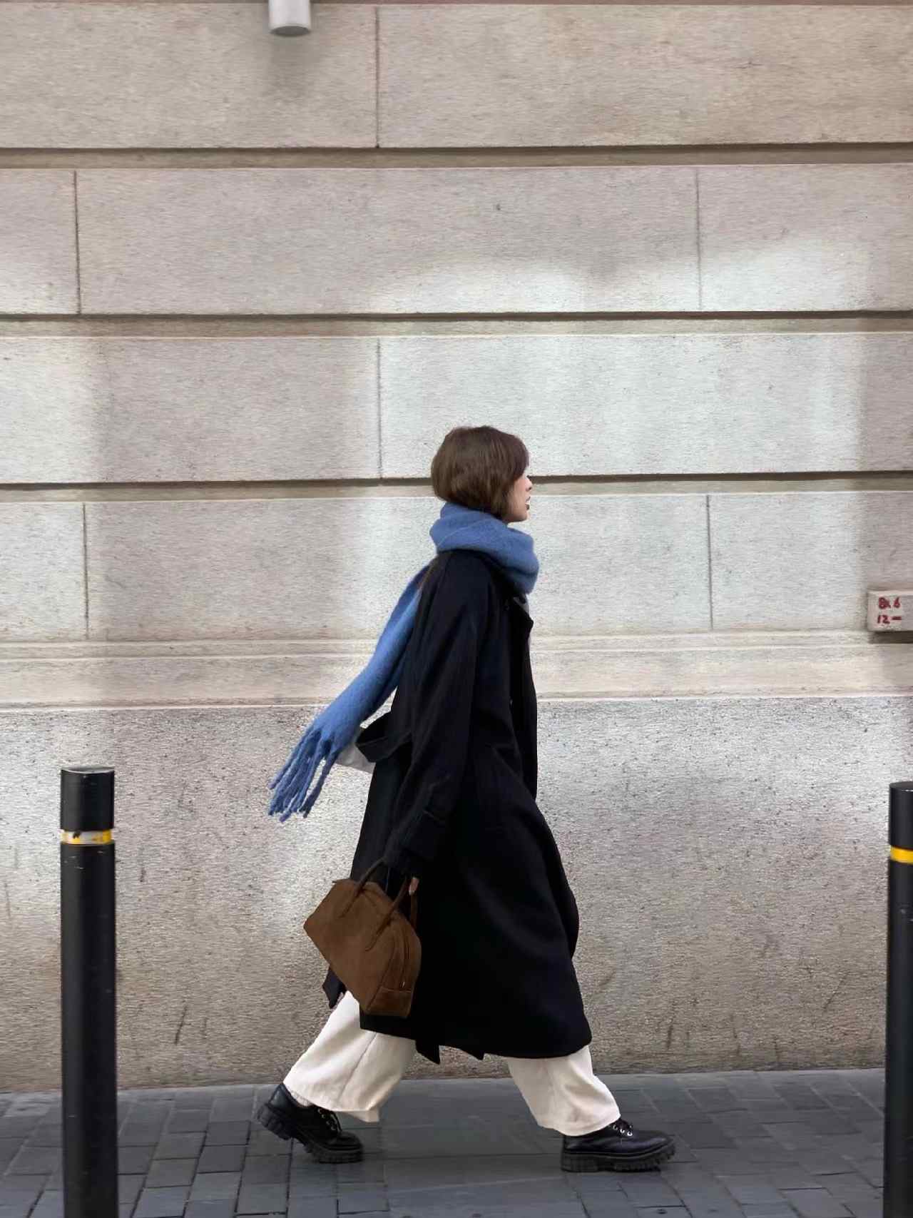 冬天外出时在外面穿一件大衣就很暖和了,韩系穿搭get!