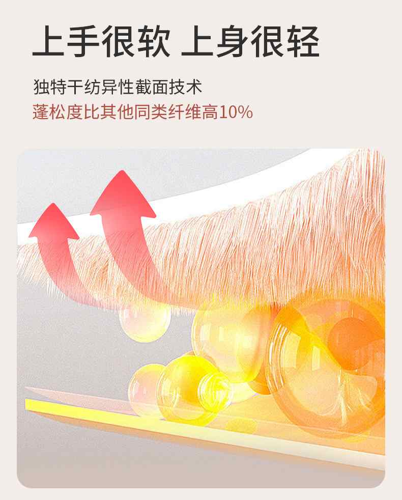 面料里有德绒和蚕丝蛋白,相比于普通面料更柔更轻更保暖!