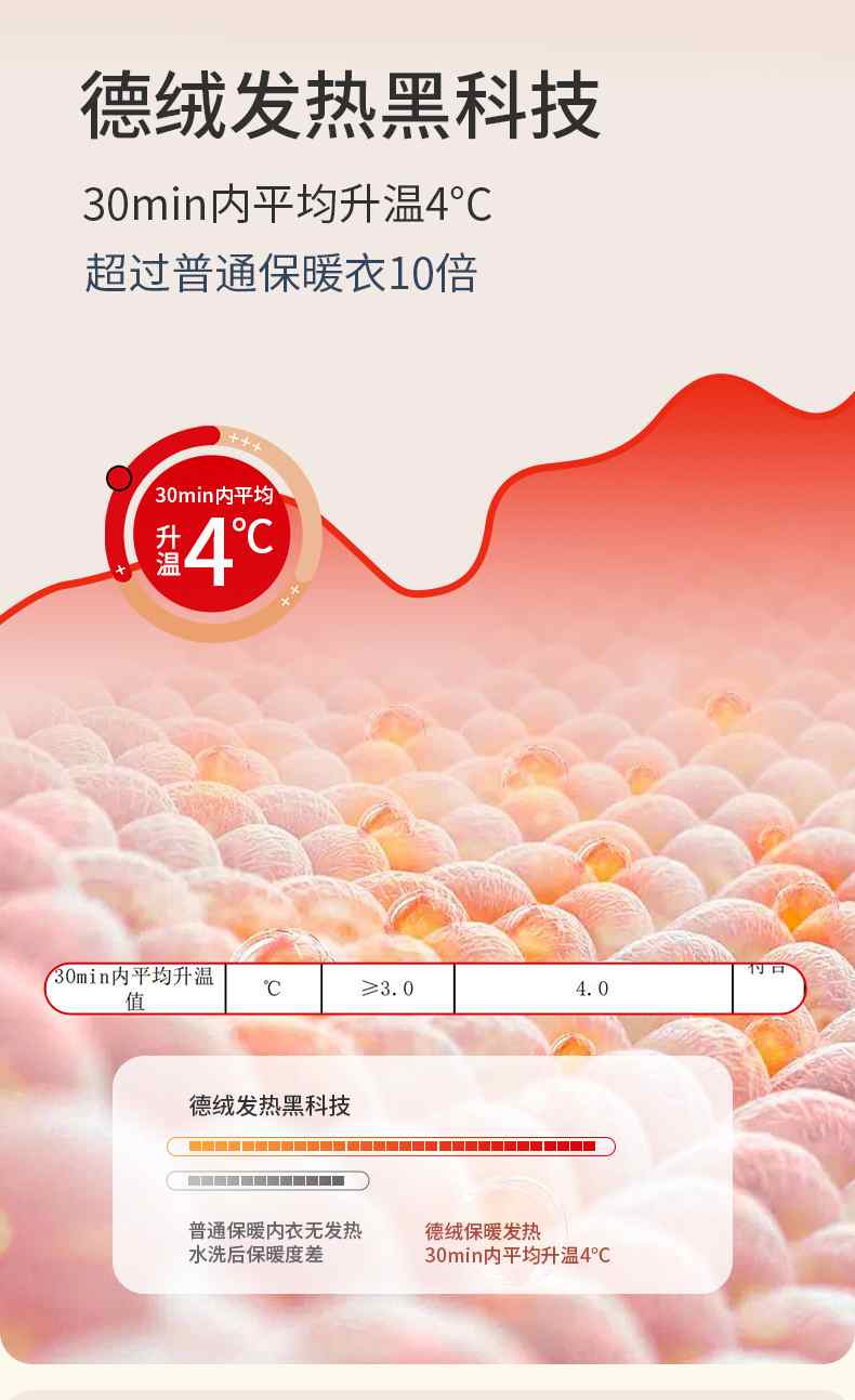✅德绒蓄热黑科技 30分钟平均升温4°C 一穿即暖 温暖过冬天