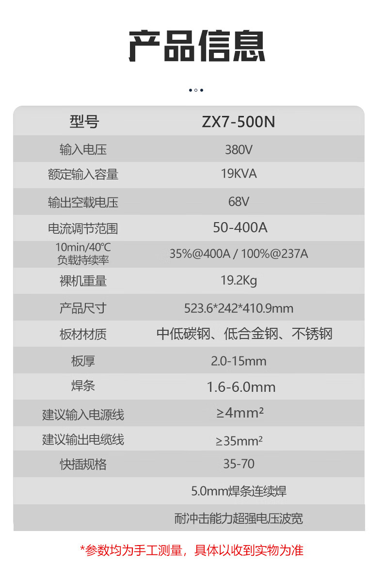 沪工 ZX7-500N 电焊机5.0焊条长焊 380V工业极直流焊机多层板结构