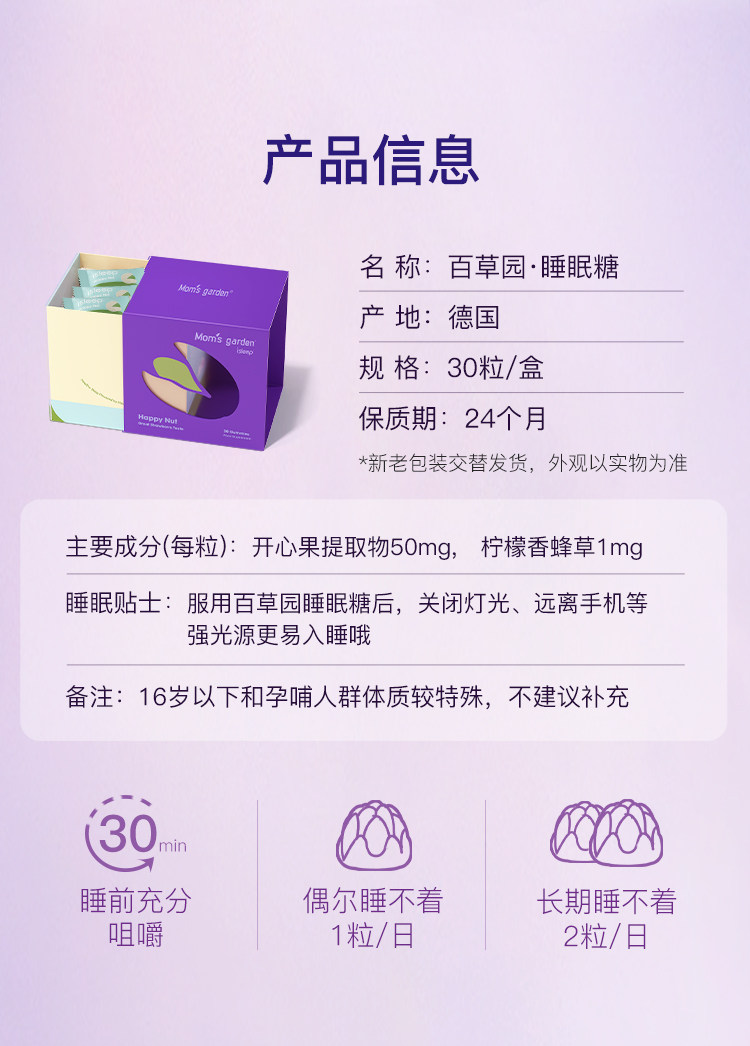 【达人推荐】百草园爱丽丝睡眠软糖改善助眠开心果非褪黑素闪睡