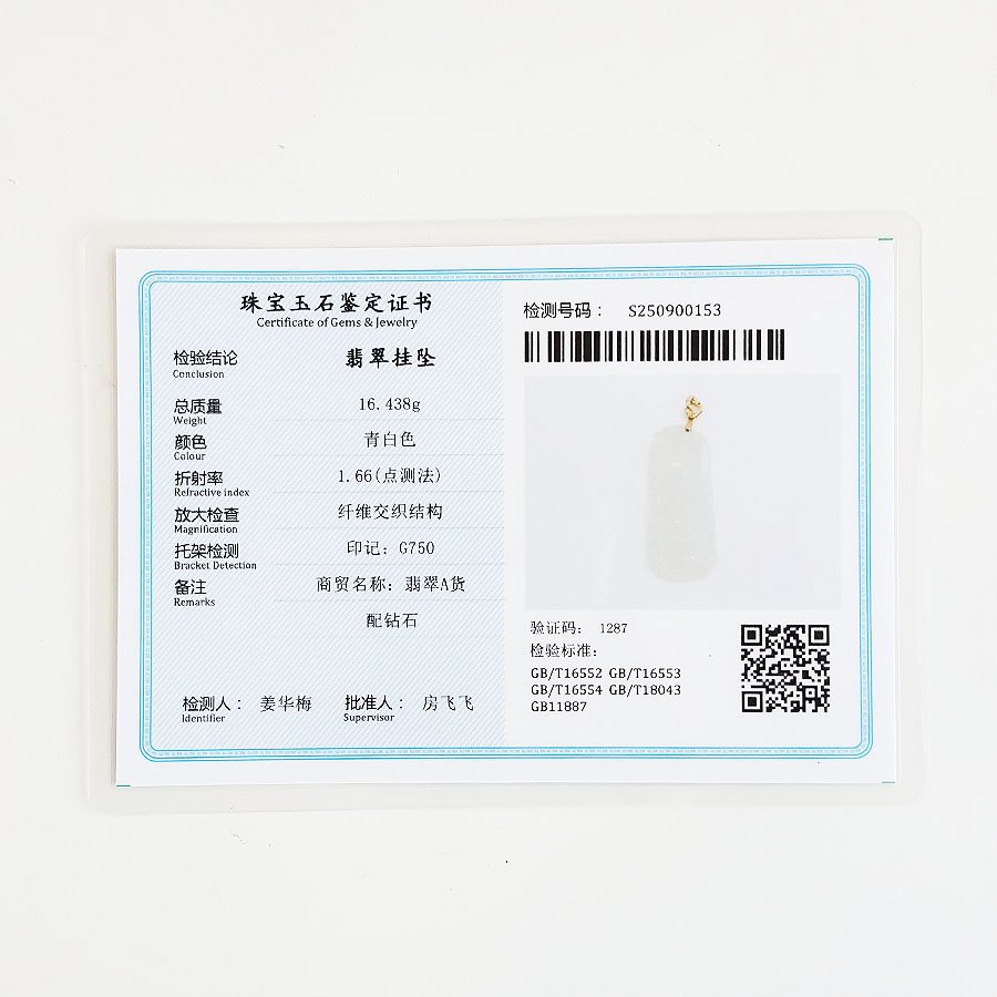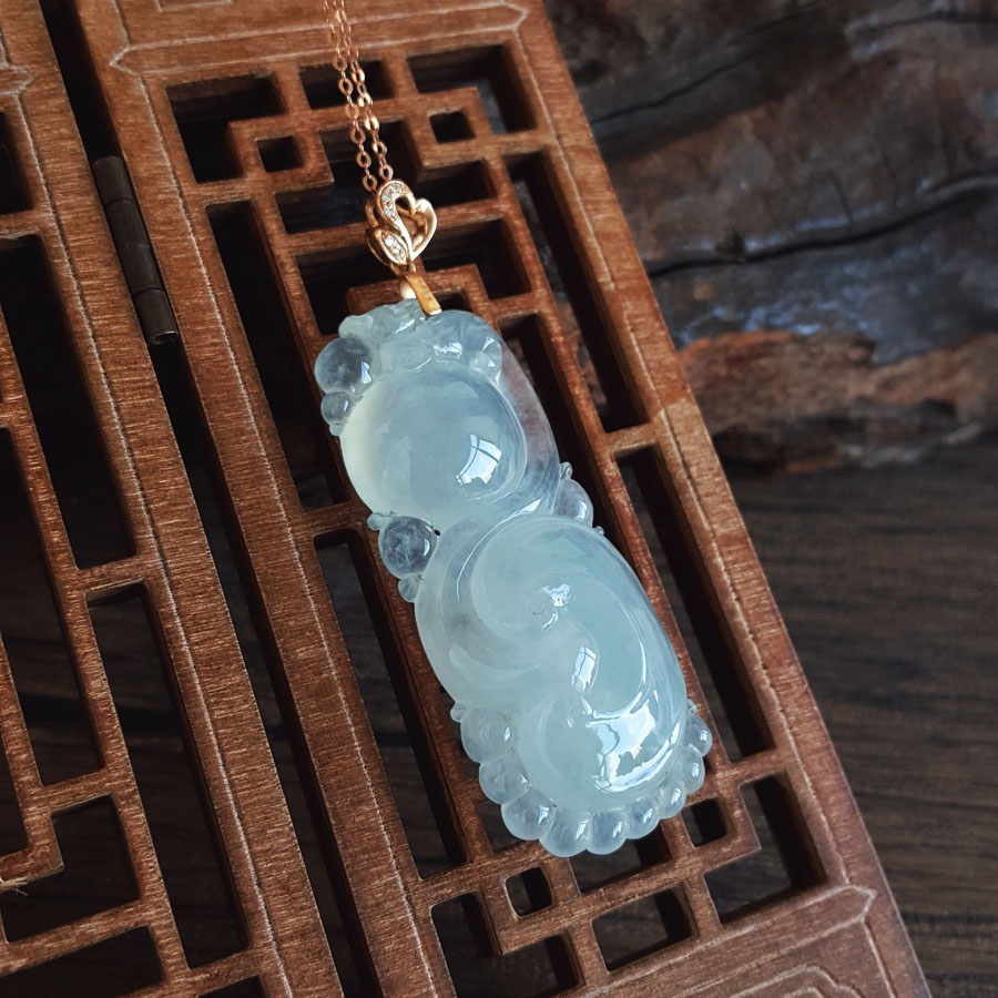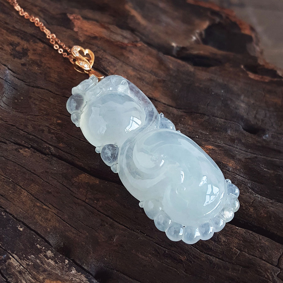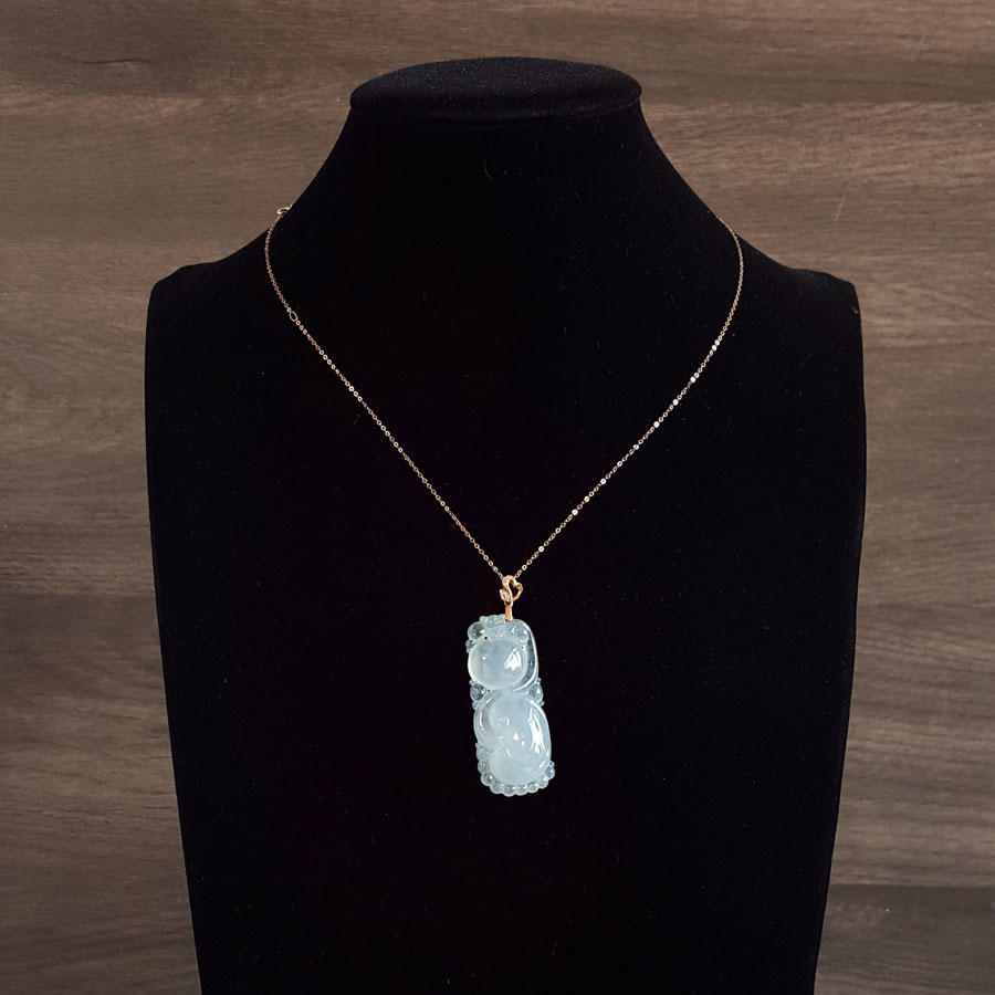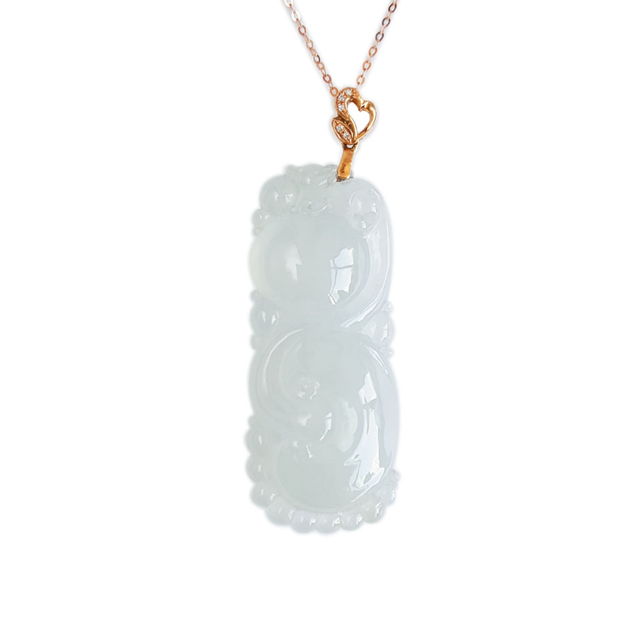 名称 | AU750玫瑰金镶钻镶天然细腻冰种如意(万事如意)翡翠吊坠项链 |