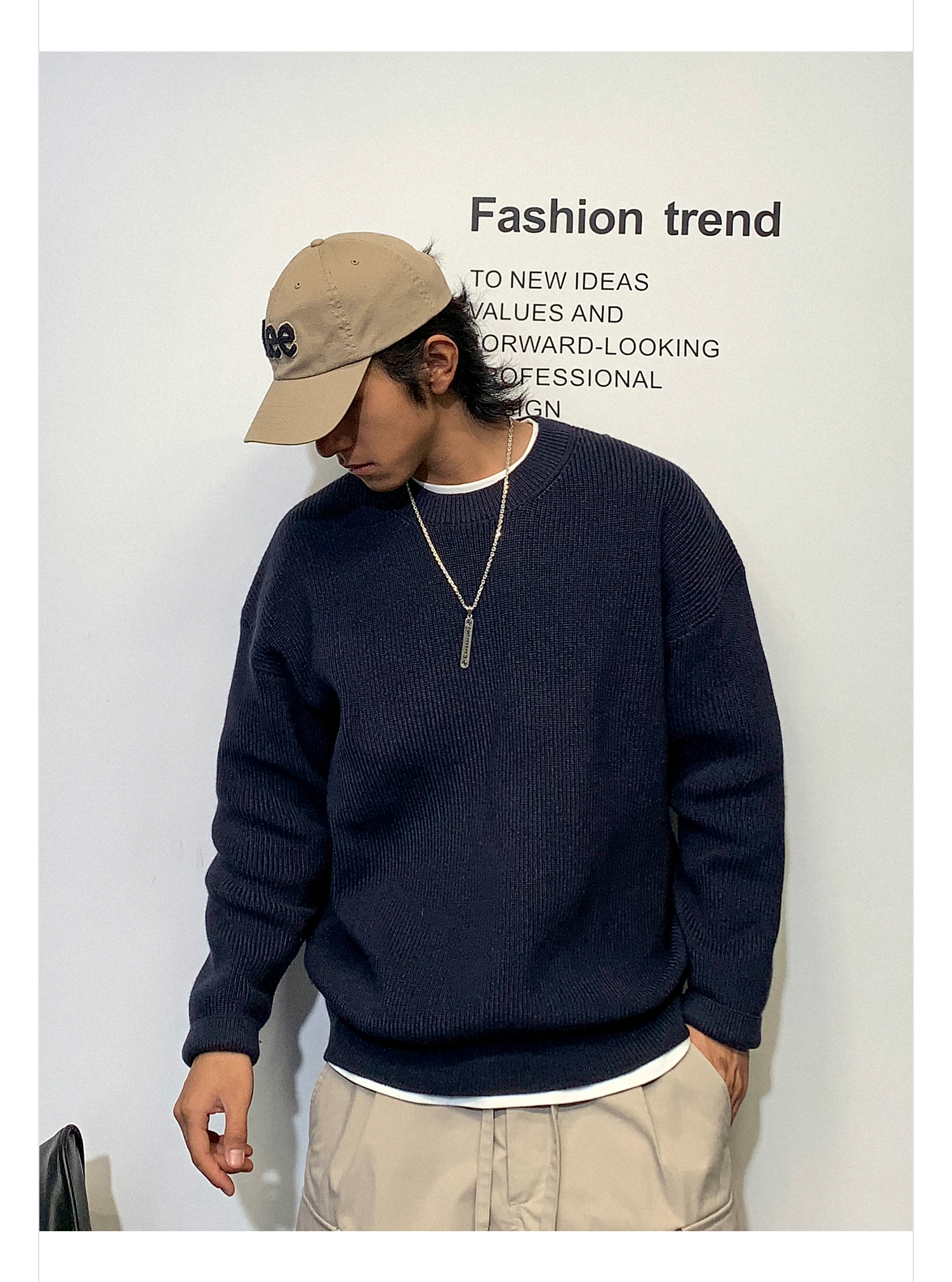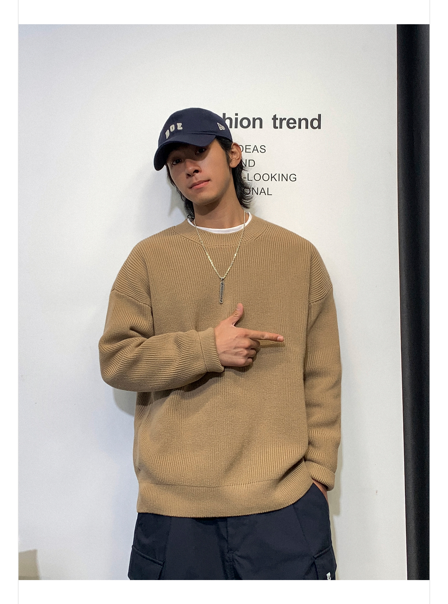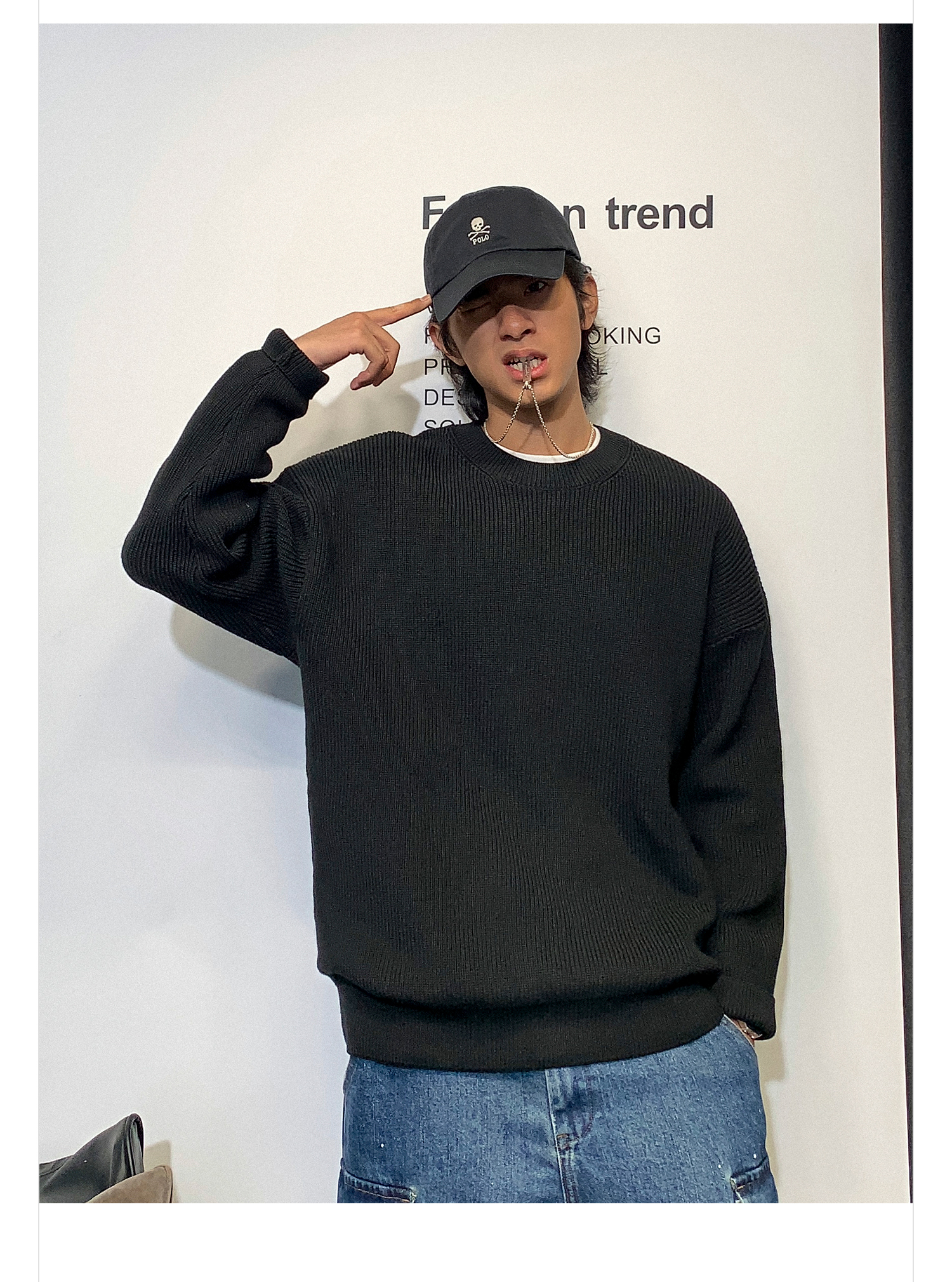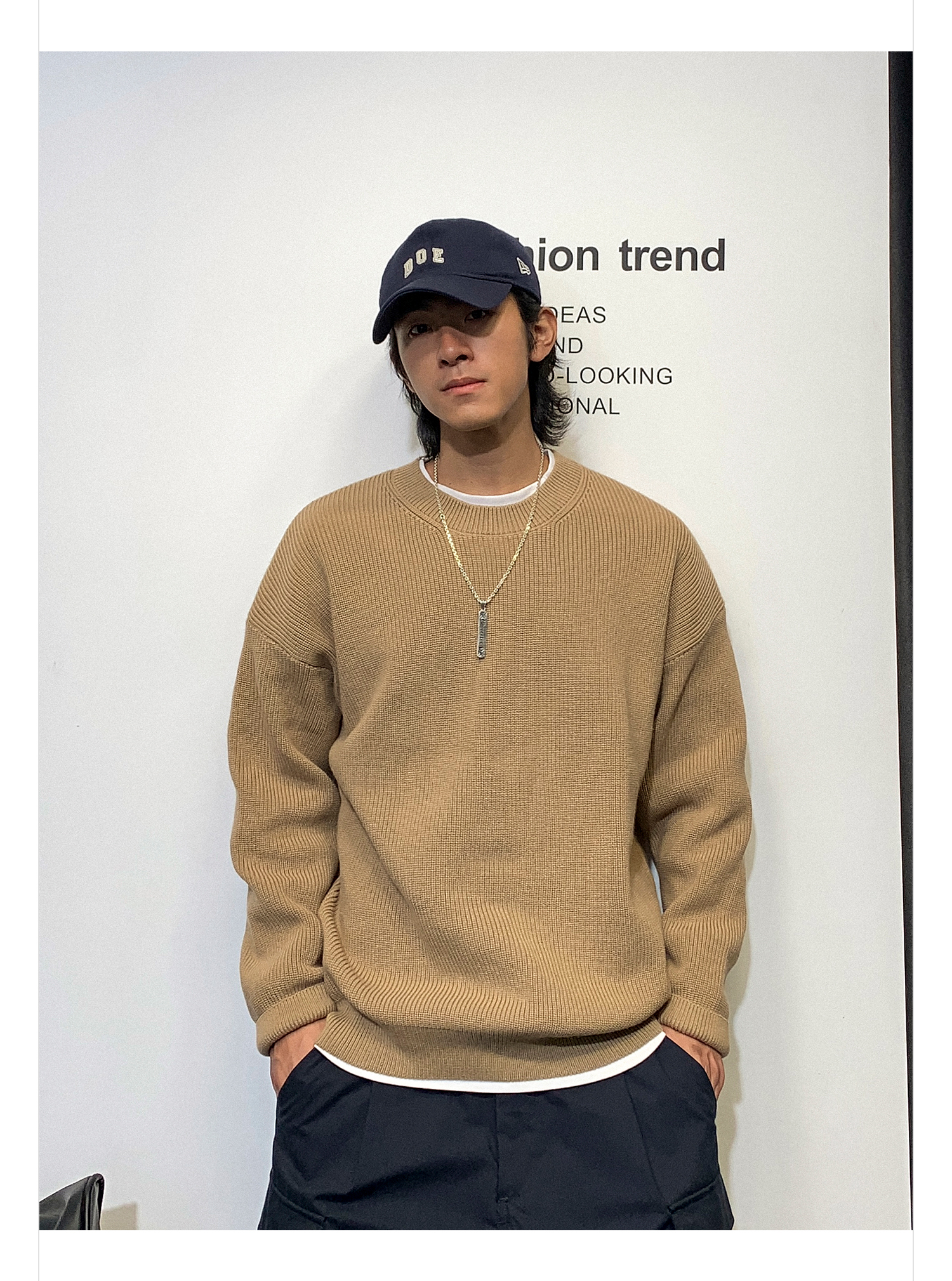 徐太浪日系纯色慵懒气质毛衣男秋冬款潮牌宽松内搭圆领针织衫上衣
